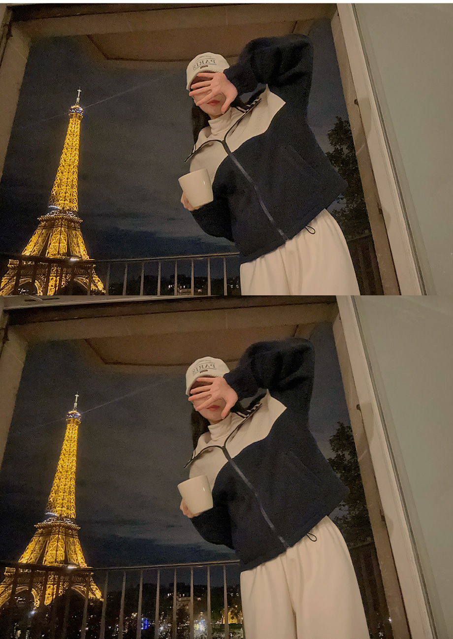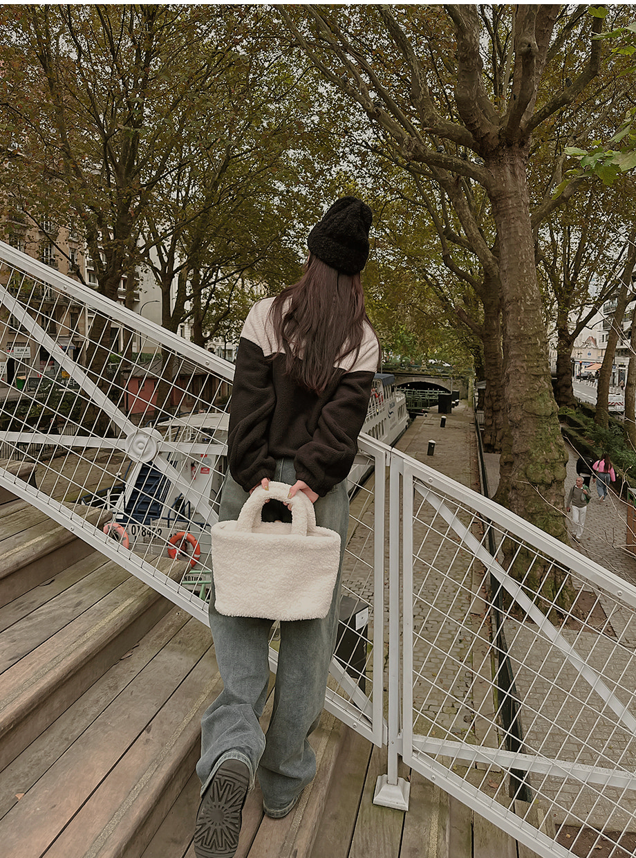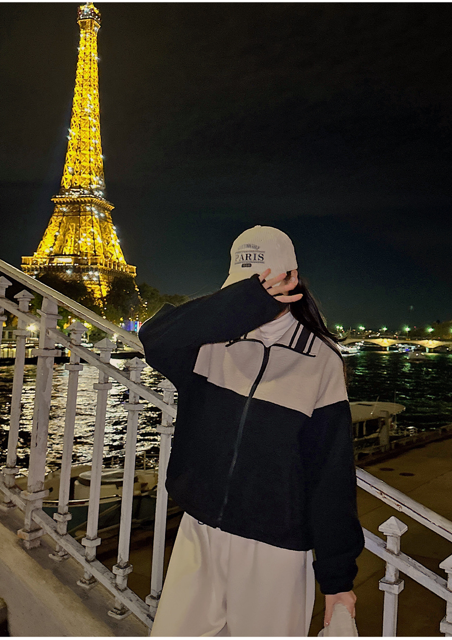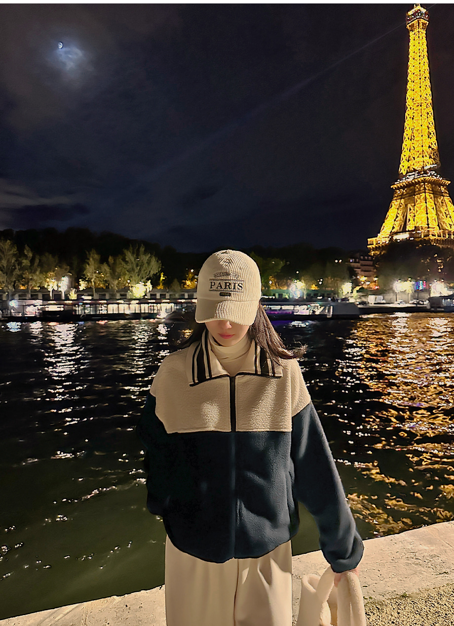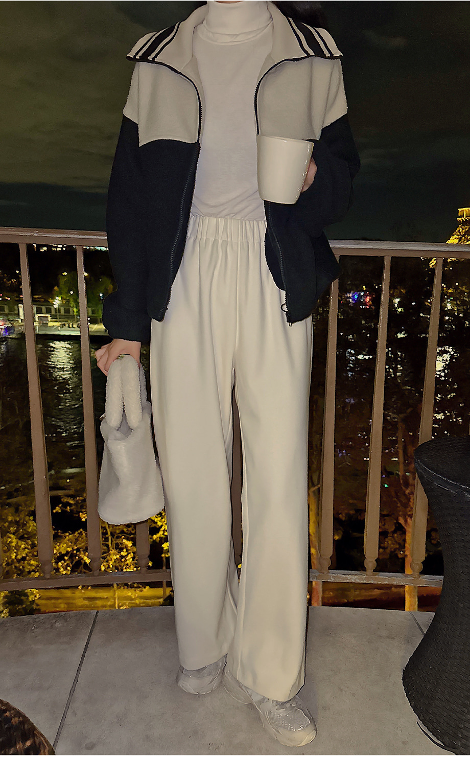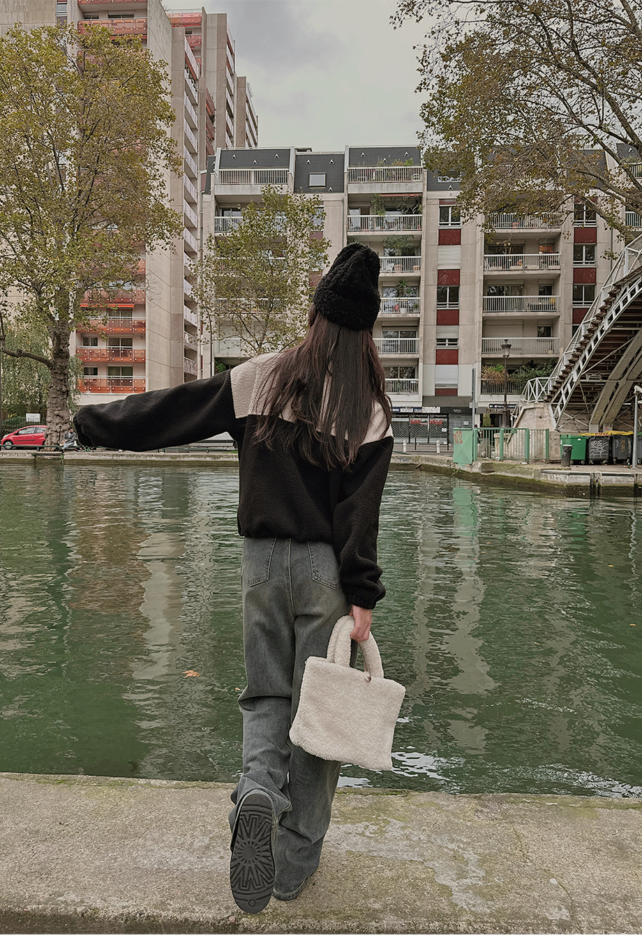ririnco-하프덴 양털 배색 스트링 집업 점퍼♡韓國女裝外套