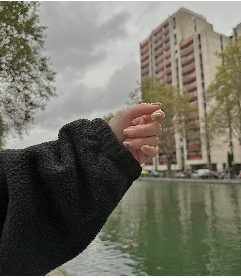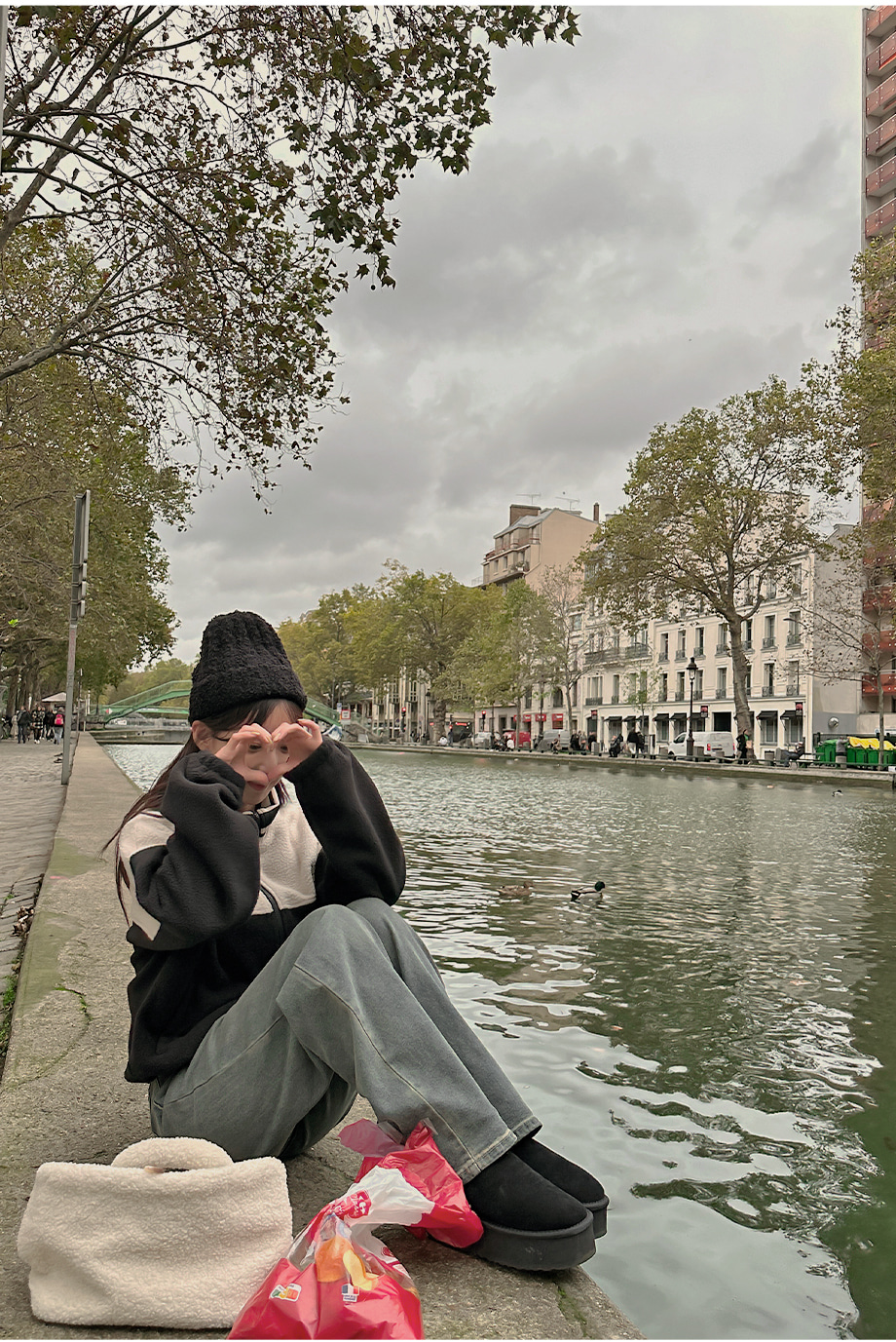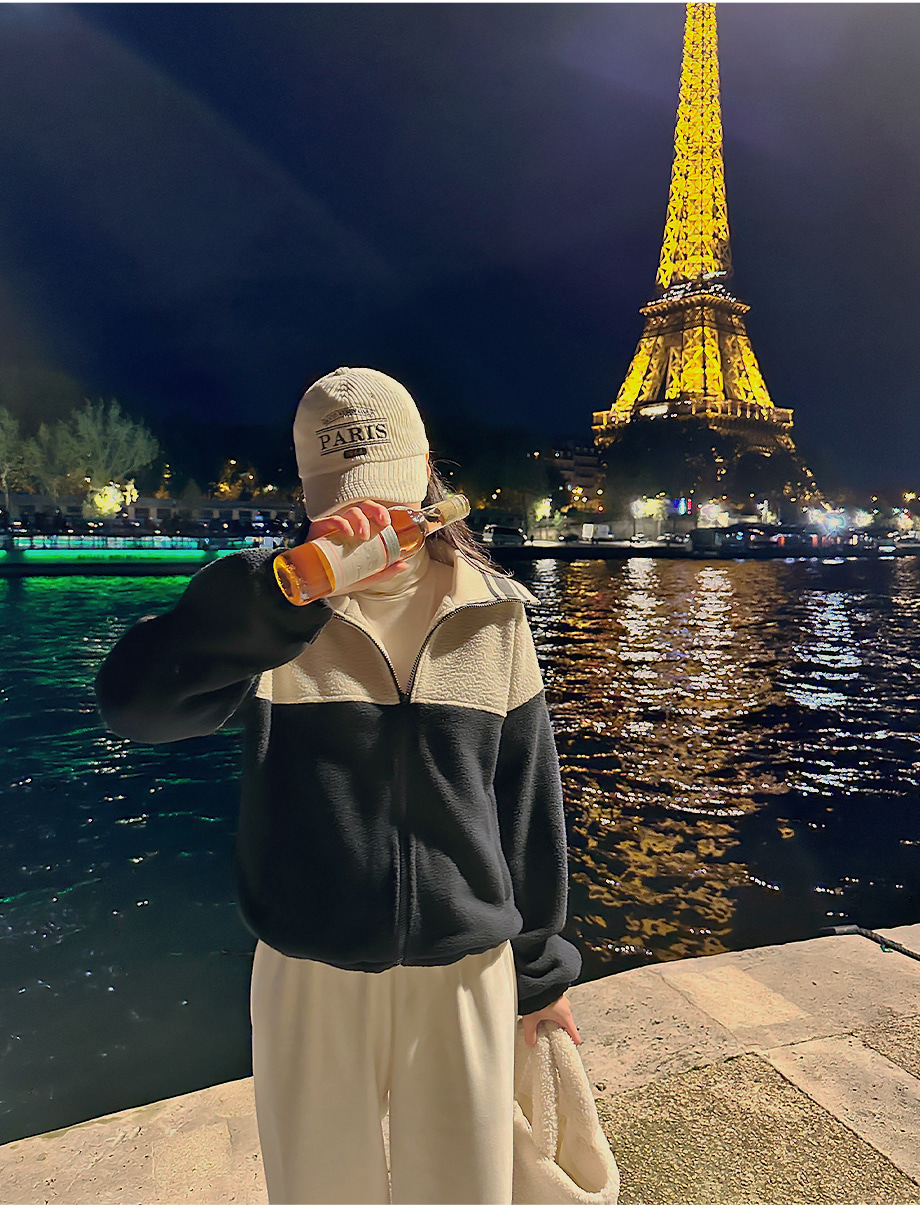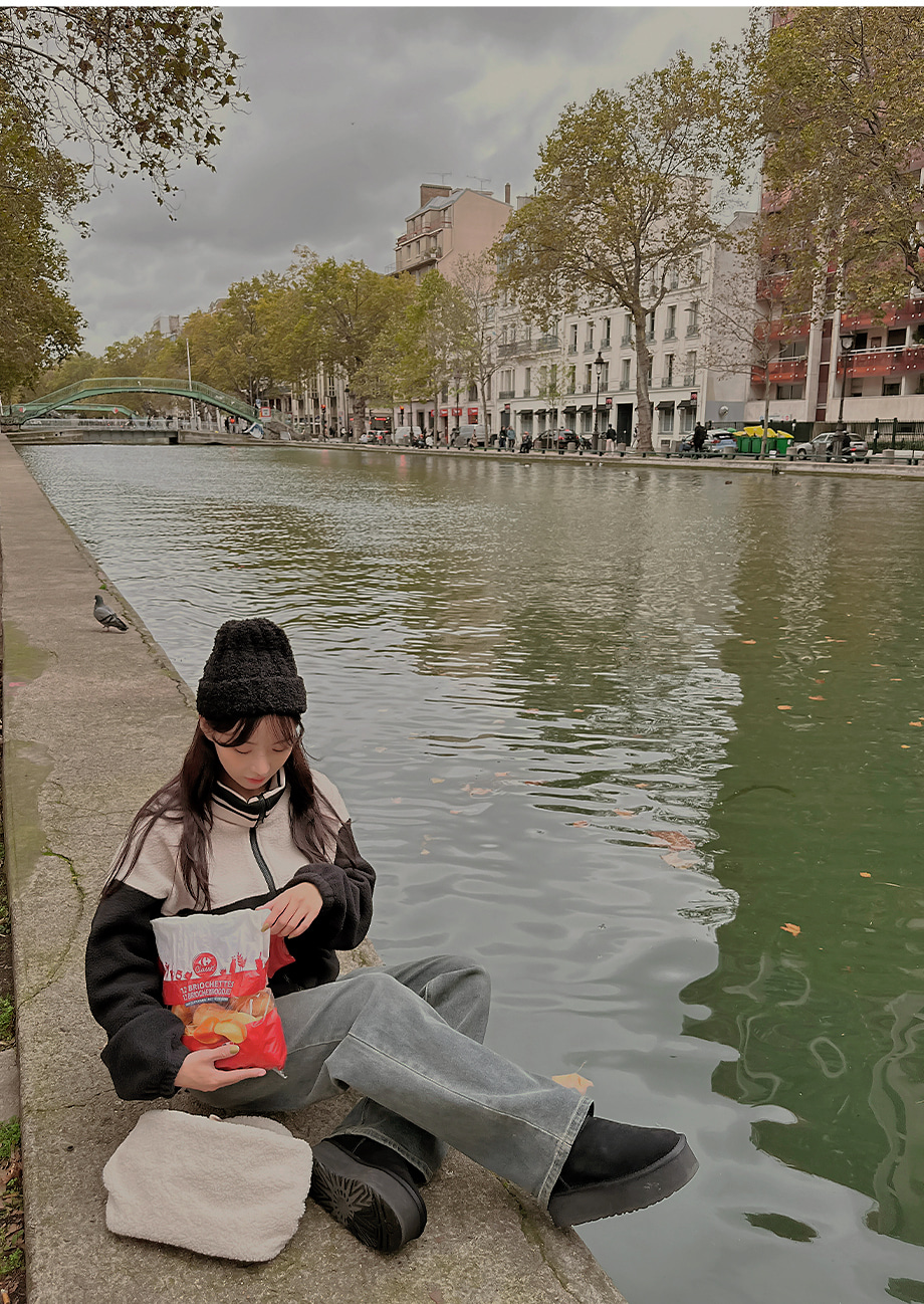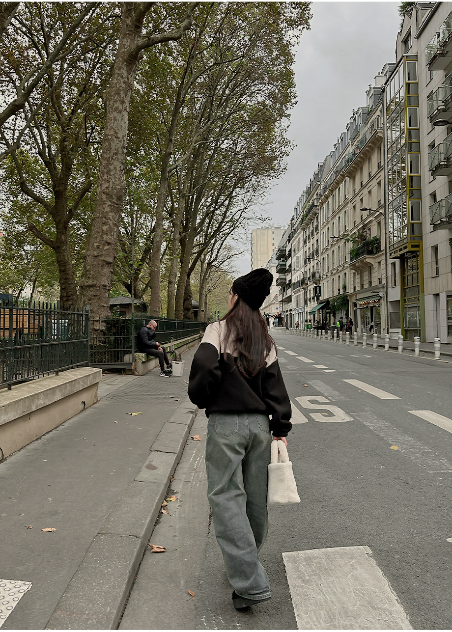 ririnco-하프덴 양털 배색 스트링 집업 점퍼♡韓國女裝外套