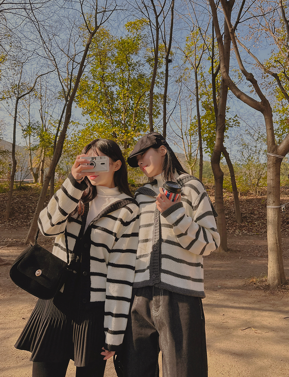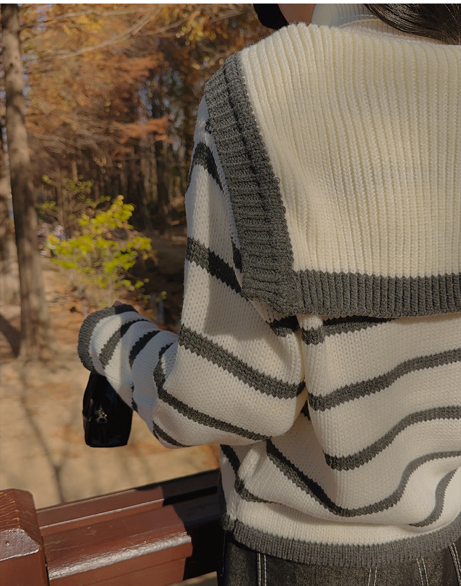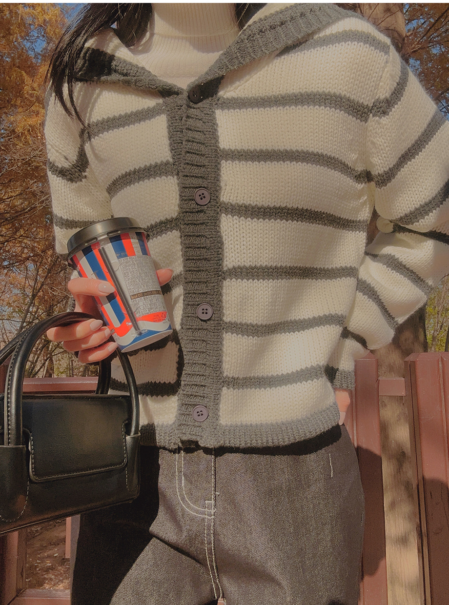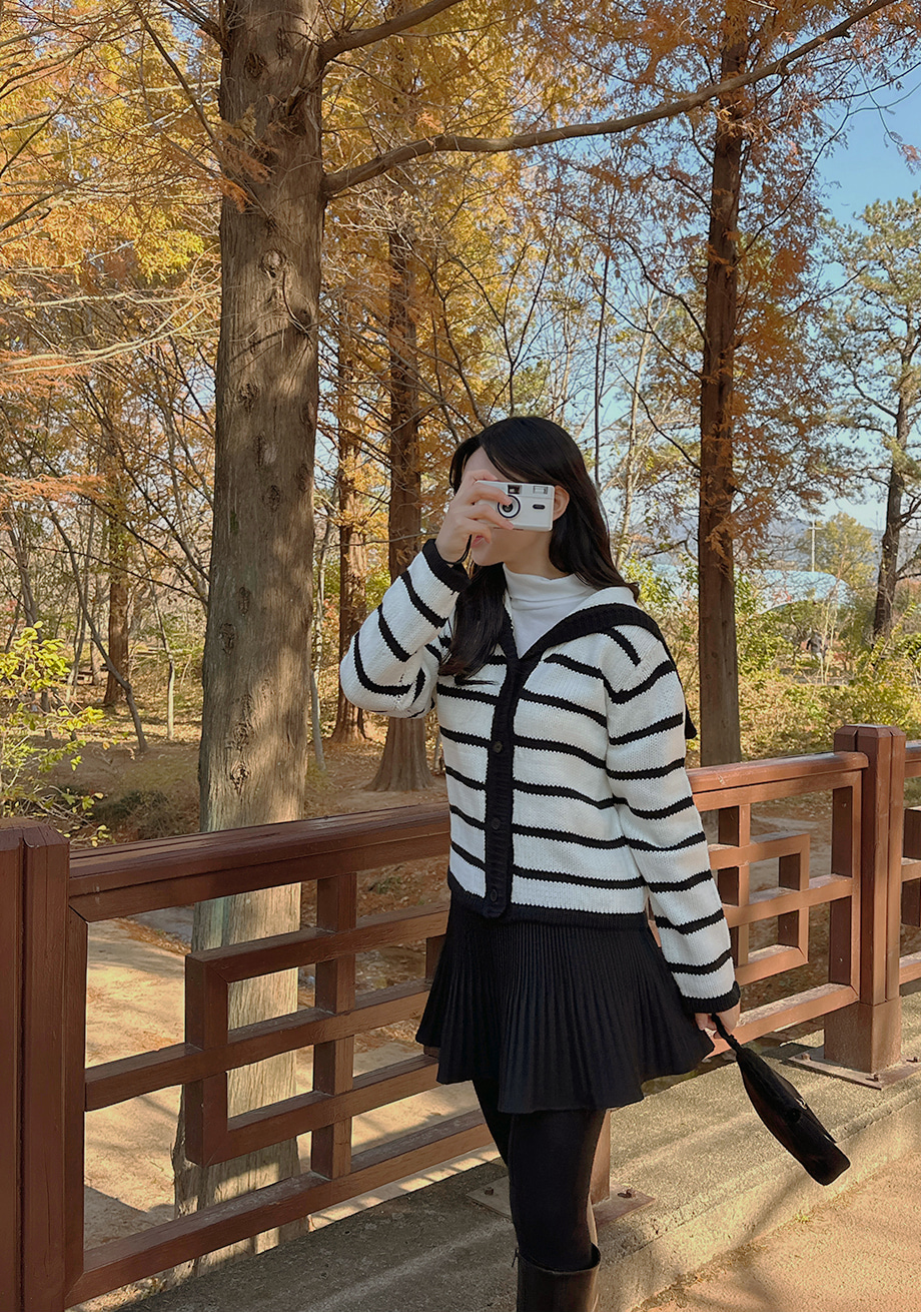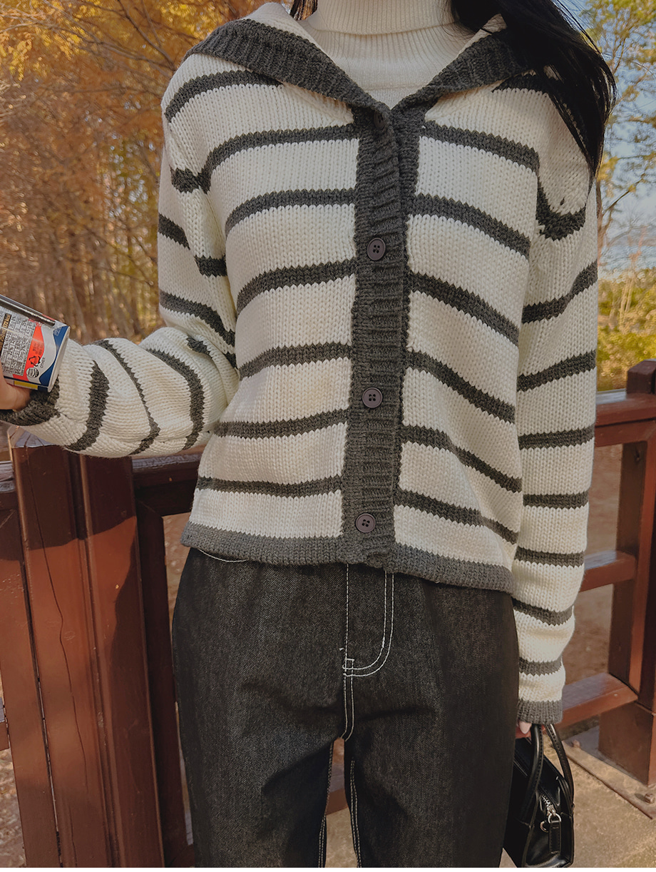 ririnco-세릴프링 스트라이프 세일러카라 니트 가디건♡韓國女裝外套