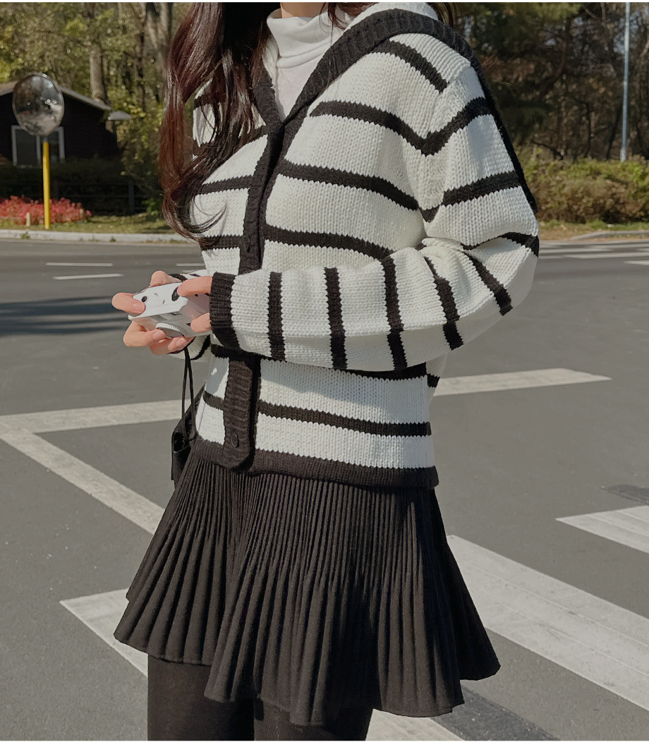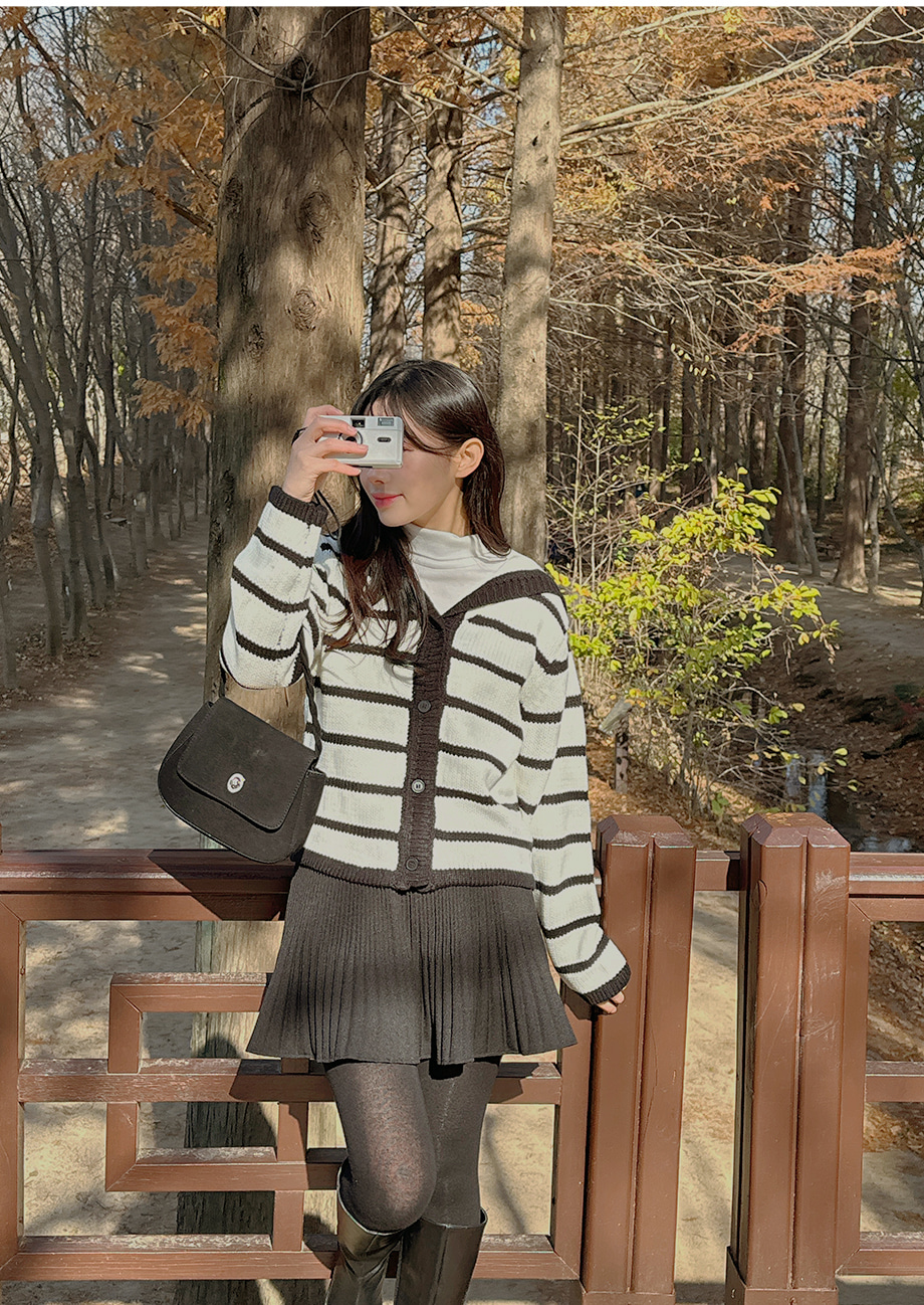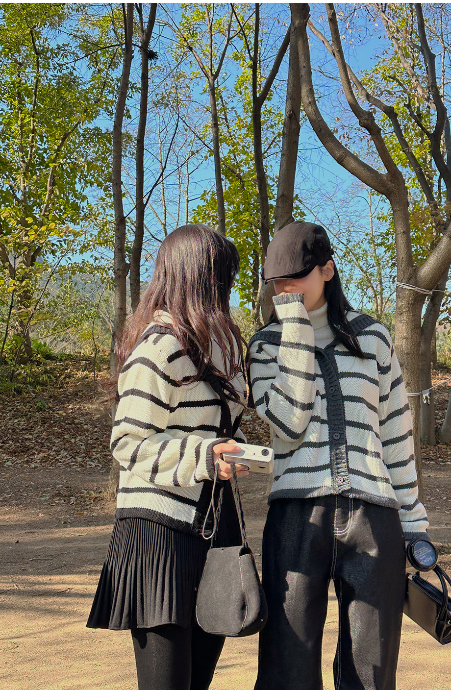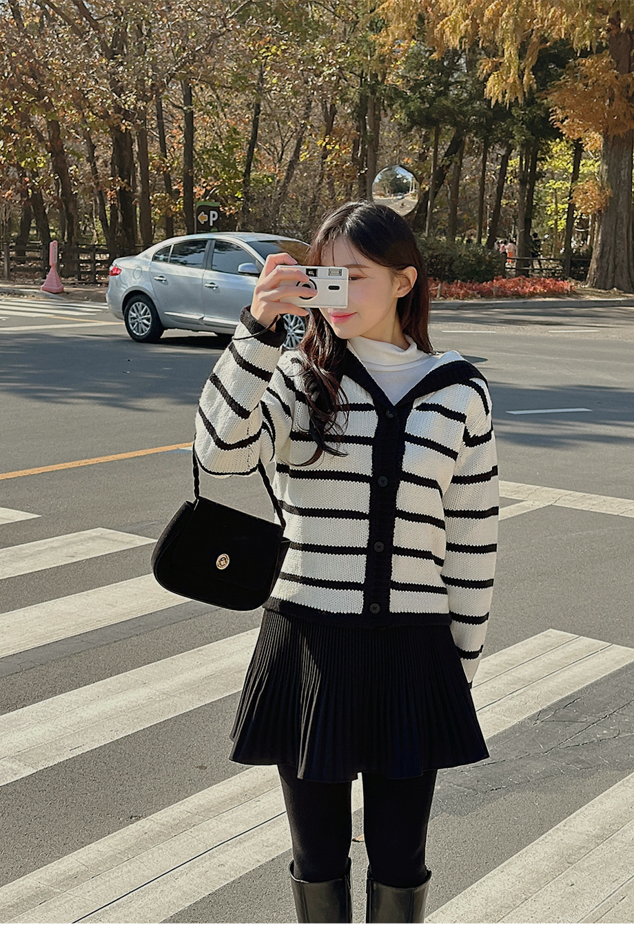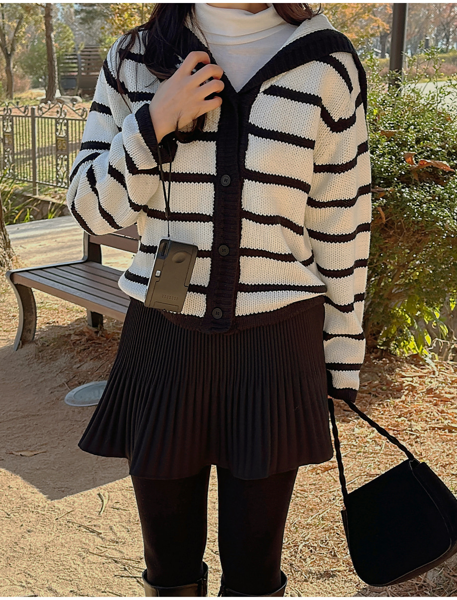 ririnco-세릴프링 스트라이프 세일러카라 니트 가디건♡韓國女裝外套