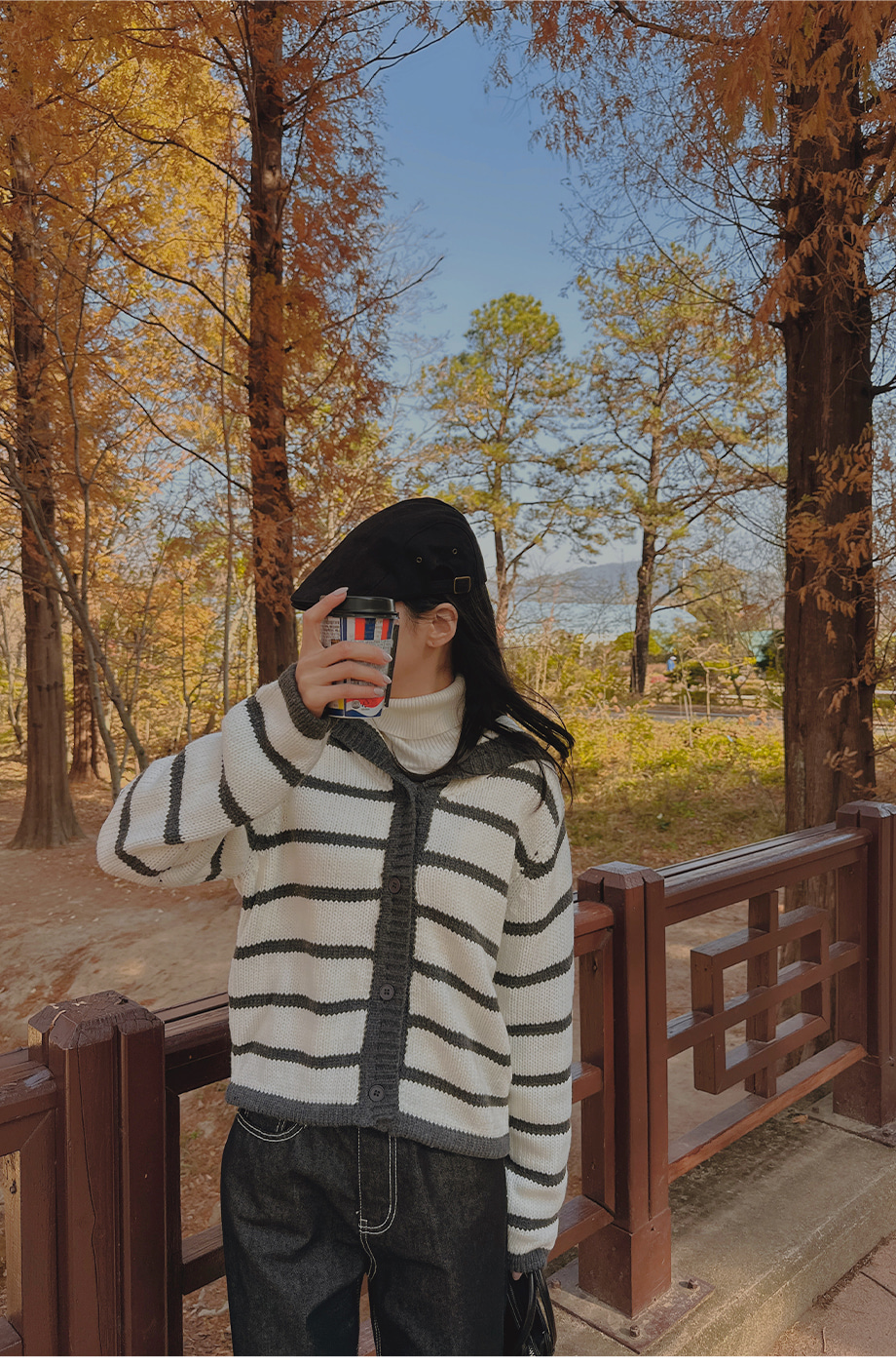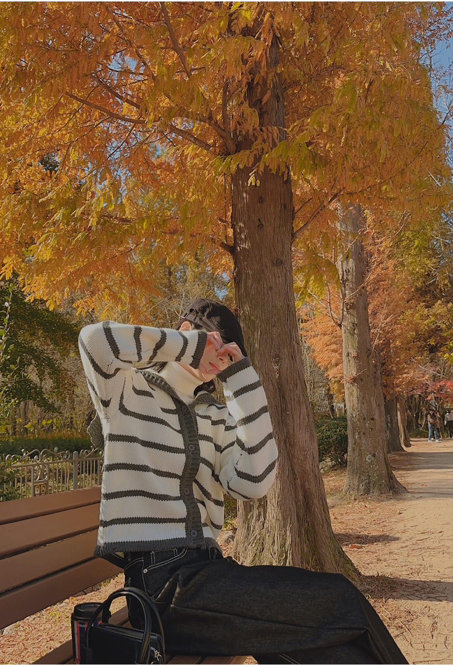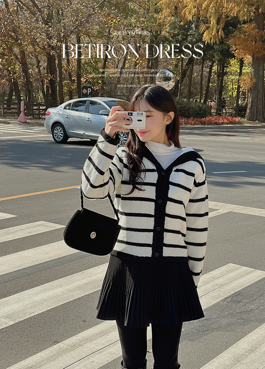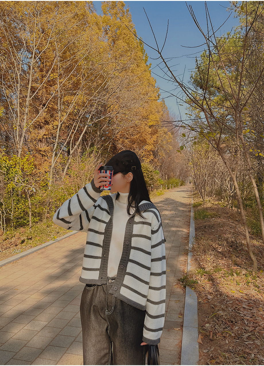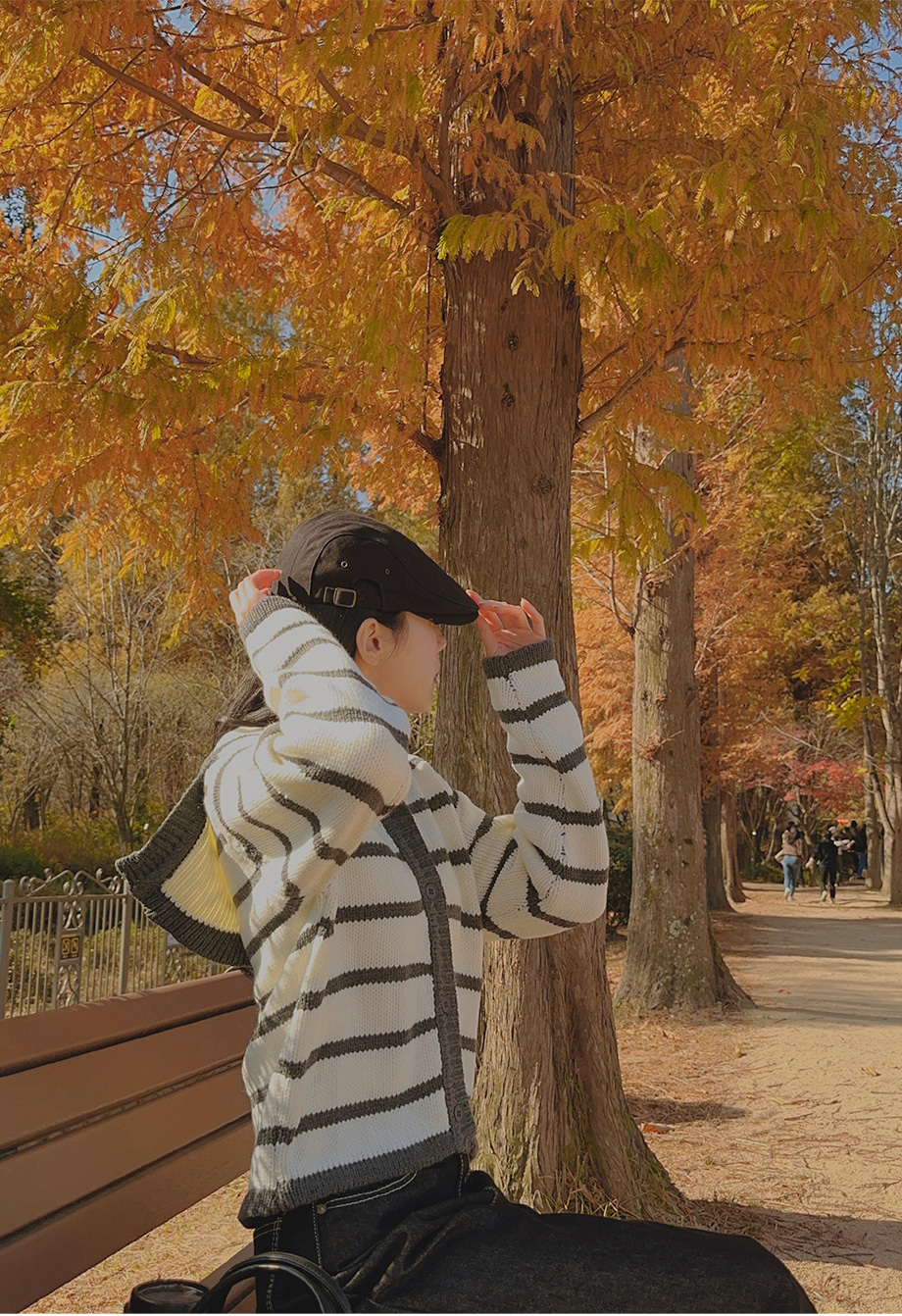 ririnco-세릴프링 스트라이프 세일러카라 니트 가디건♡韓國女裝外套