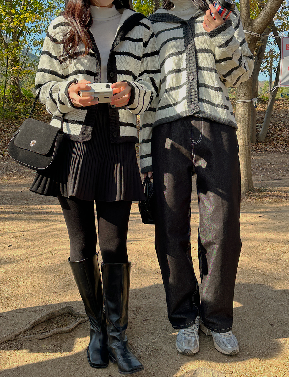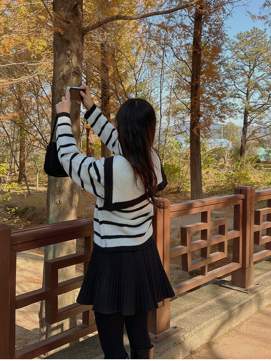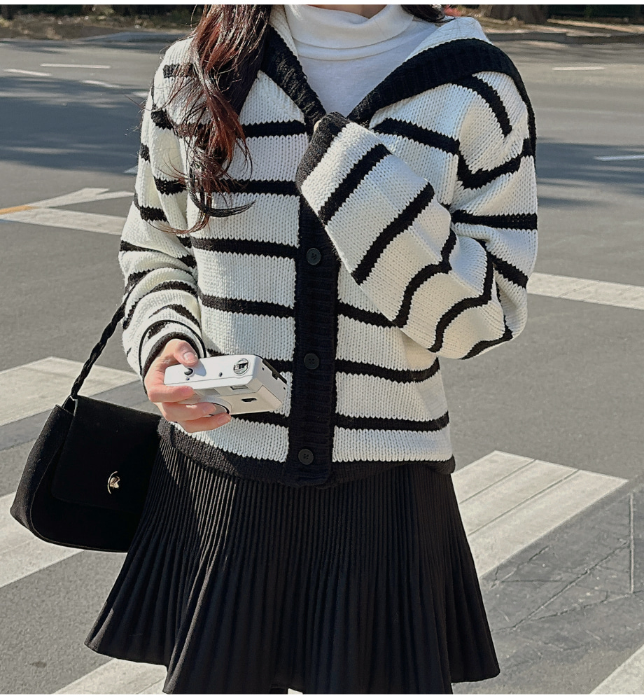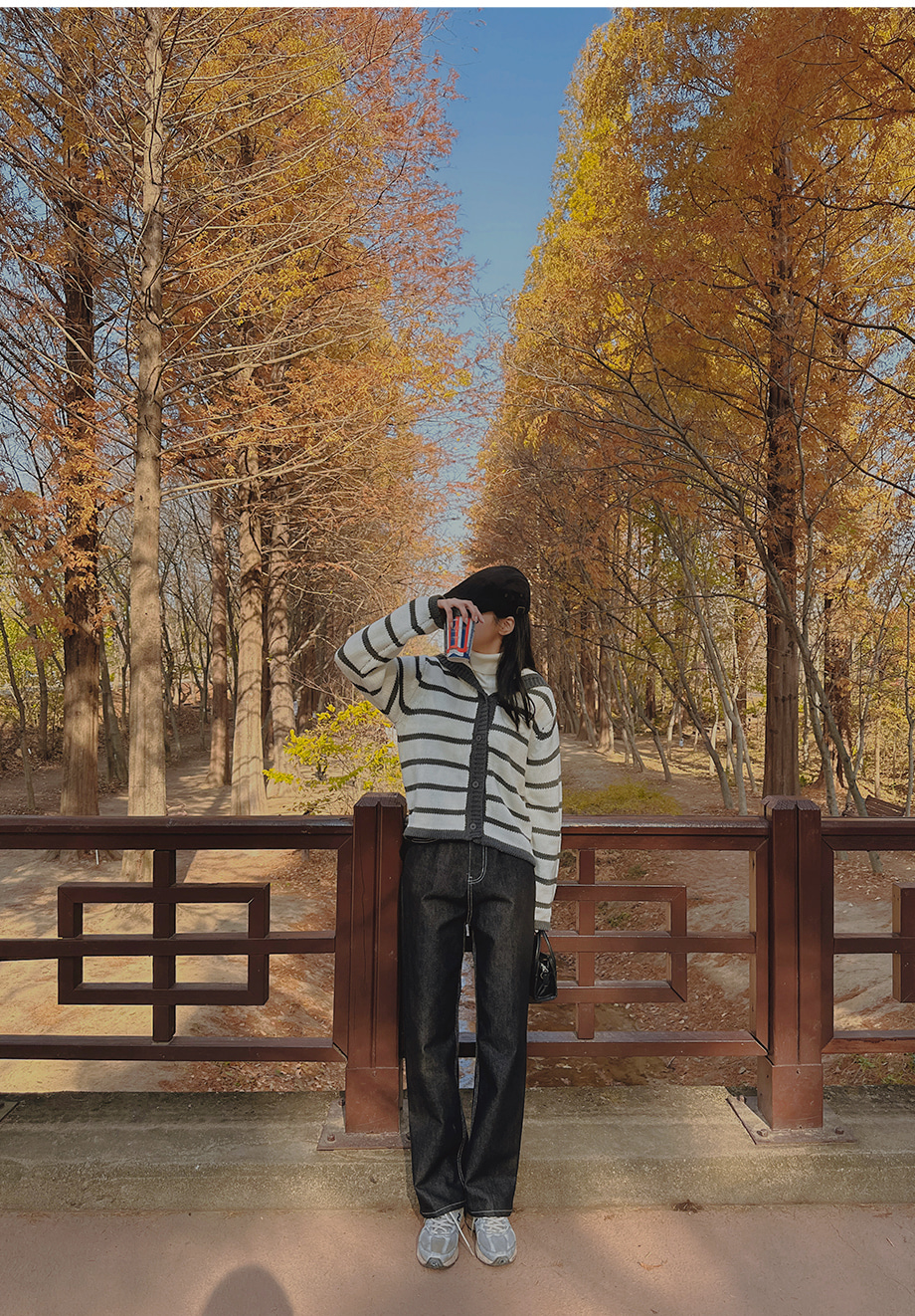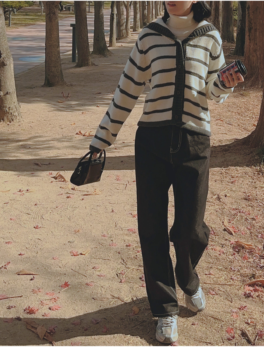 ririnco-세릴프링 스트라이프 세일러카라 니트 가디건♡韓國女裝外套
