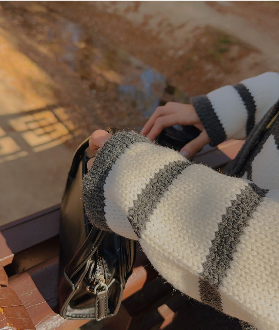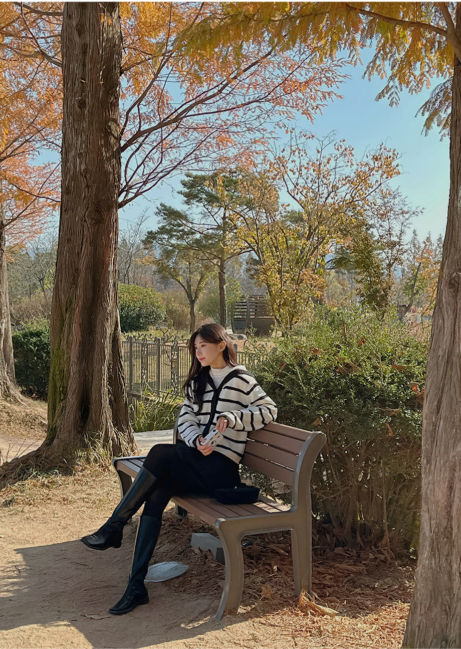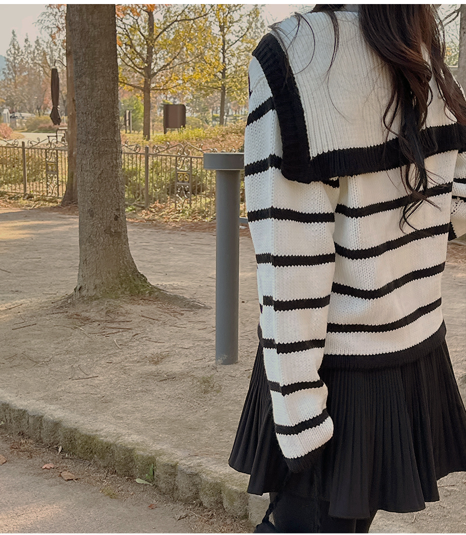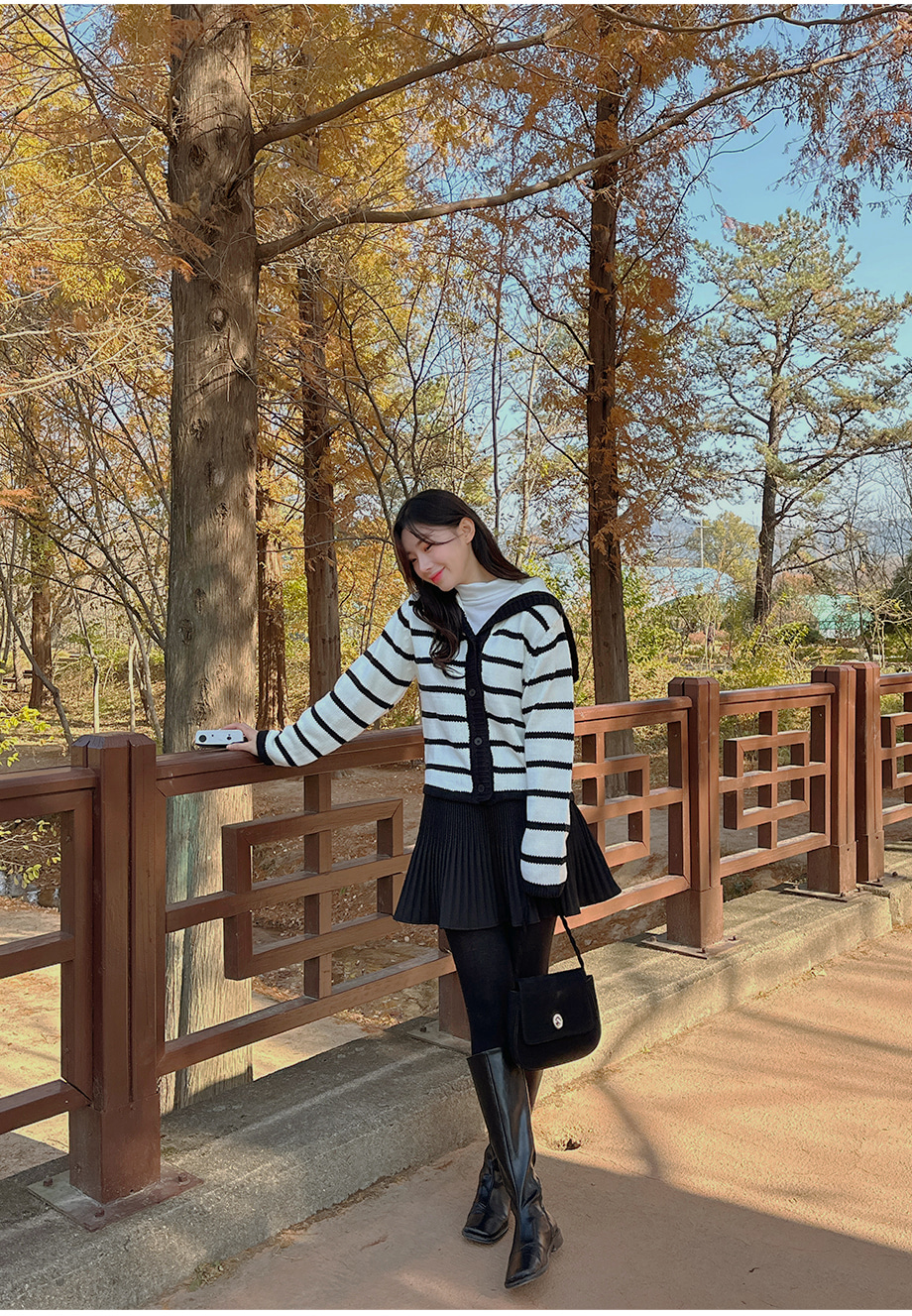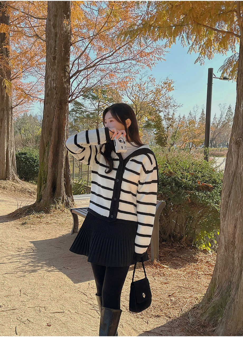 ririnco-세릴프링 스트라이프 세일러카라 니트 가디건♡韓國女裝外套