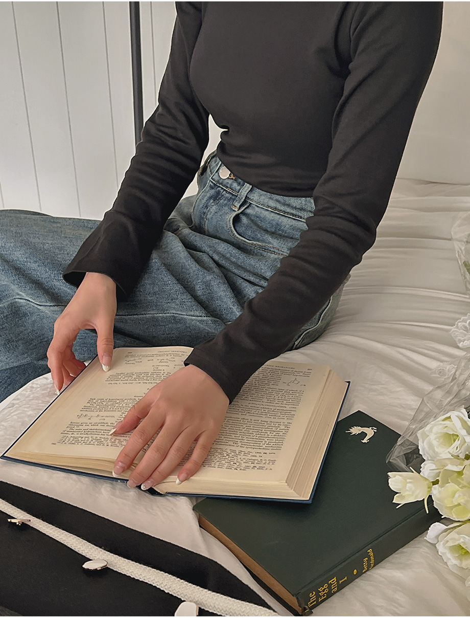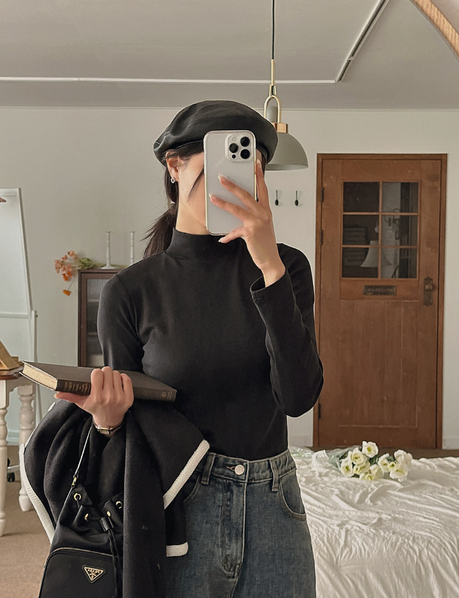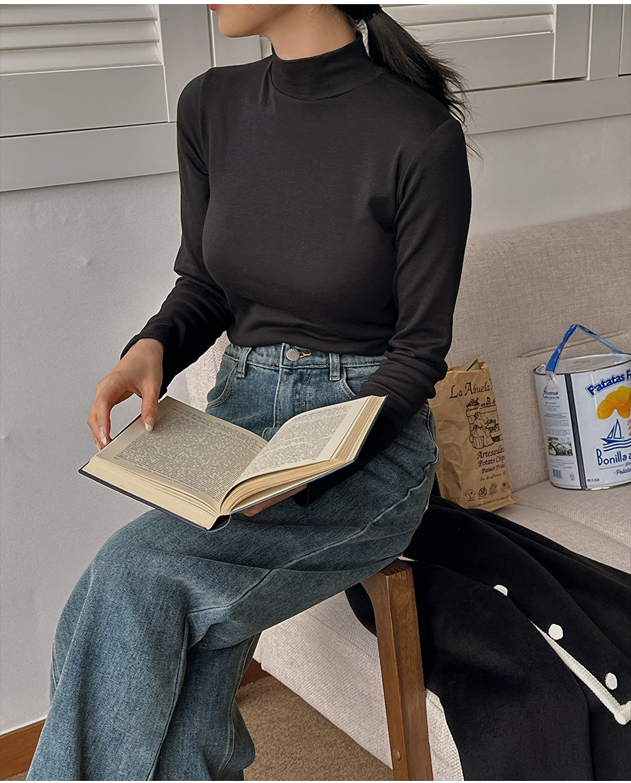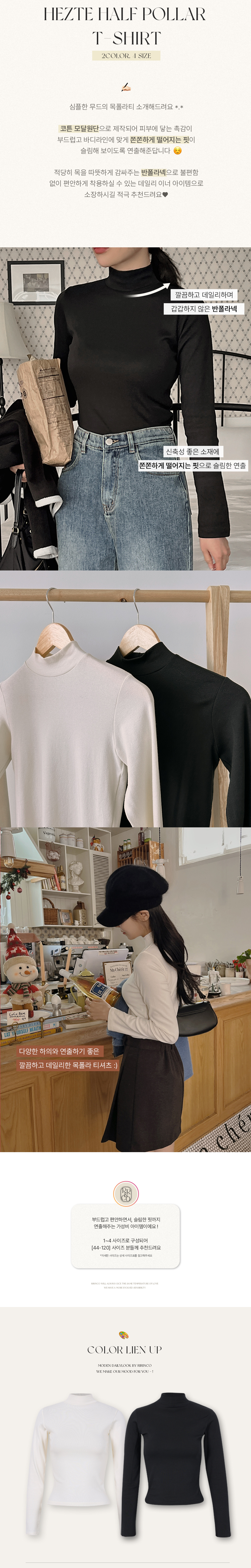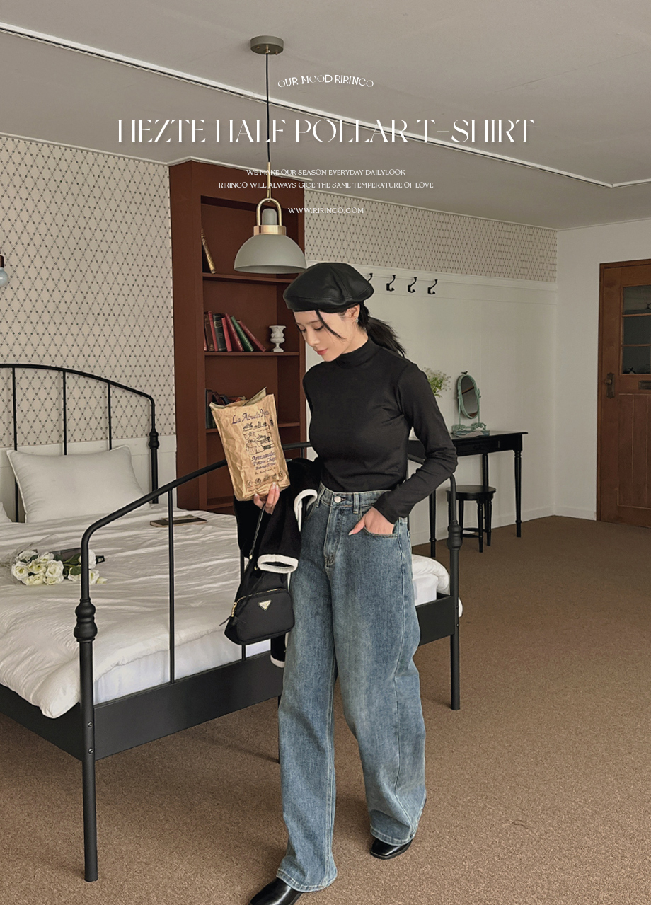 ririnco-헤즈테 스판 코튼 모달 반목폴라 티셔츠♡韓國女裝上衣
