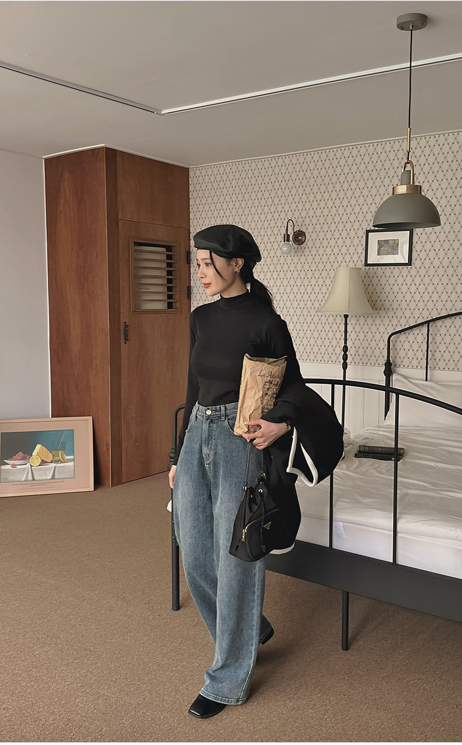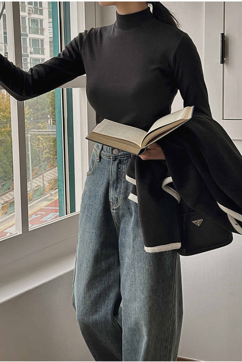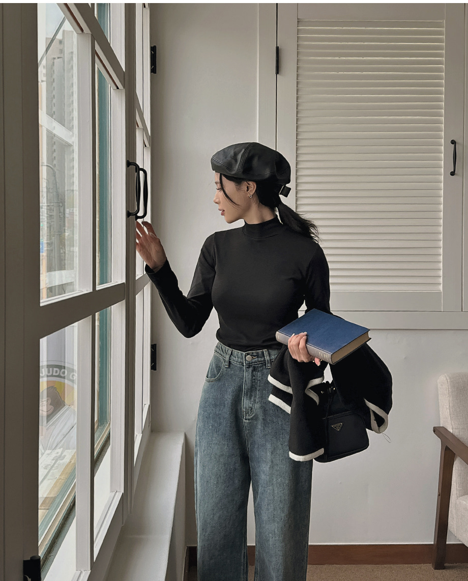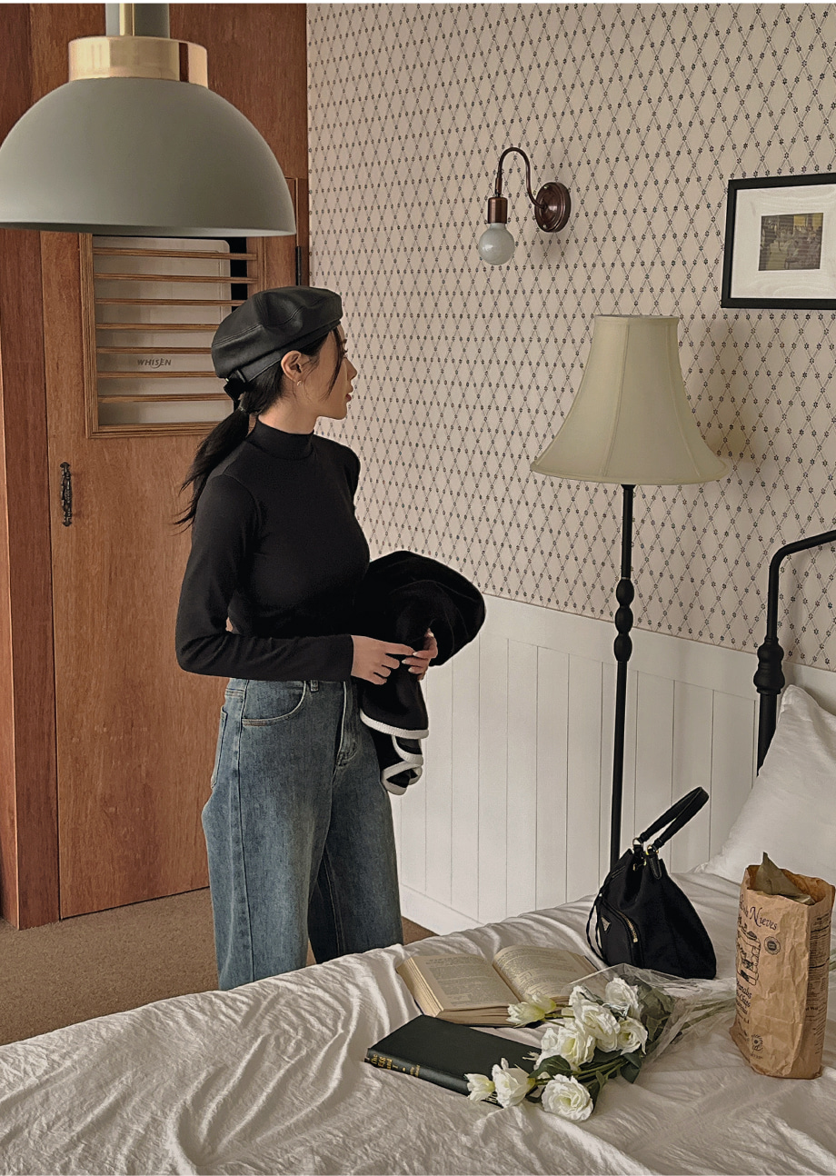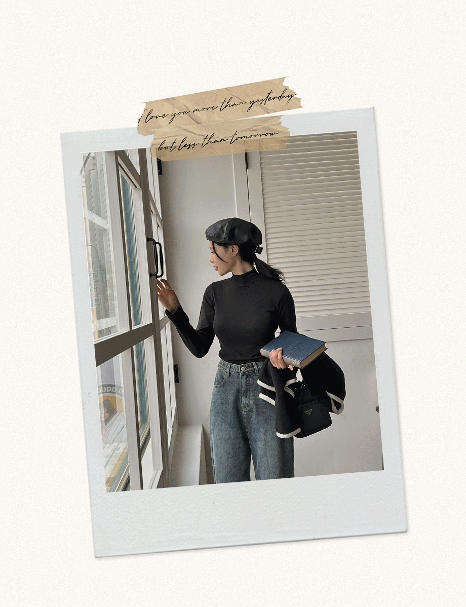 ririnco-헤즈테 스판 코튼 모달 반목폴라 티셔츠♡韓國女裝上衣