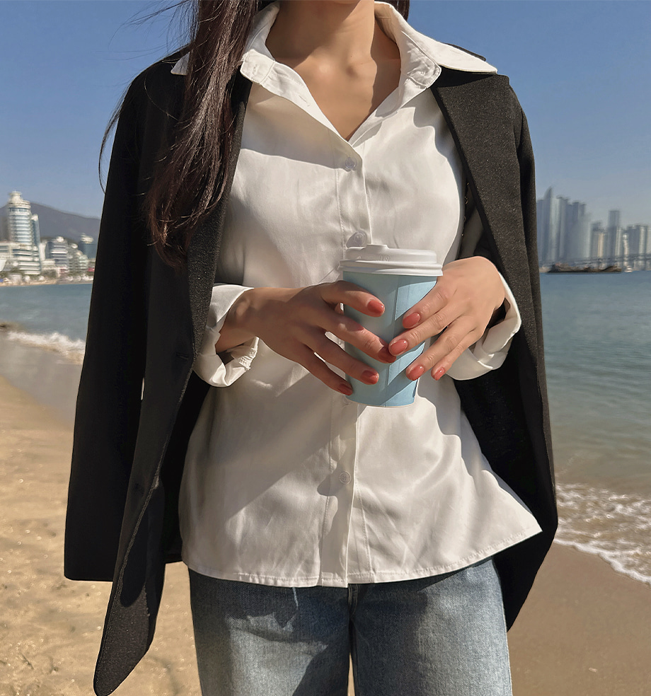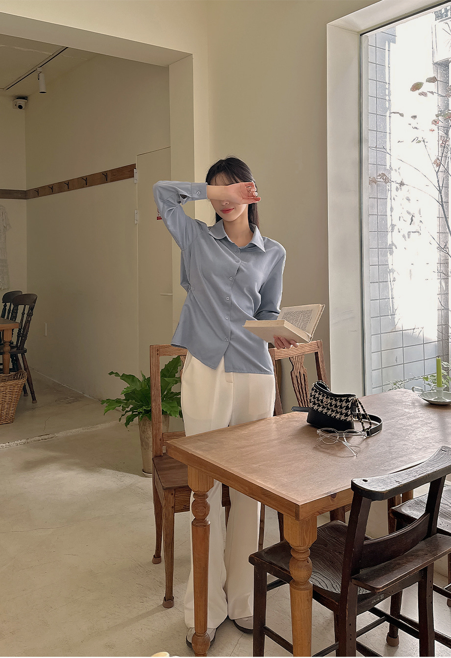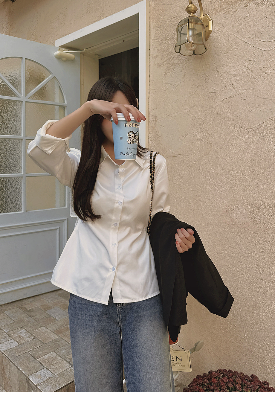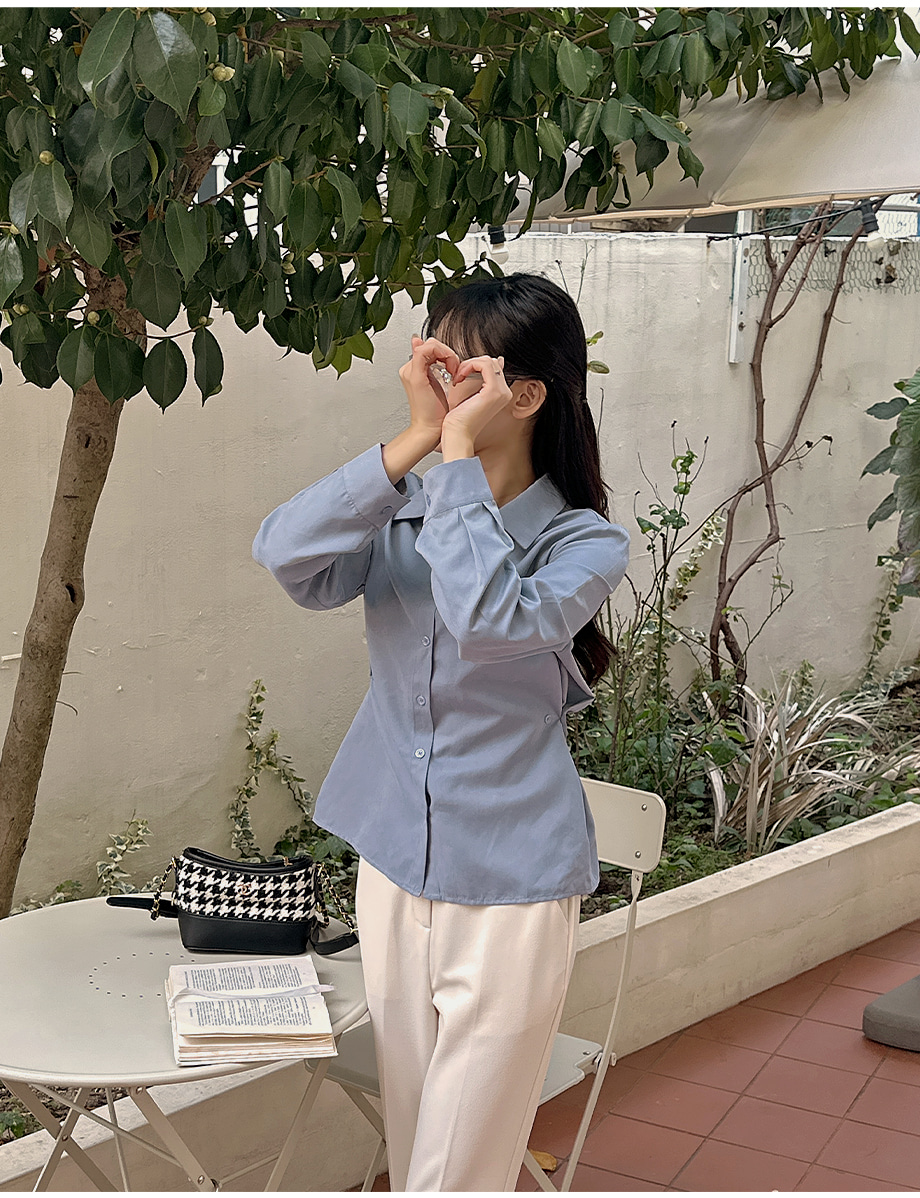 ririnco-크쥬블린 투버튼 투웨이 슬림핏 셔츠♡韓國女裝上衣