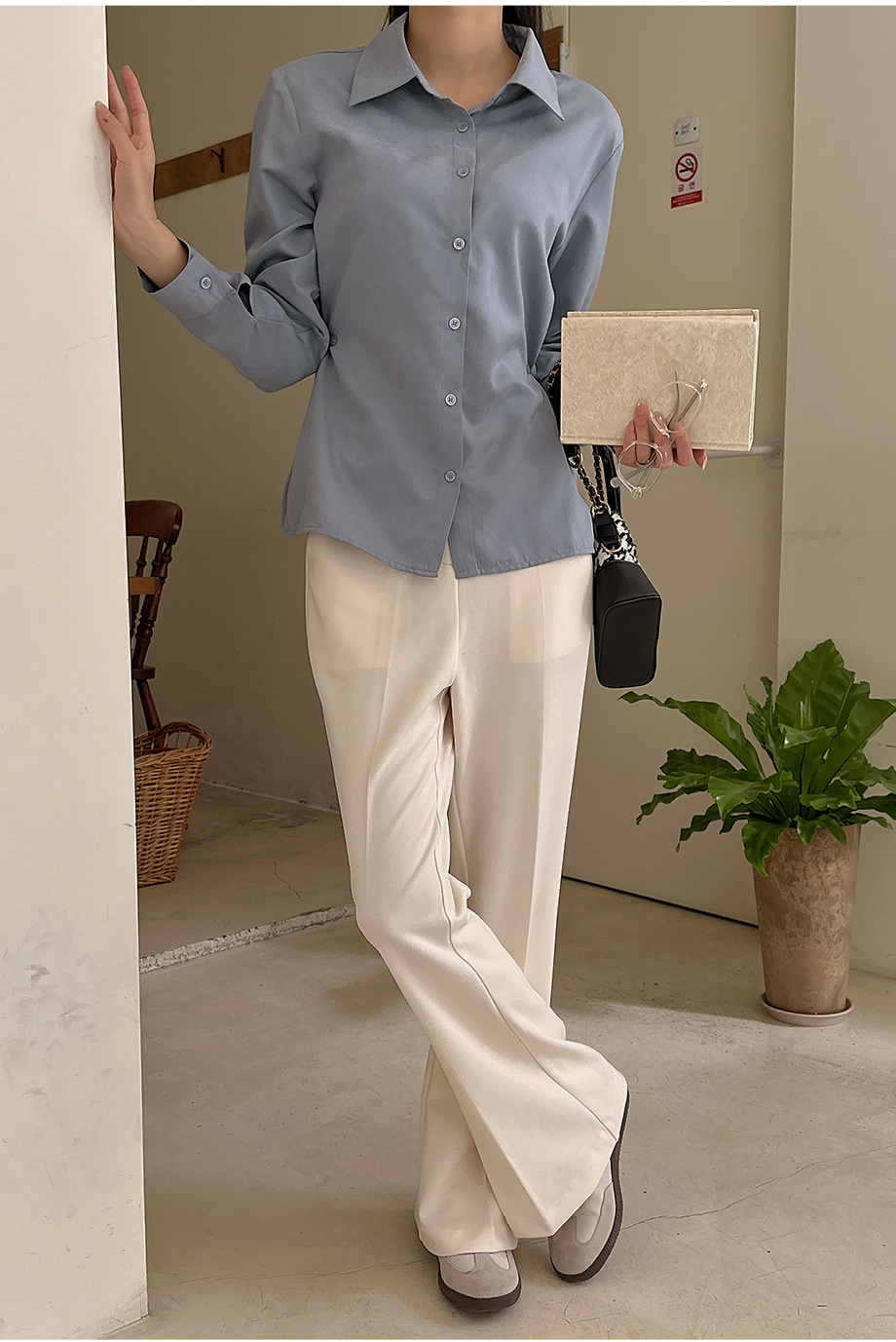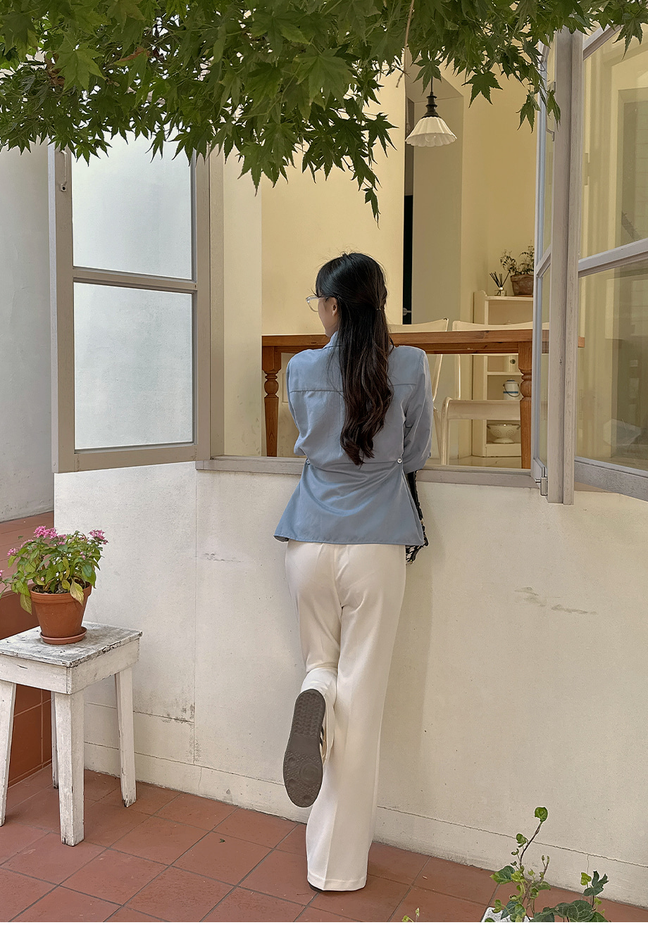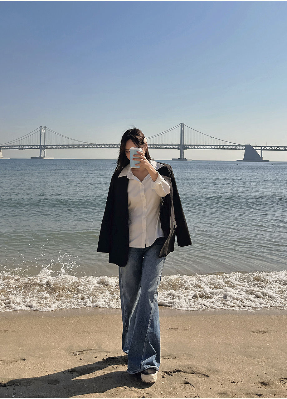 ririnco-크쥬블린 투버튼 투웨이 슬림핏 셔츠♡韓國女裝上衣