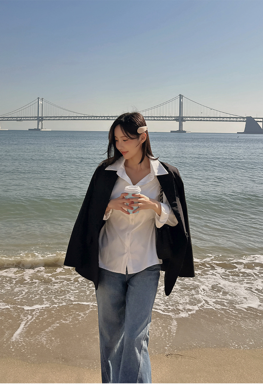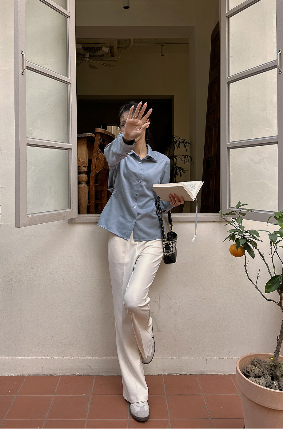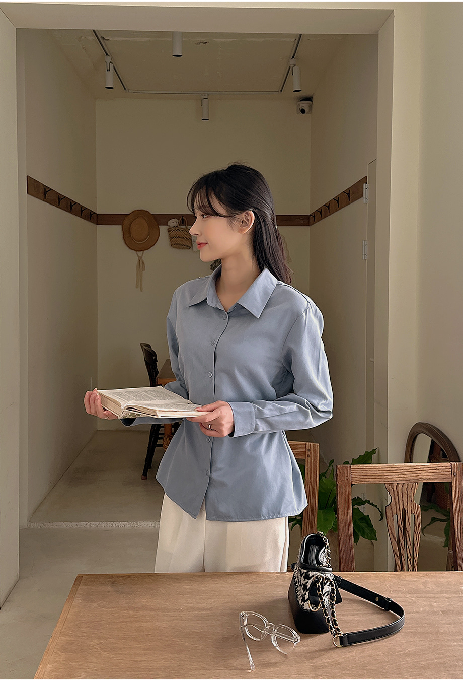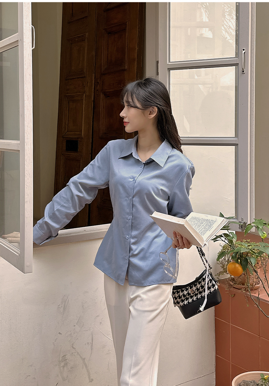 ririnco-크쥬블린 투버튼 투웨이 슬림핏 셔츠♡韓國女裝上衣