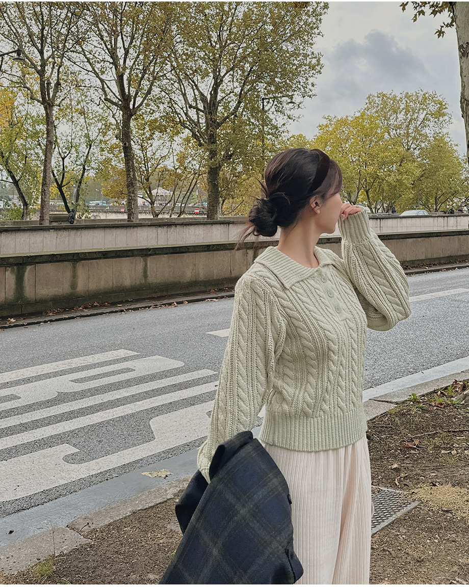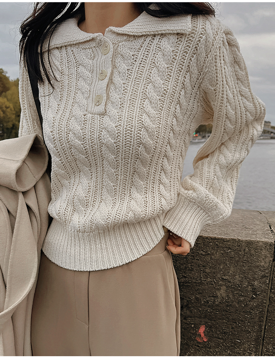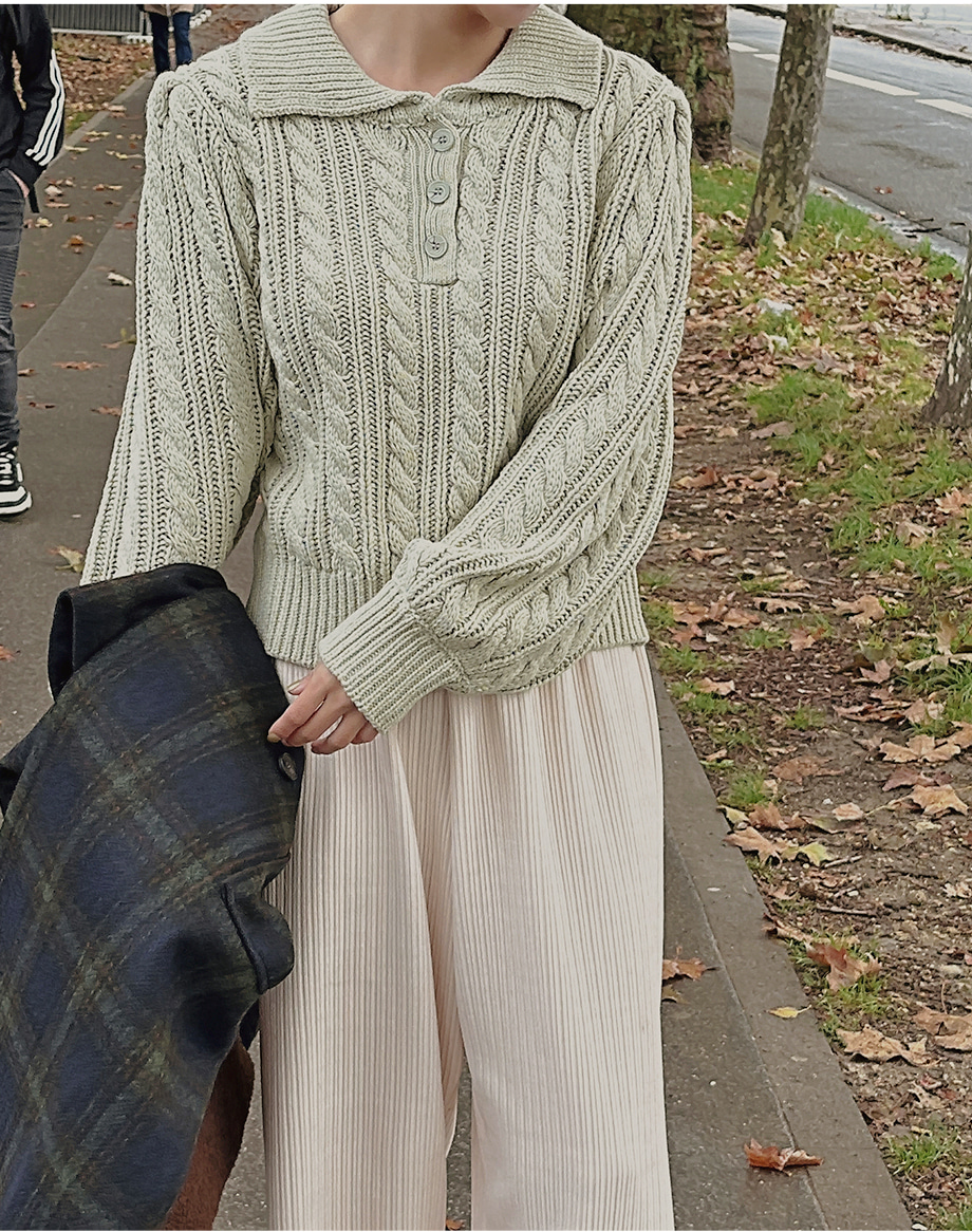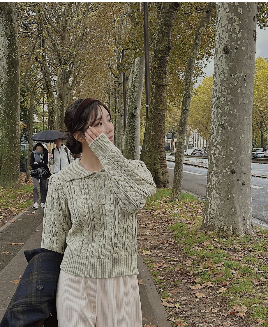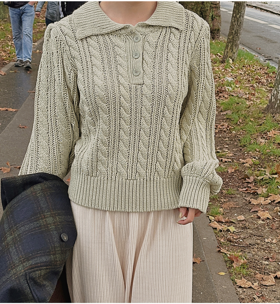ririnco-포그닌 카라넥 꽈배기 니트♡韓國女裝上衣
