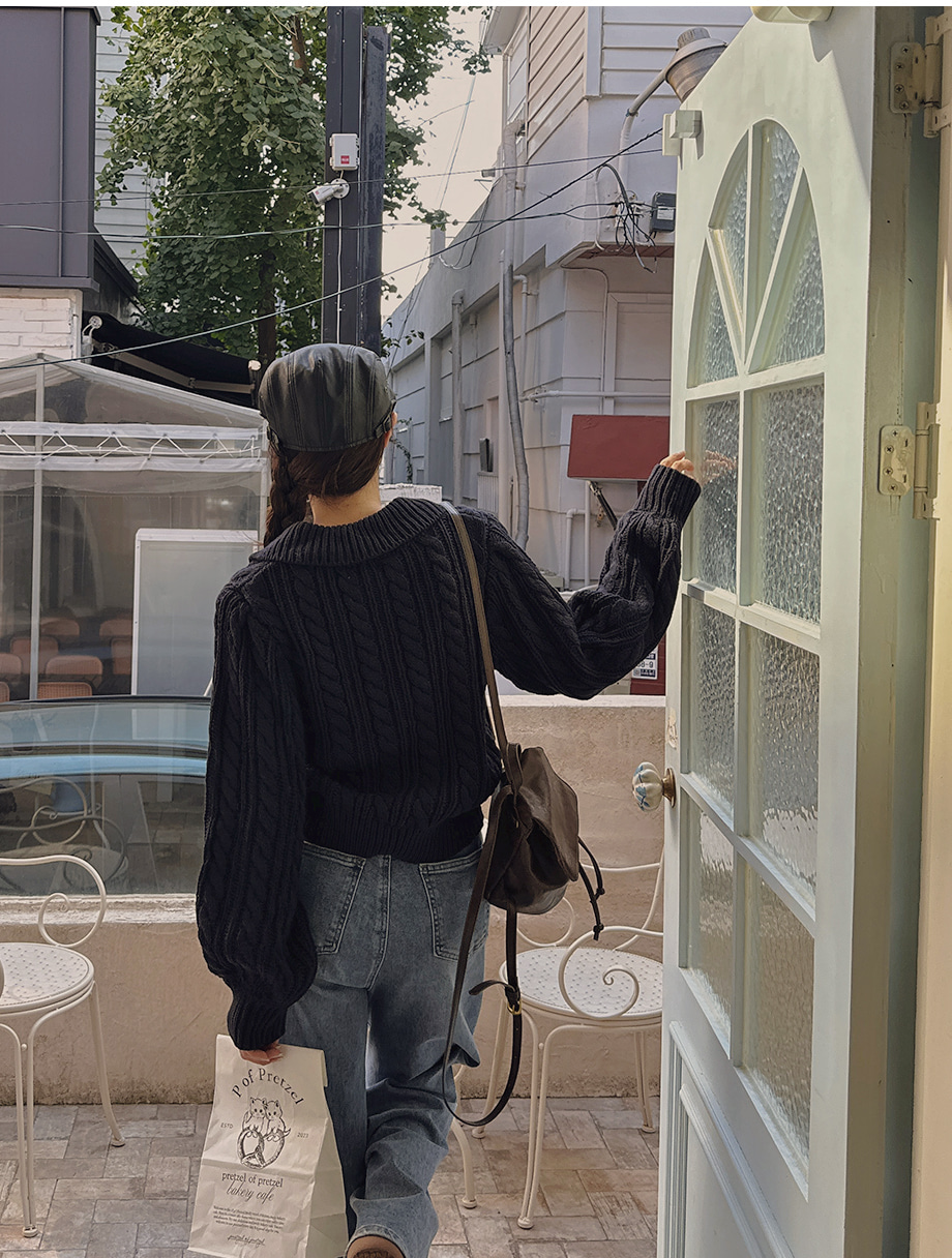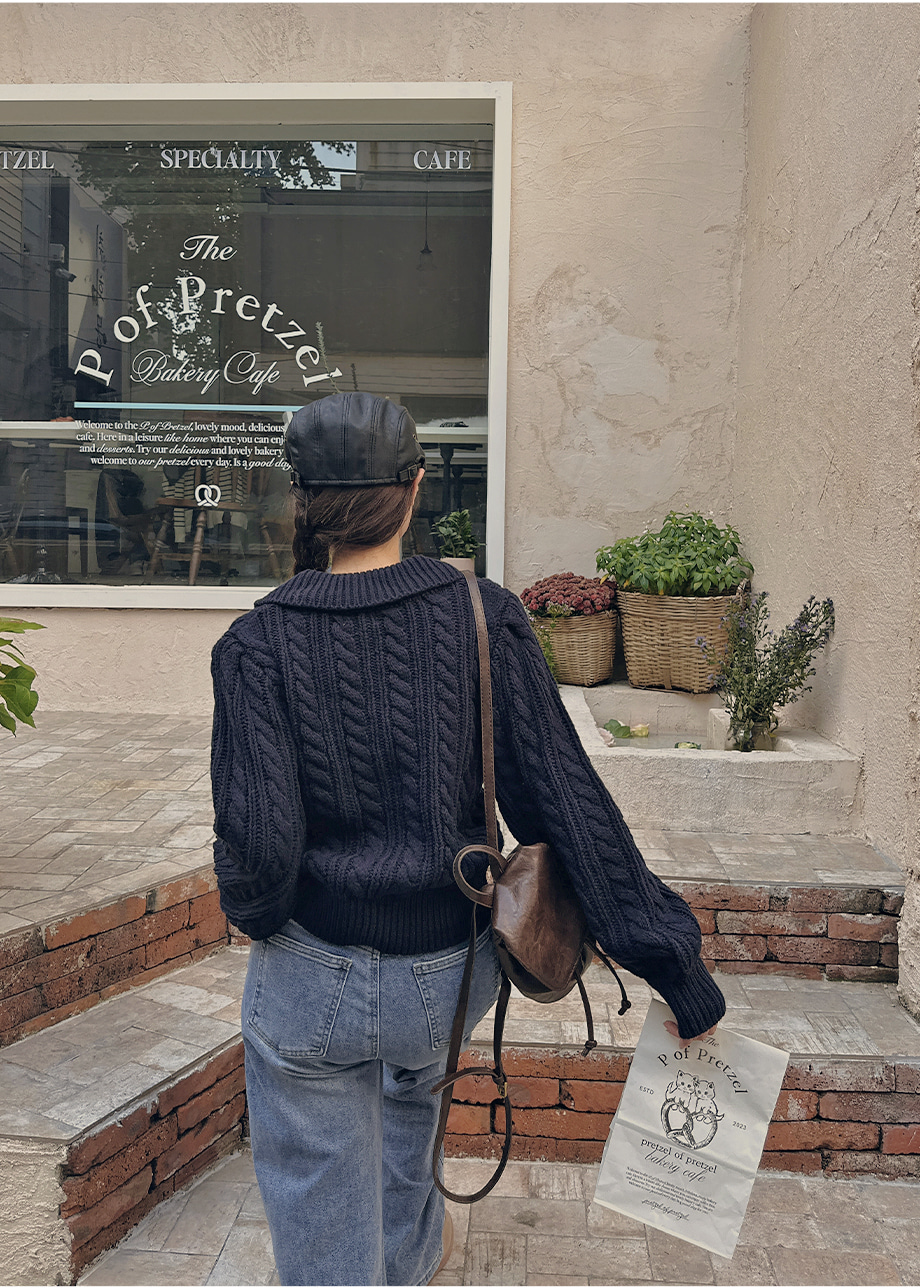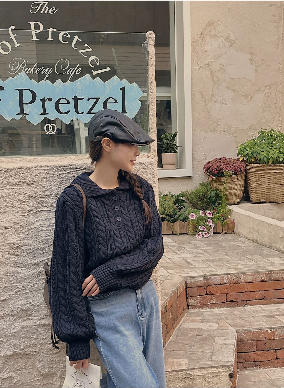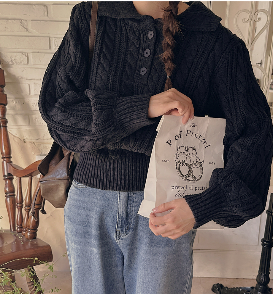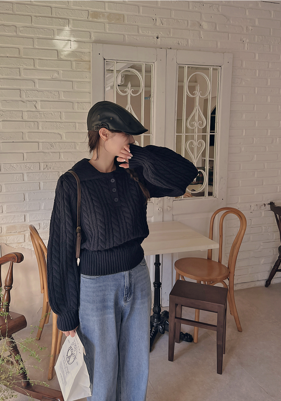 ririnco-포그닌 카라넥 꽈배기 니트♡韓國女裝上衣