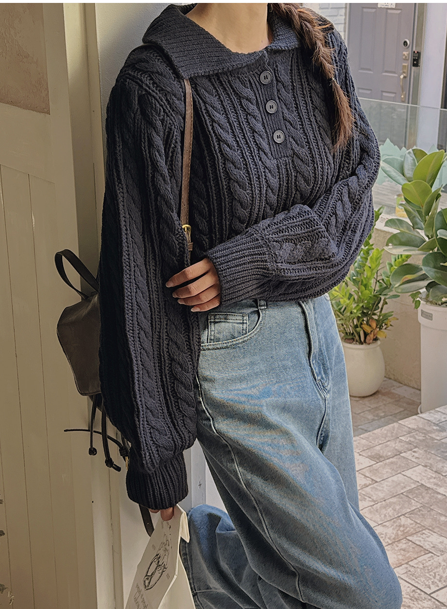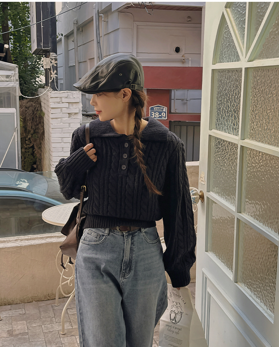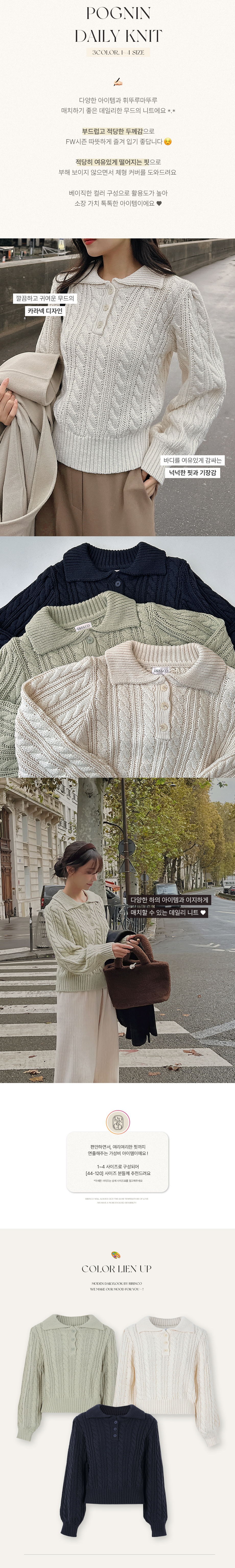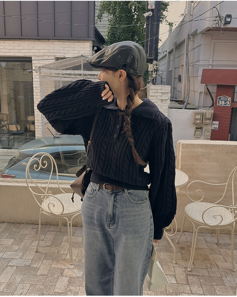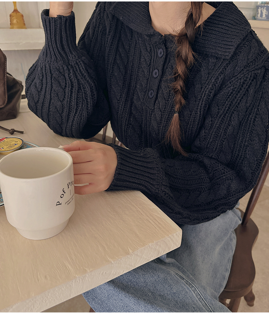 ririnco-포그닌 카라넥 꽈배기 니트♡韓國女裝上衣