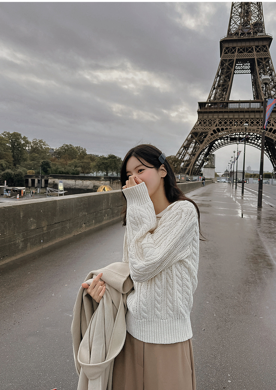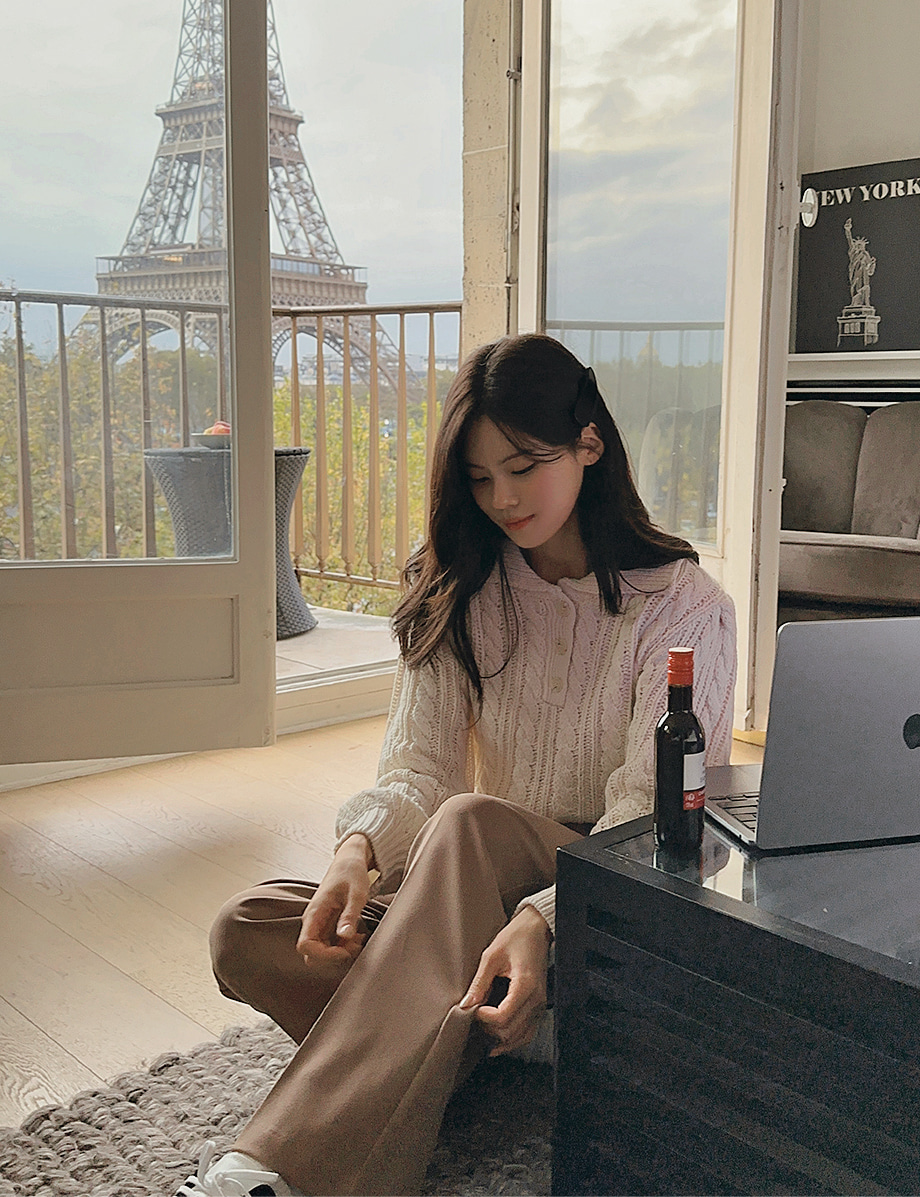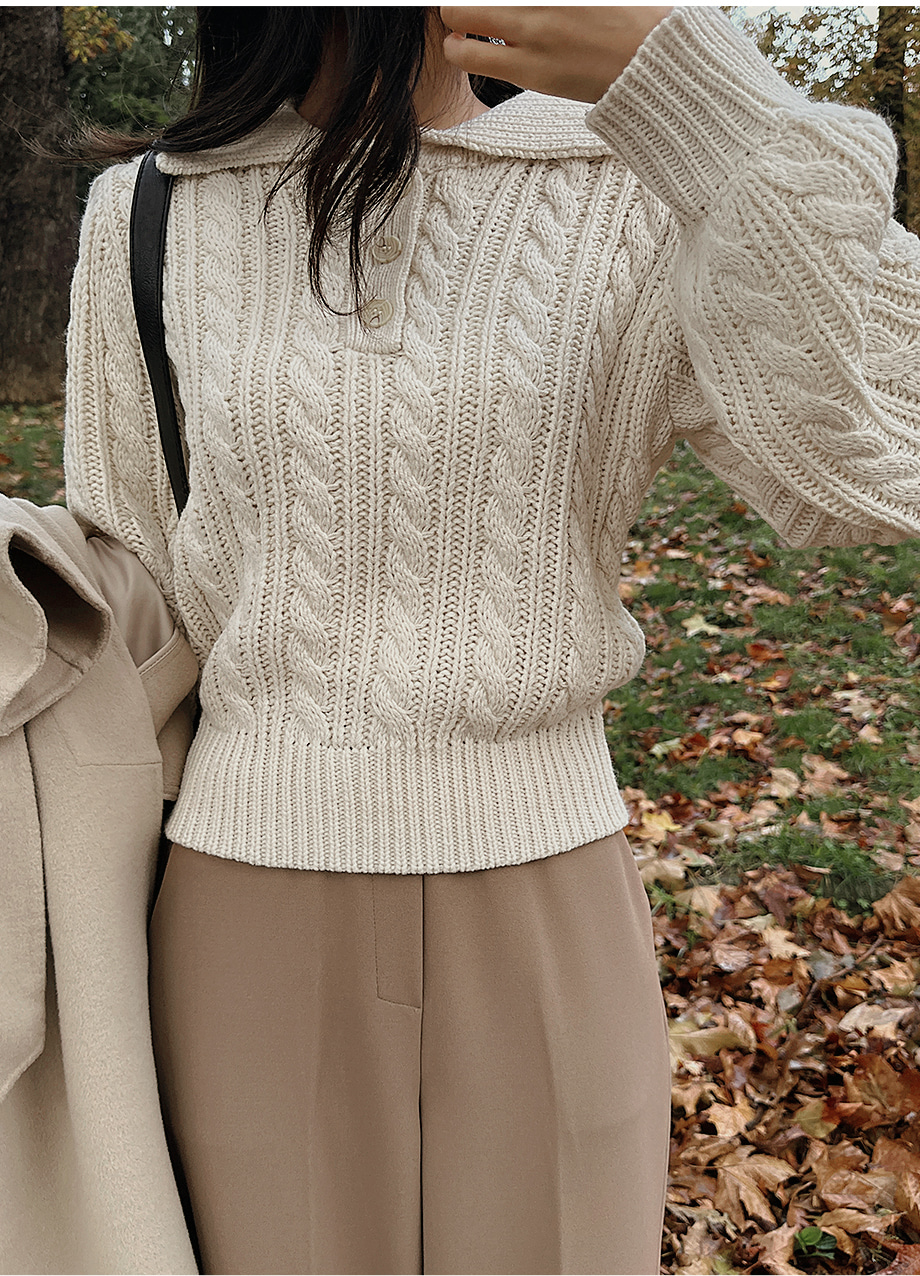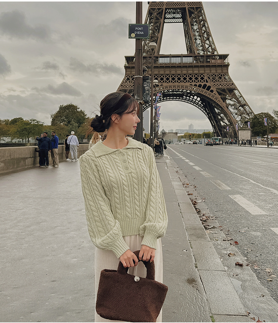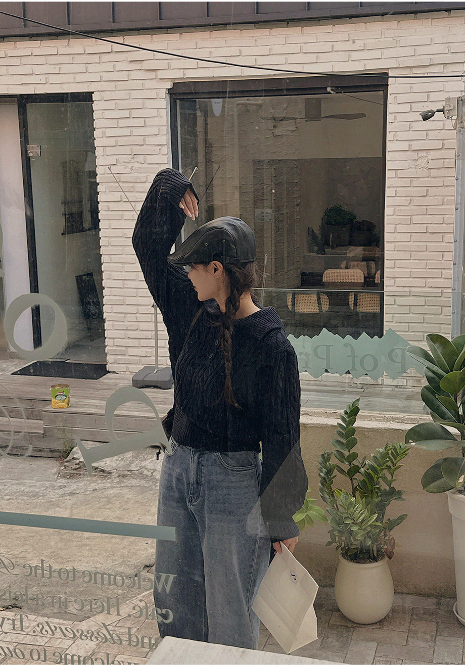 ririnco-포그닌 카라넥 꽈배기 니트♡韓國女裝上衣