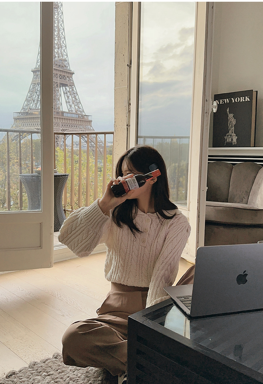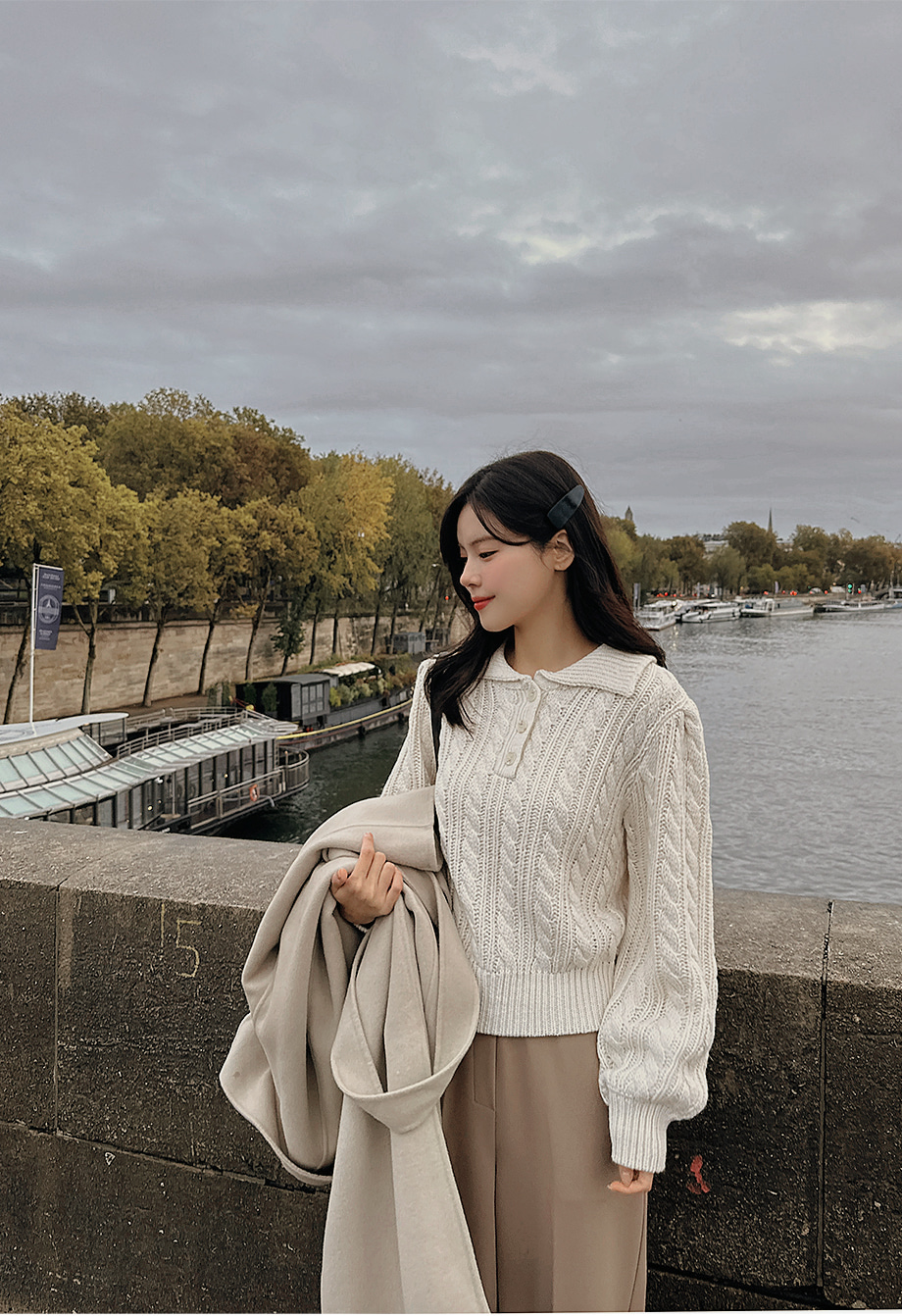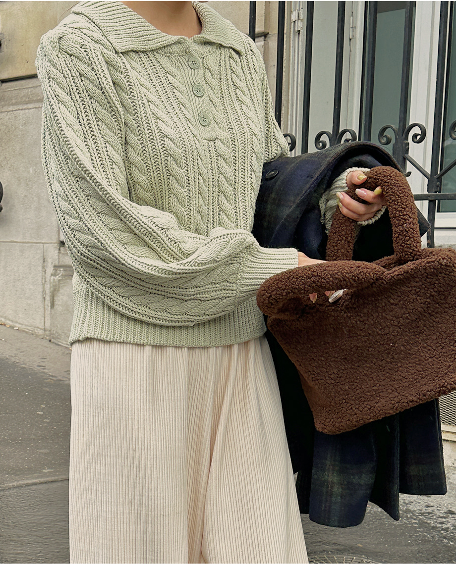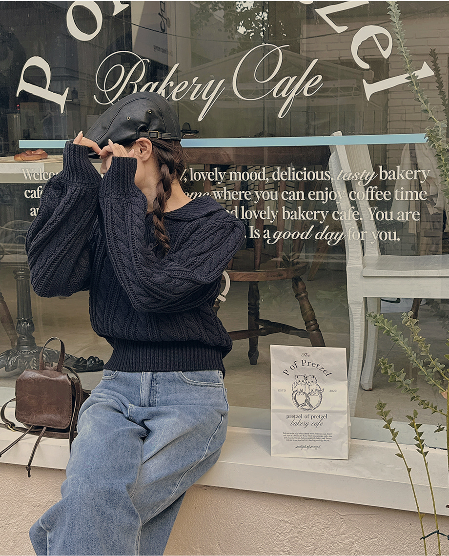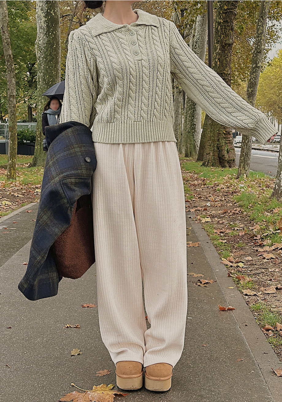 ririnco-포그닌 카라넥 꽈배기 니트♡韓國女裝上衣