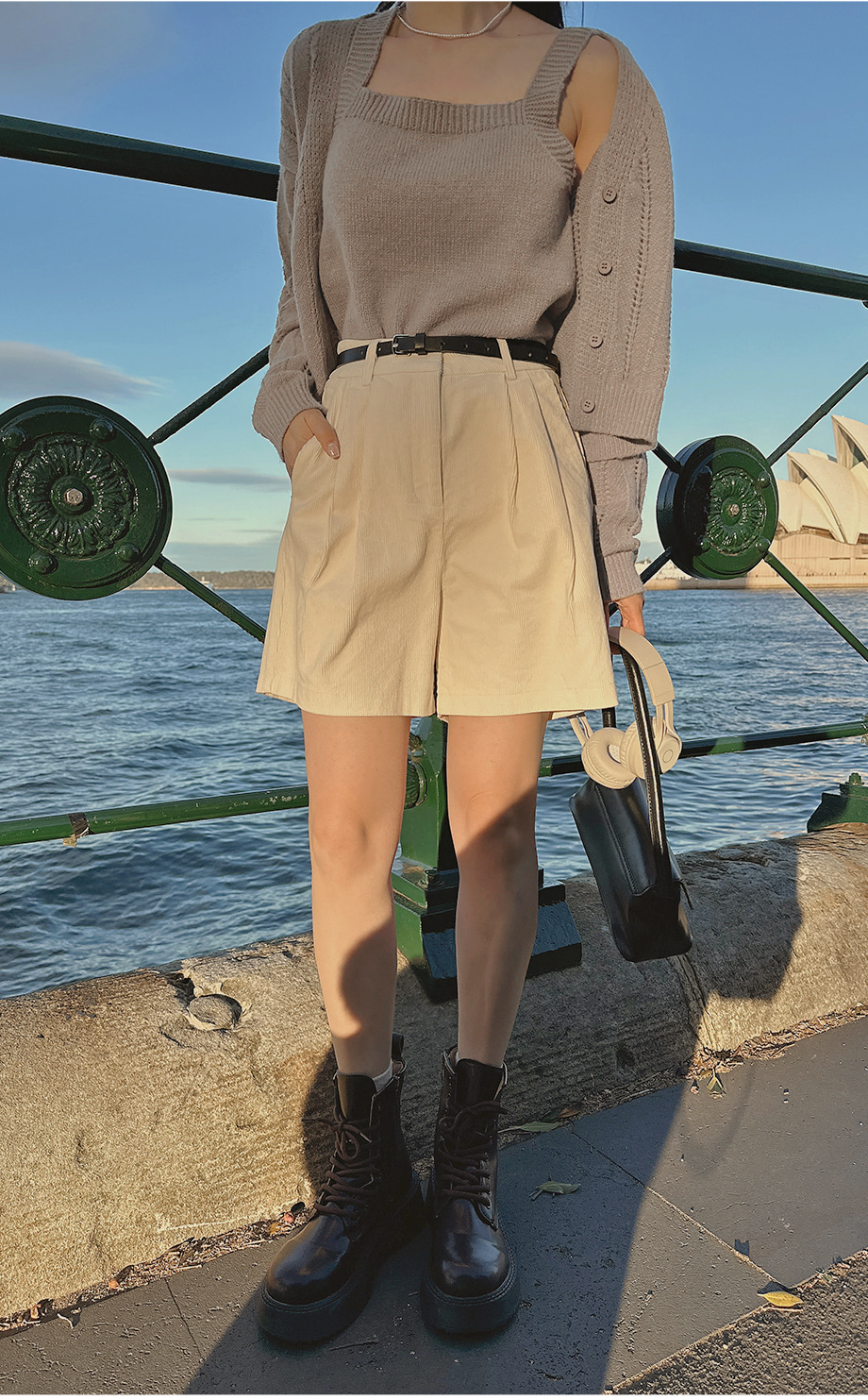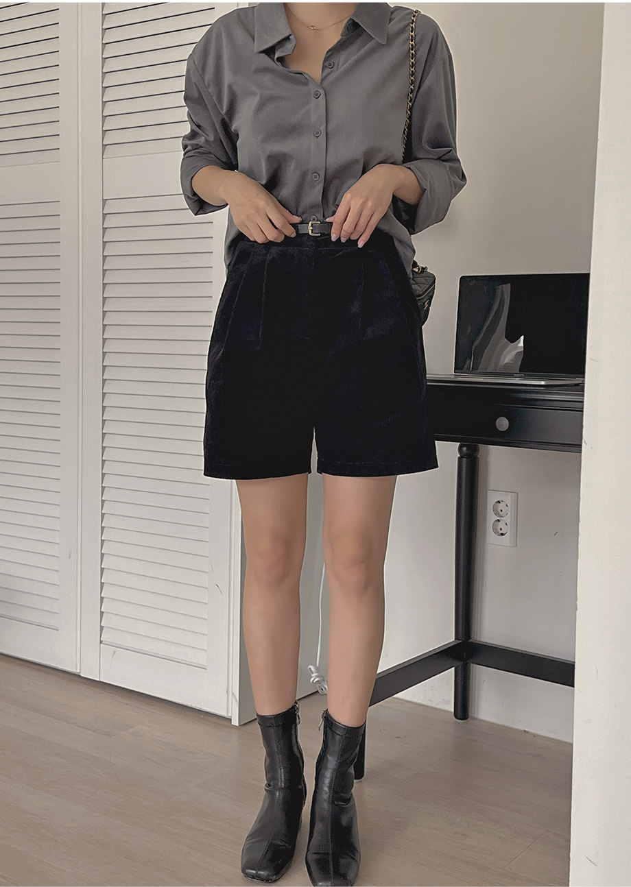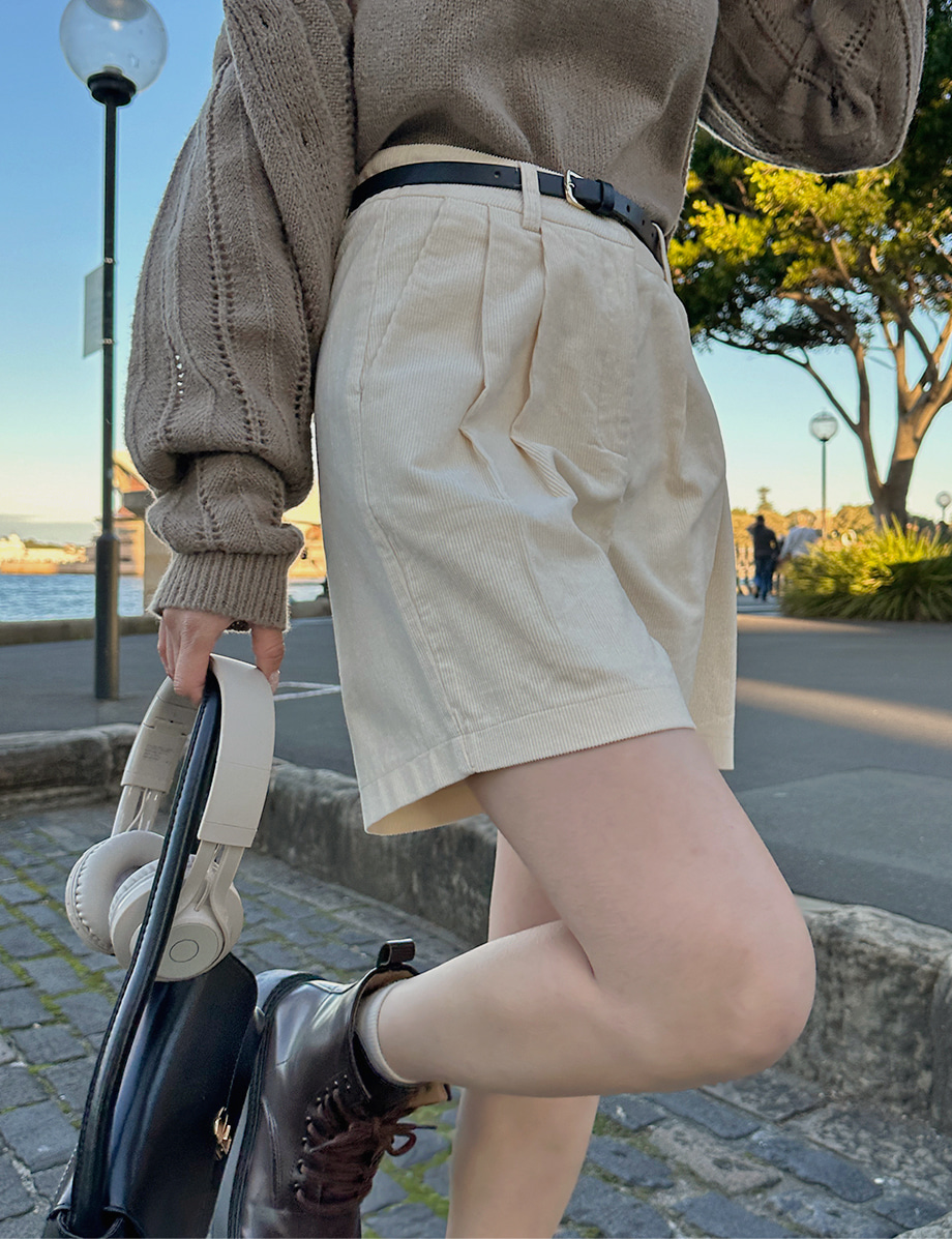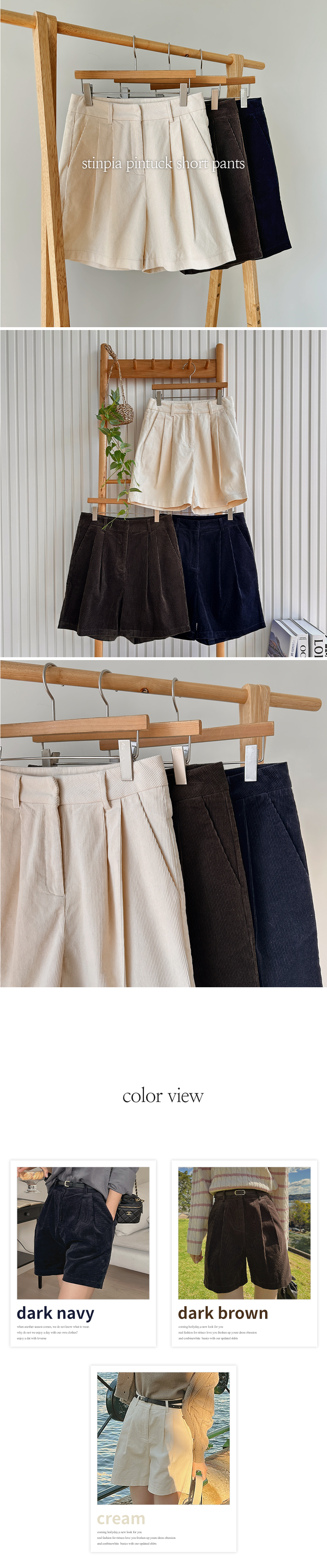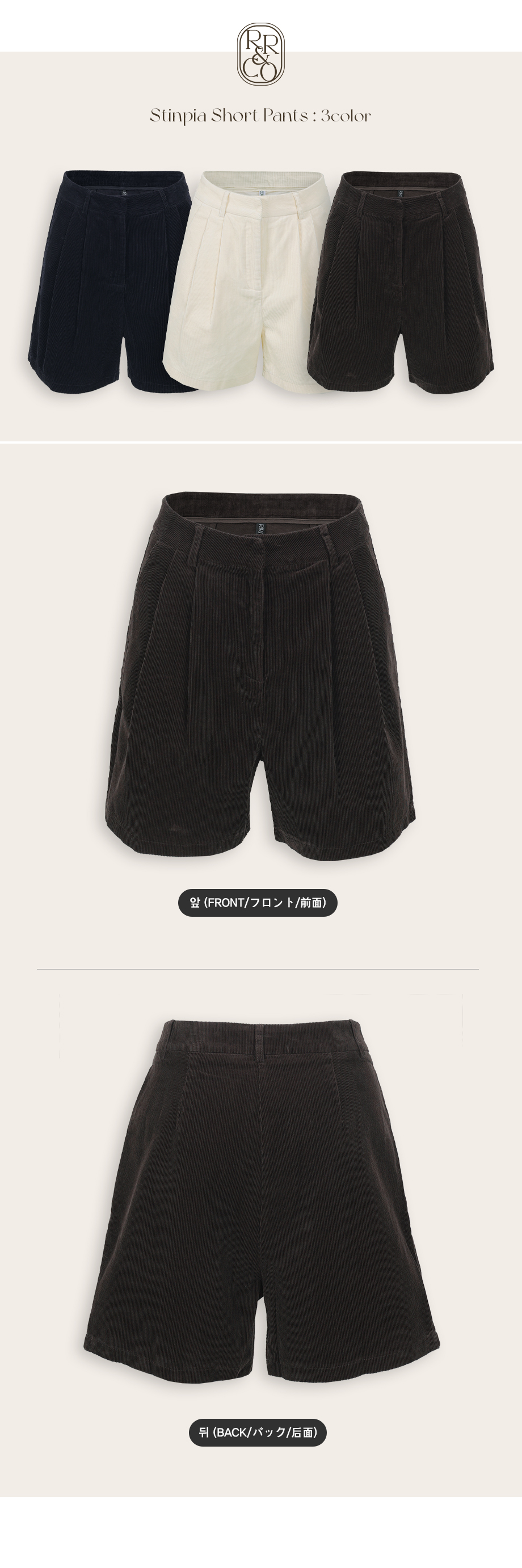 ririnco-스틴피아 코듀로이 투핀턱 숏 팬츠♡韓國女裝褲
