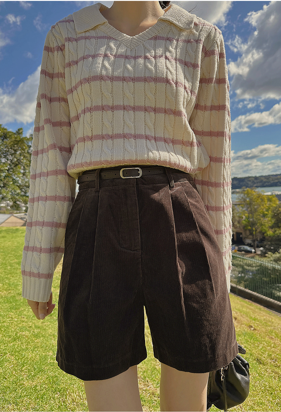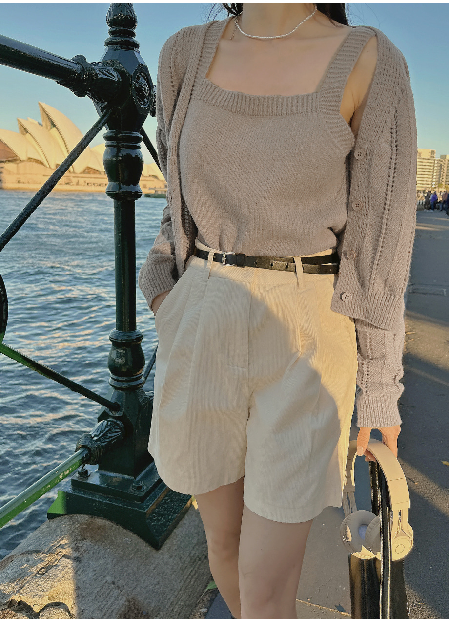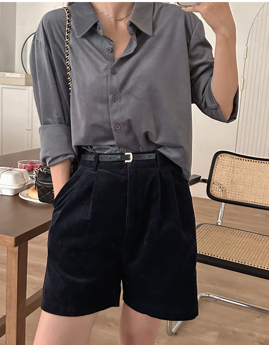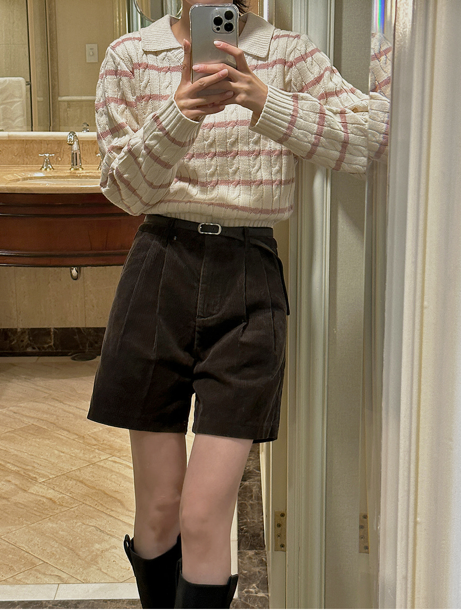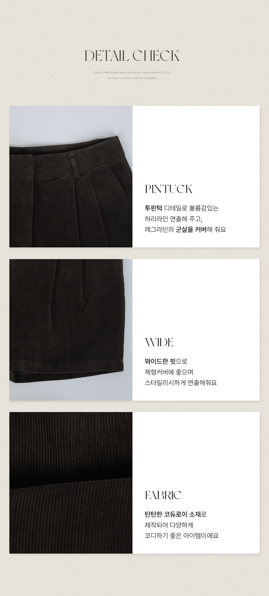 ririnco-스틴피아 코듀로이 투핀턱 숏 팬츠♡韓國女裝褲