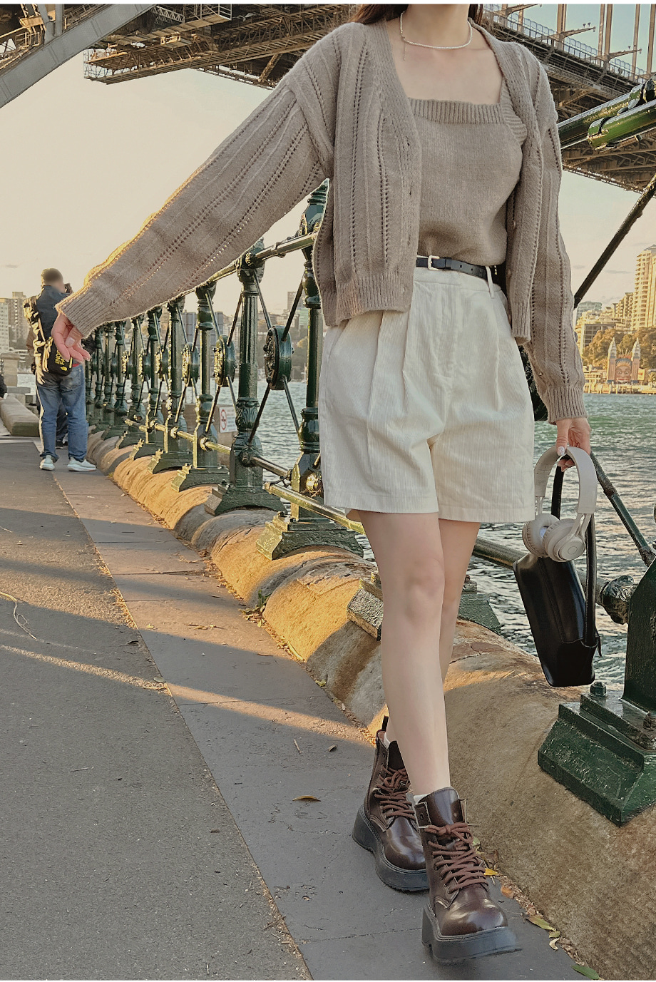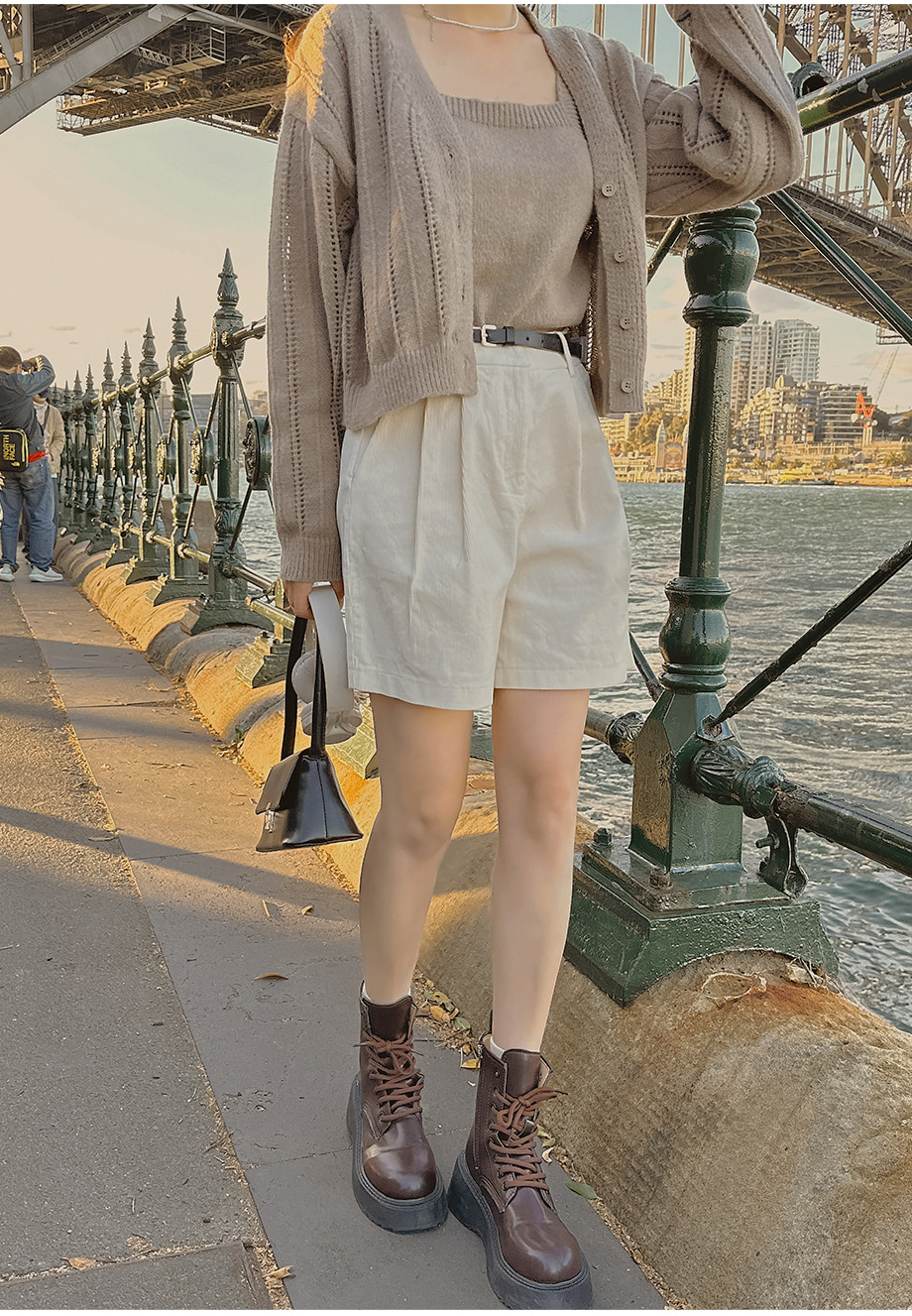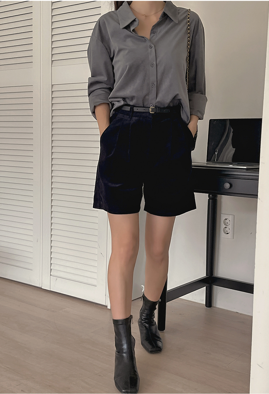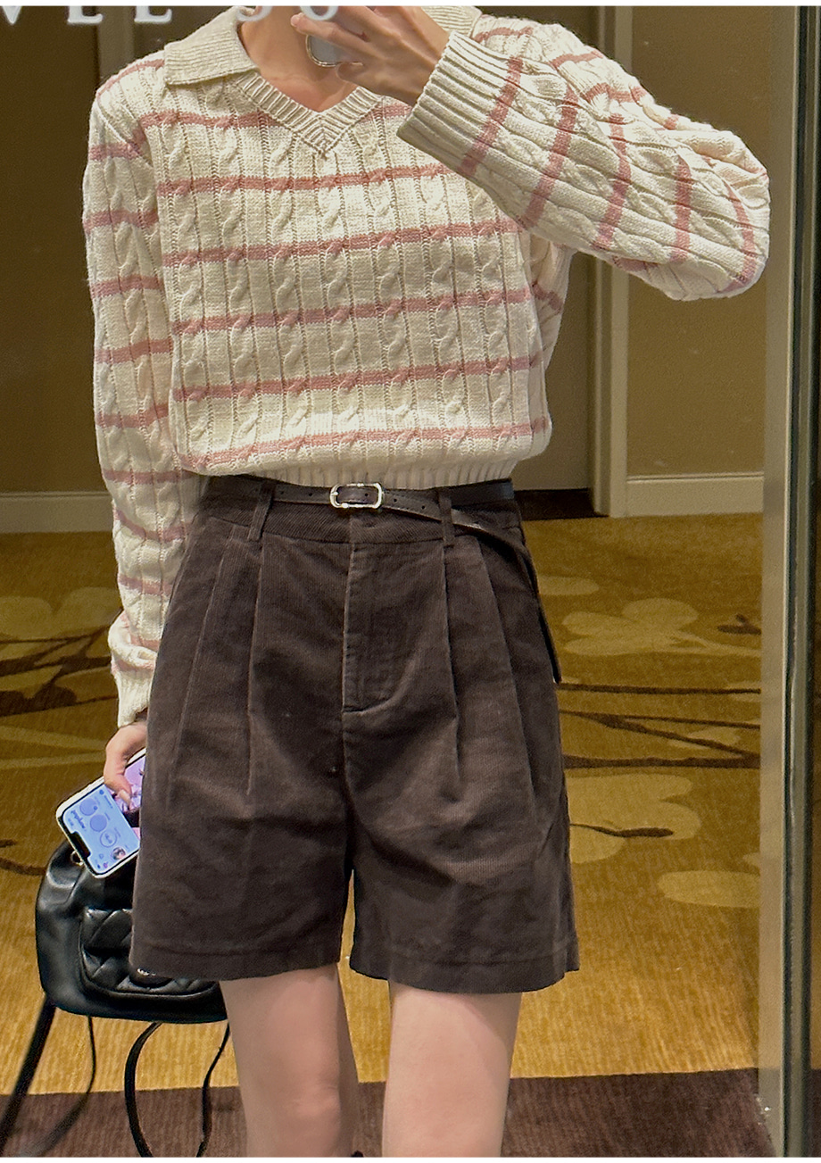 ririnco-스틴피아 코듀로이 투핀턱 숏 팬츠♡韓國女裝褲