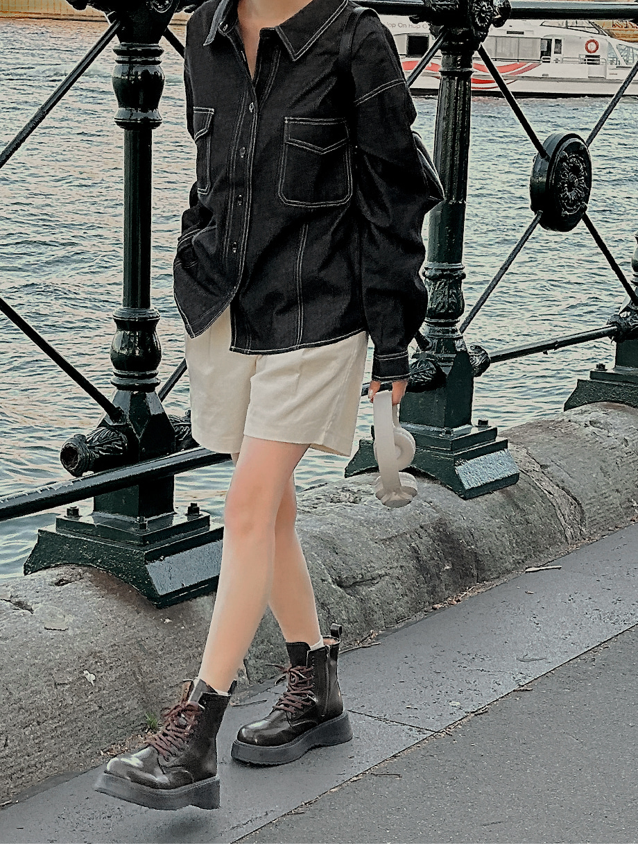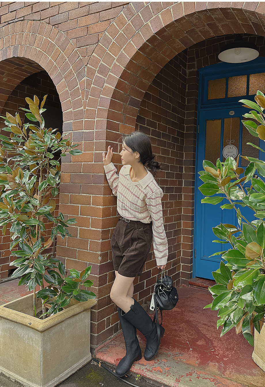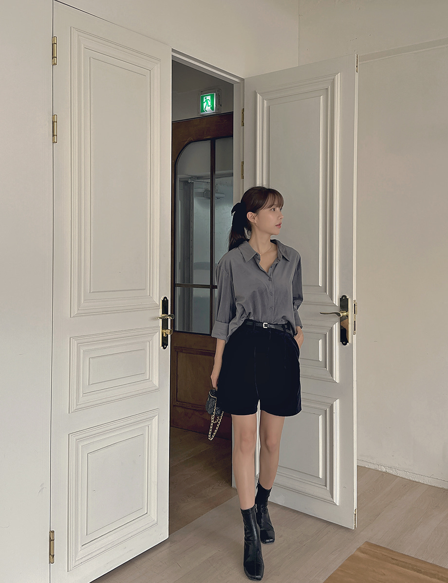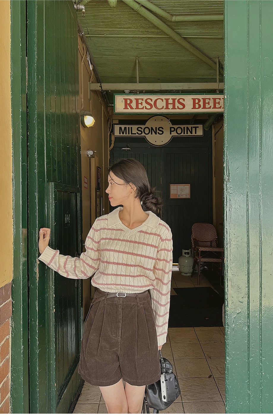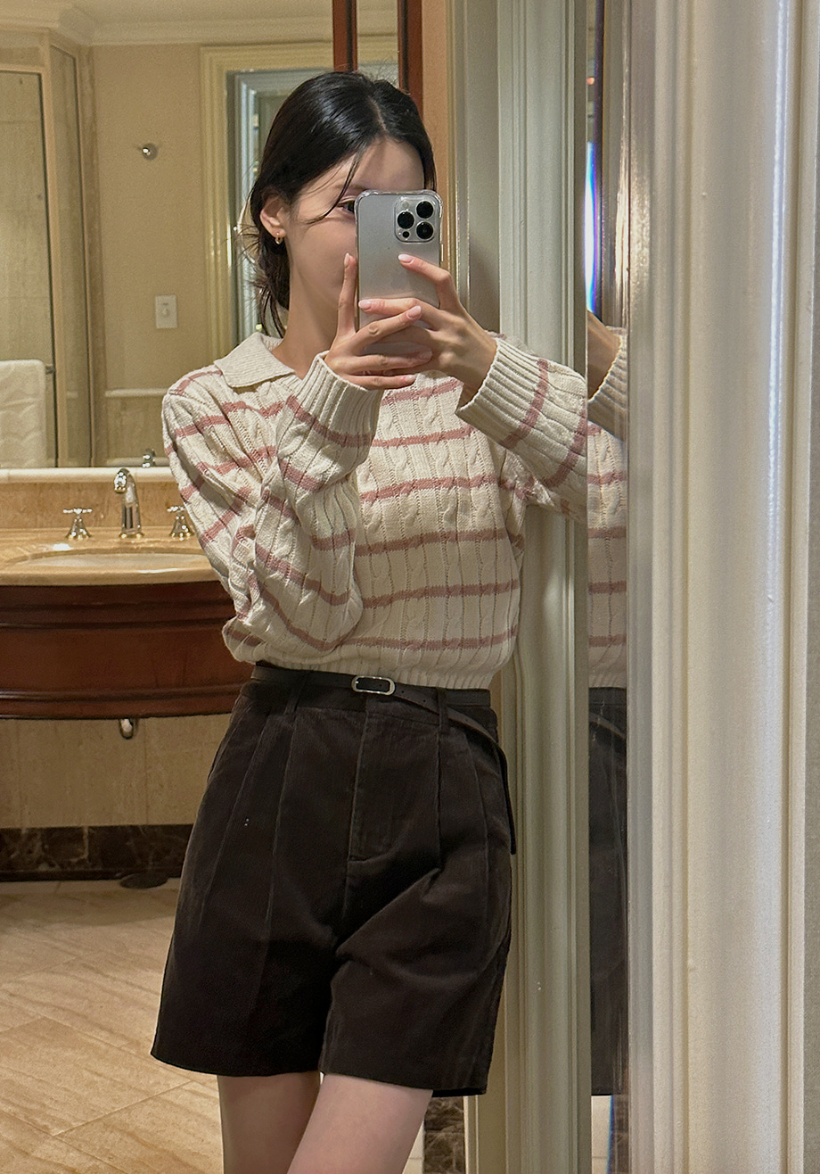 ririnco-스틴피아 코듀로이 투핀턱 숏 팬츠♡韓國女裝褲