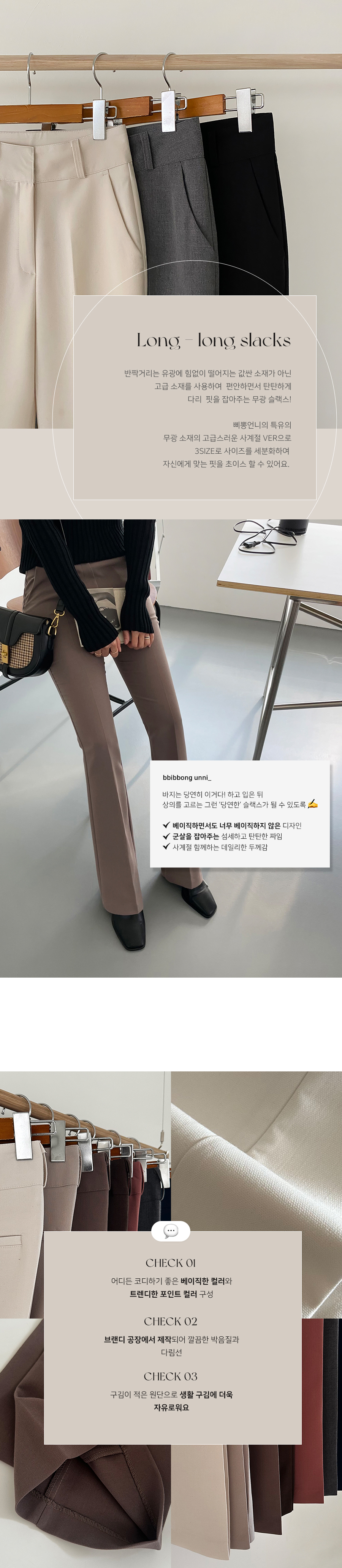 bbibbongunni-[삐뽕메이드/12만장판매]롱롱 부츠컷슬랙스(9color) 사계절슬랙스 긴바지 부츠컷팬츠 봄 가을 오버클래식 와이드슬랙스 트렌치 스판팬츠 가을하객룩 일자슬랙스 오피스팬츠 출근룩 여성정장세트 글램슬랙스 롱슬랙스 부츠컷바지 일자슬랙스 스키니♡韓國女裝褲
