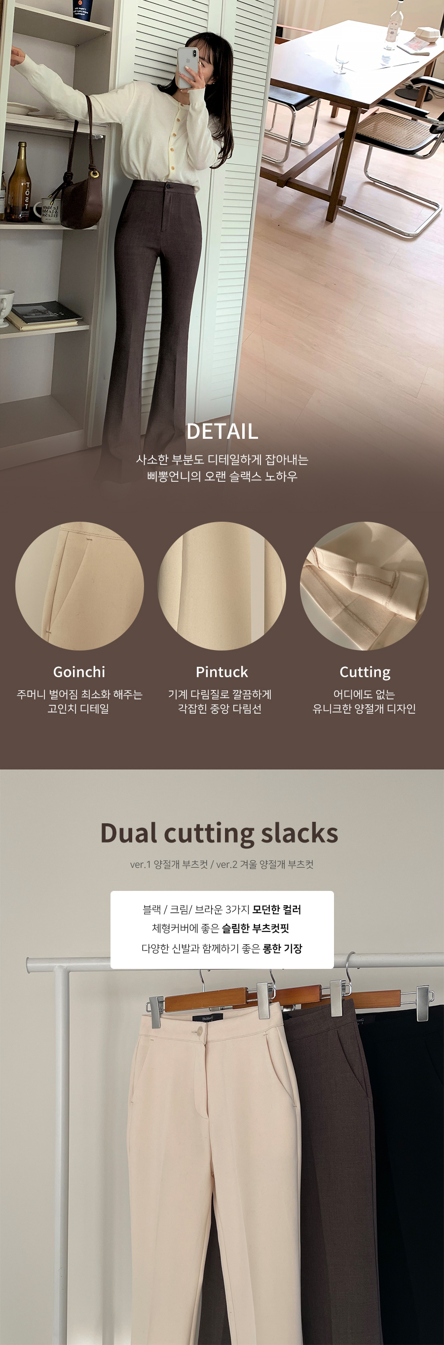 bbibbongunni-[우주편한ver.14]겨울 양절개 부츠컷슬랙스(XSL,4color) [기모슬랙스 기모팬츠 겨울슬랙스 겨울정장팬츠 절개슬랙스 트임슬랙스 부츠컷슬랙스 롱슬랙스 세미와이드팬츠 겨울긴바지 겨울하객룩 회색슬랙스 겨울출근룩 한파팬츠]♡韓國女裝褲