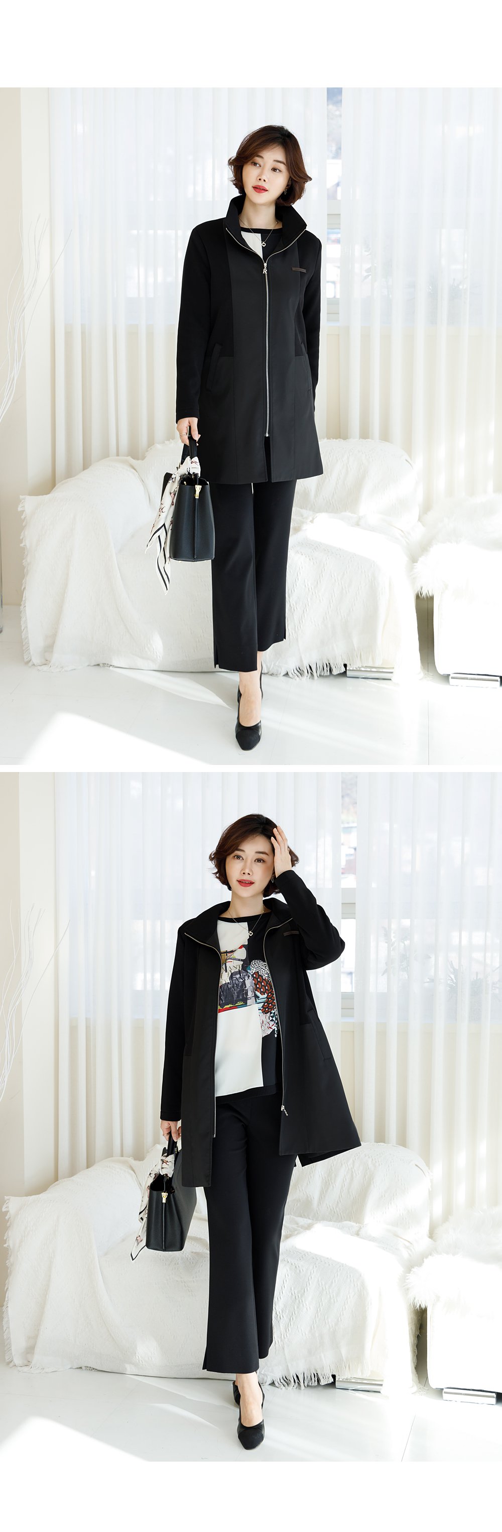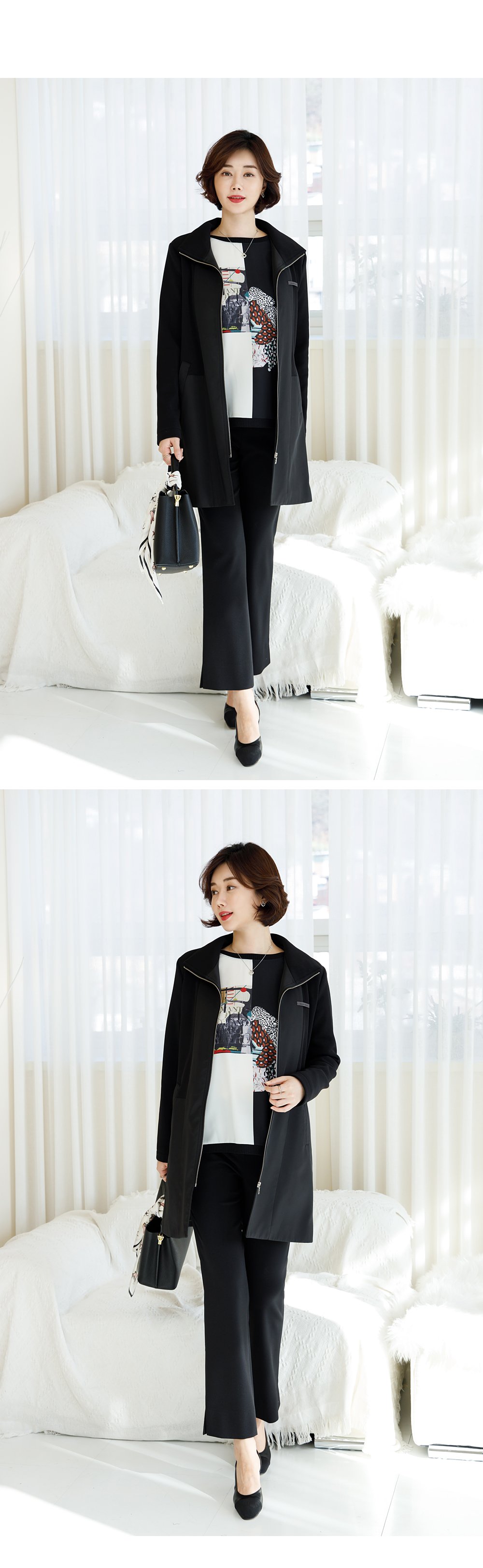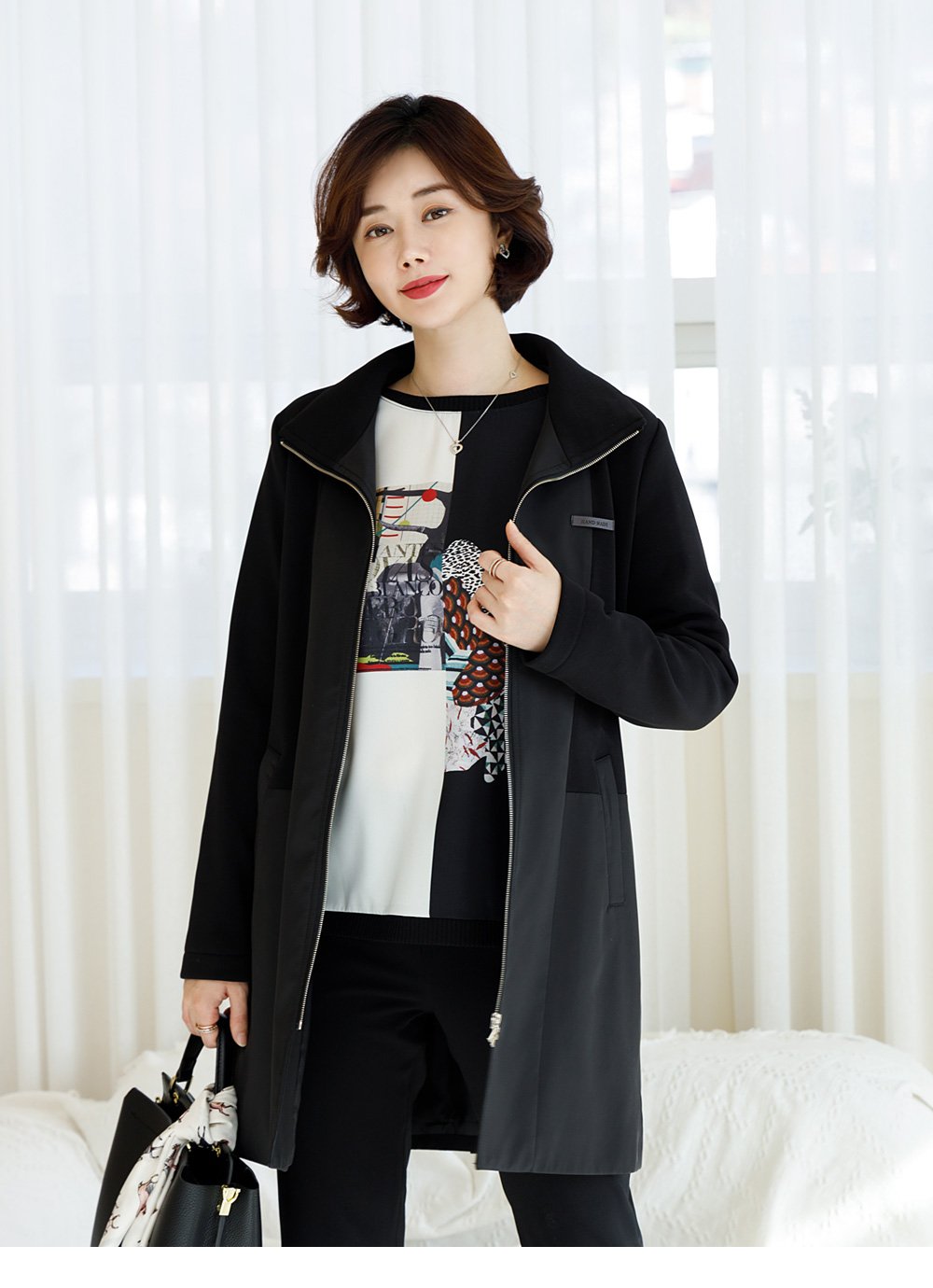 dedra-OUB1032 모스틴배색롱점퍼♡韓國女裝外套