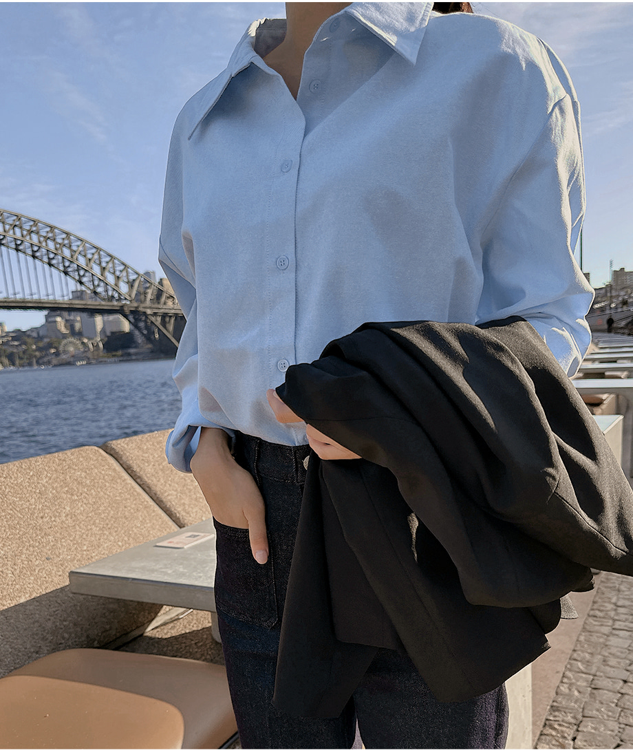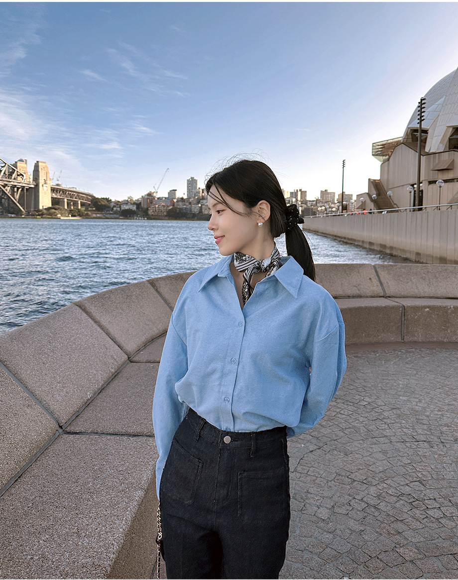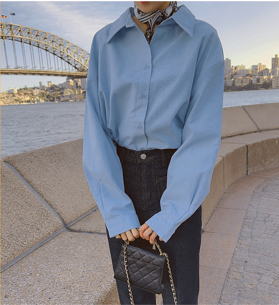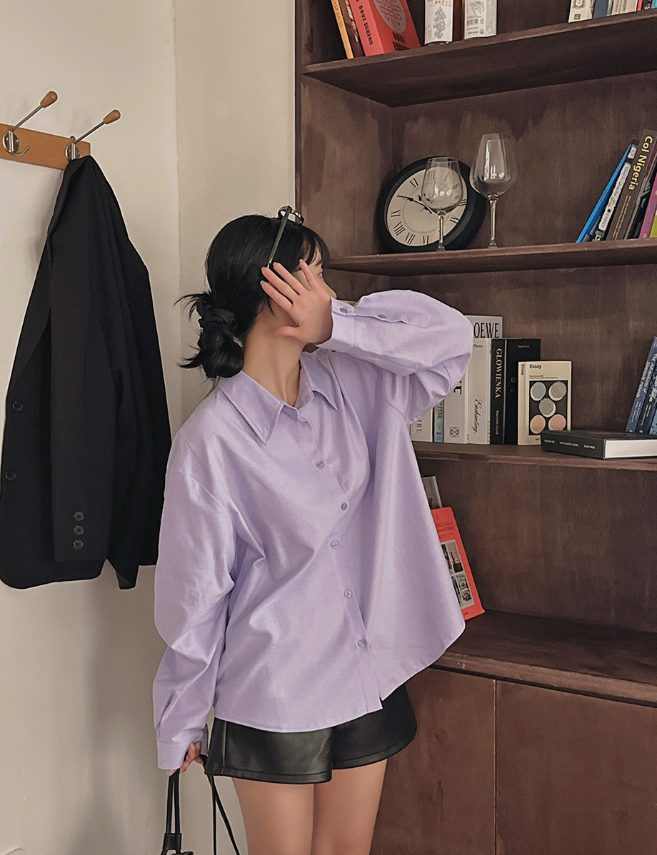 ririnco-에포런 옥스포드 언발 카라 루즈핏 셔츠♡韓國女裝上衣