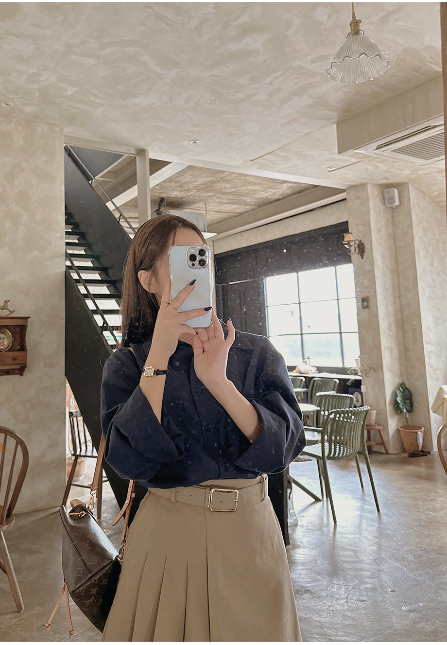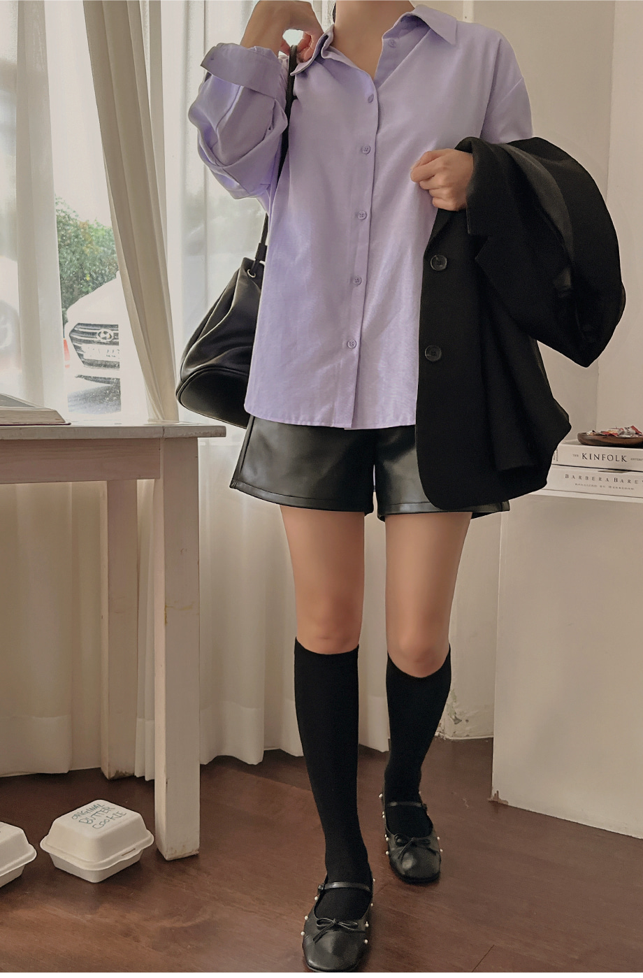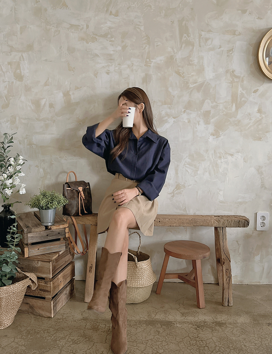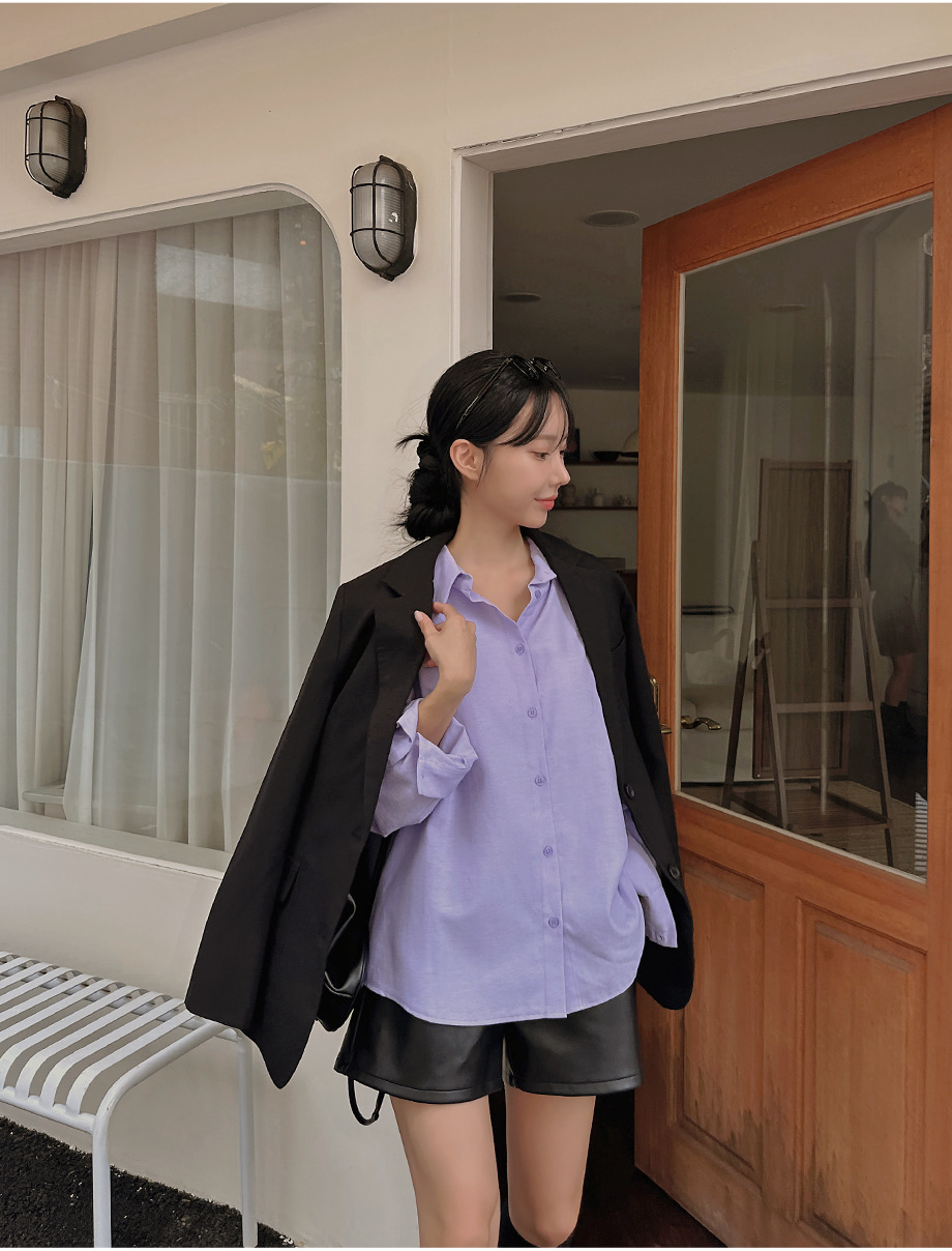 ririnco-에포런 옥스포드 언발 카라 루즈핏 셔츠♡韓國女裝上衣