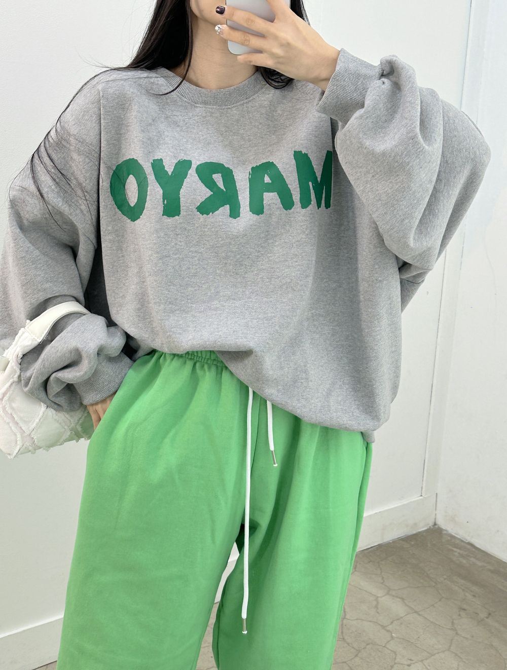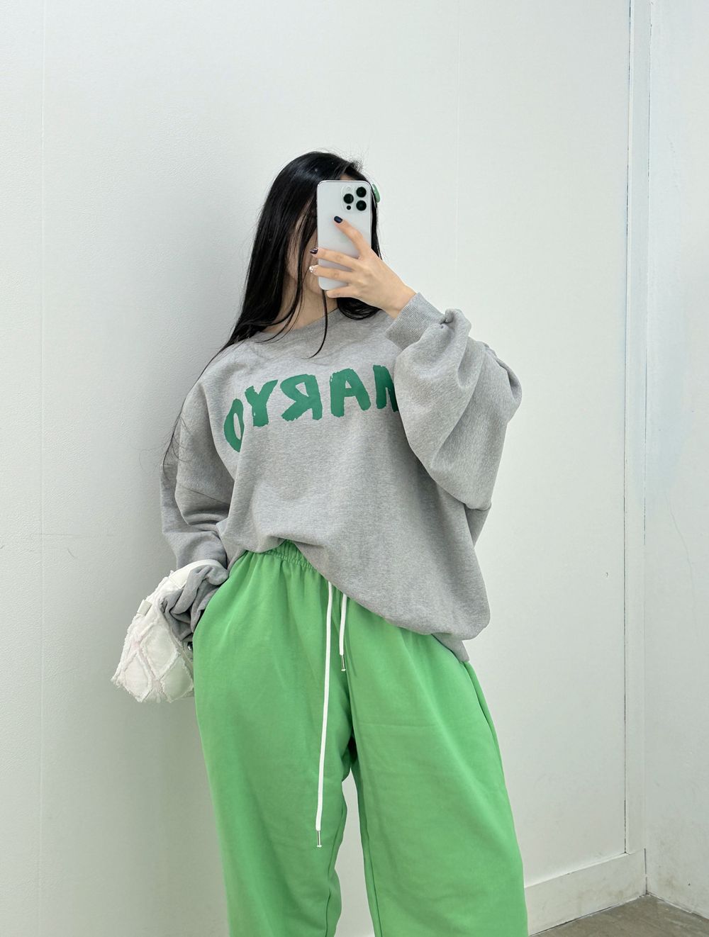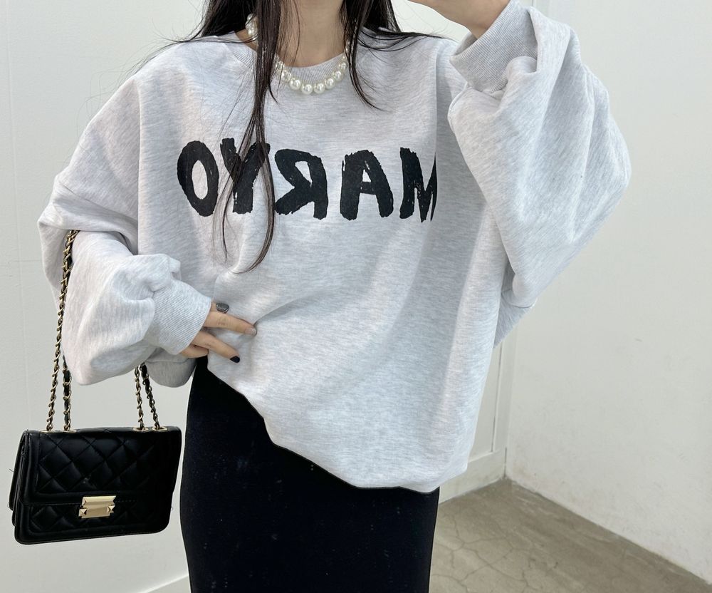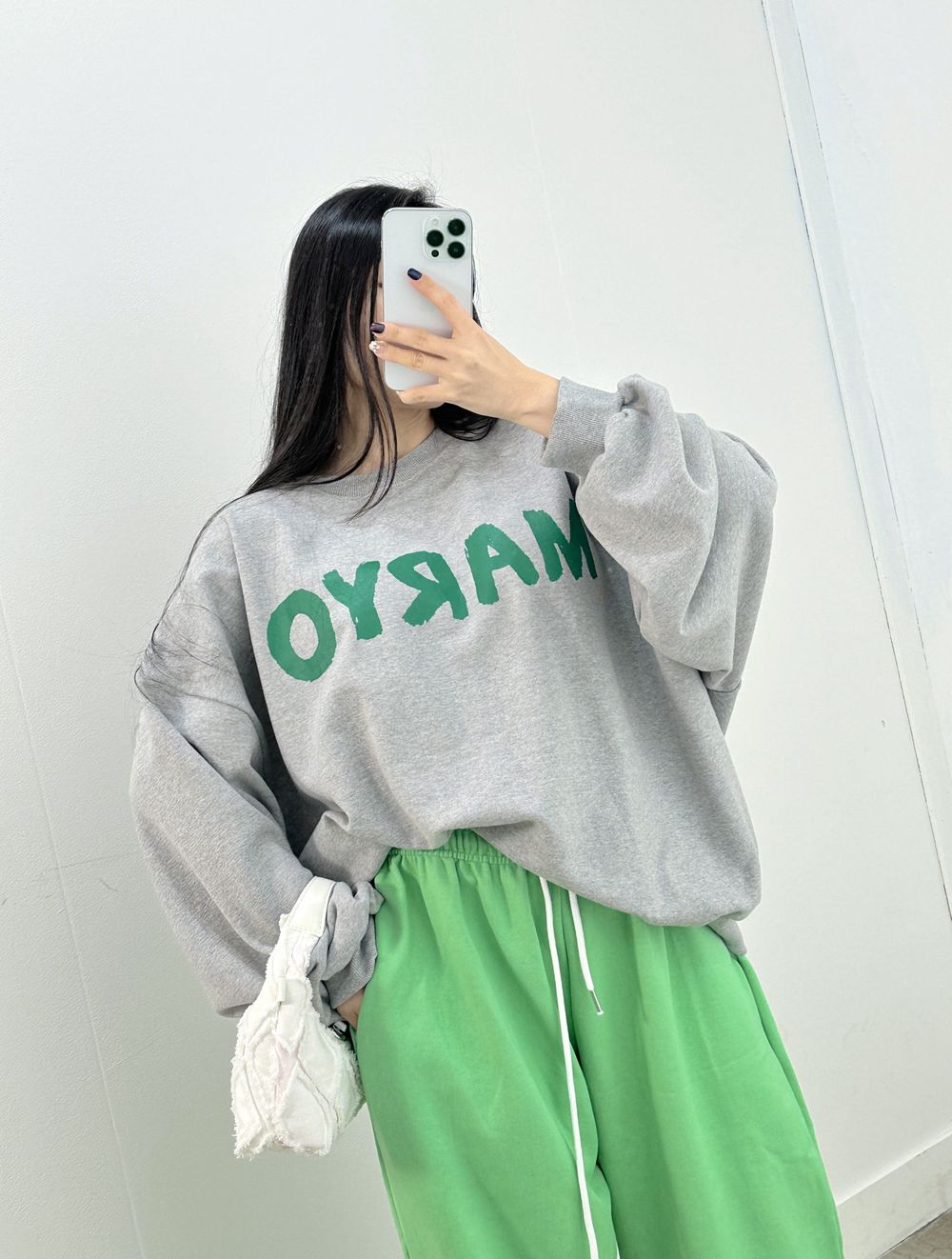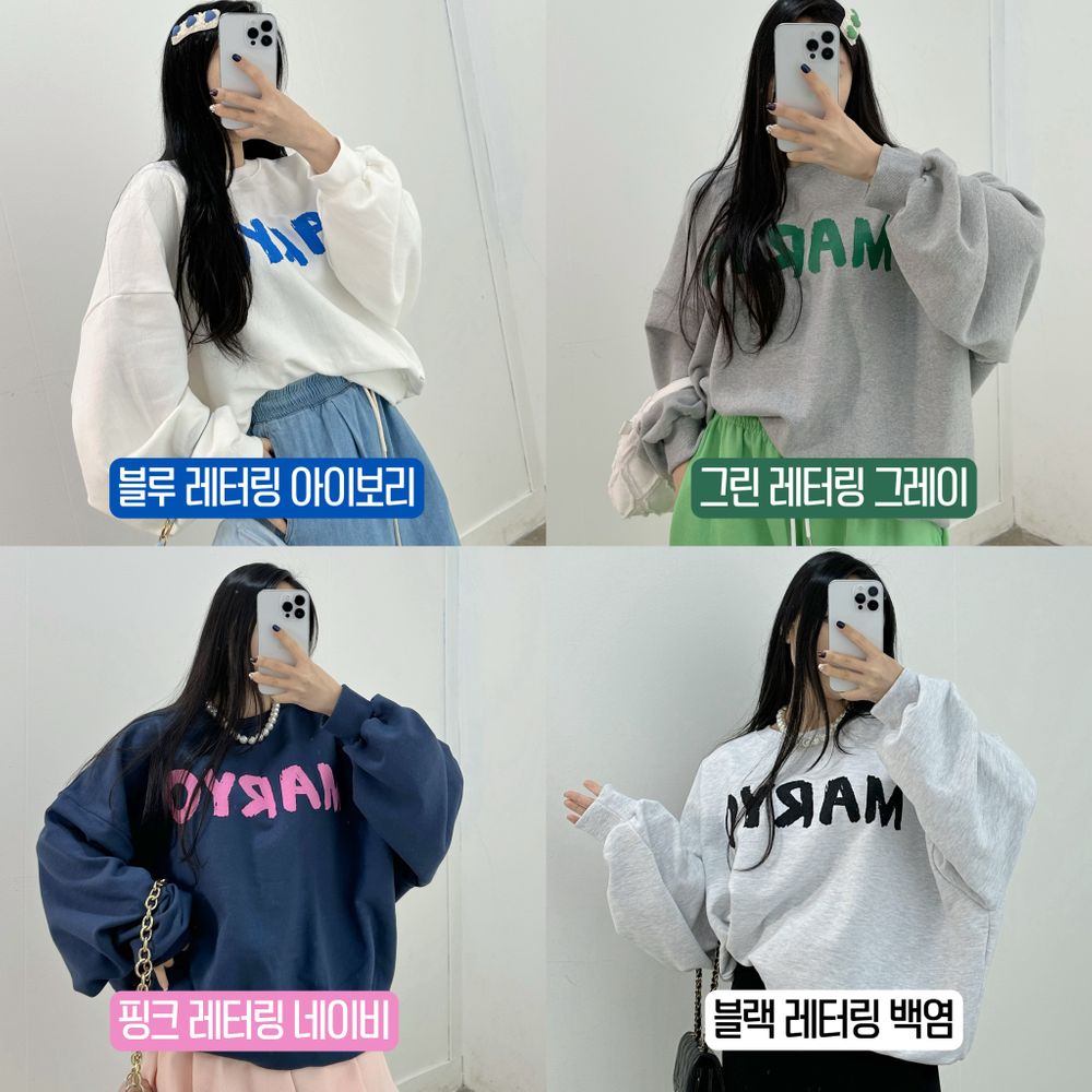 tinymo - 빅사이즈 MA 루즈핏 컬러 레터링 오버핏 쭈리 여성 봄 데일리 맨투맨♡韓國加大碼女裝上衣