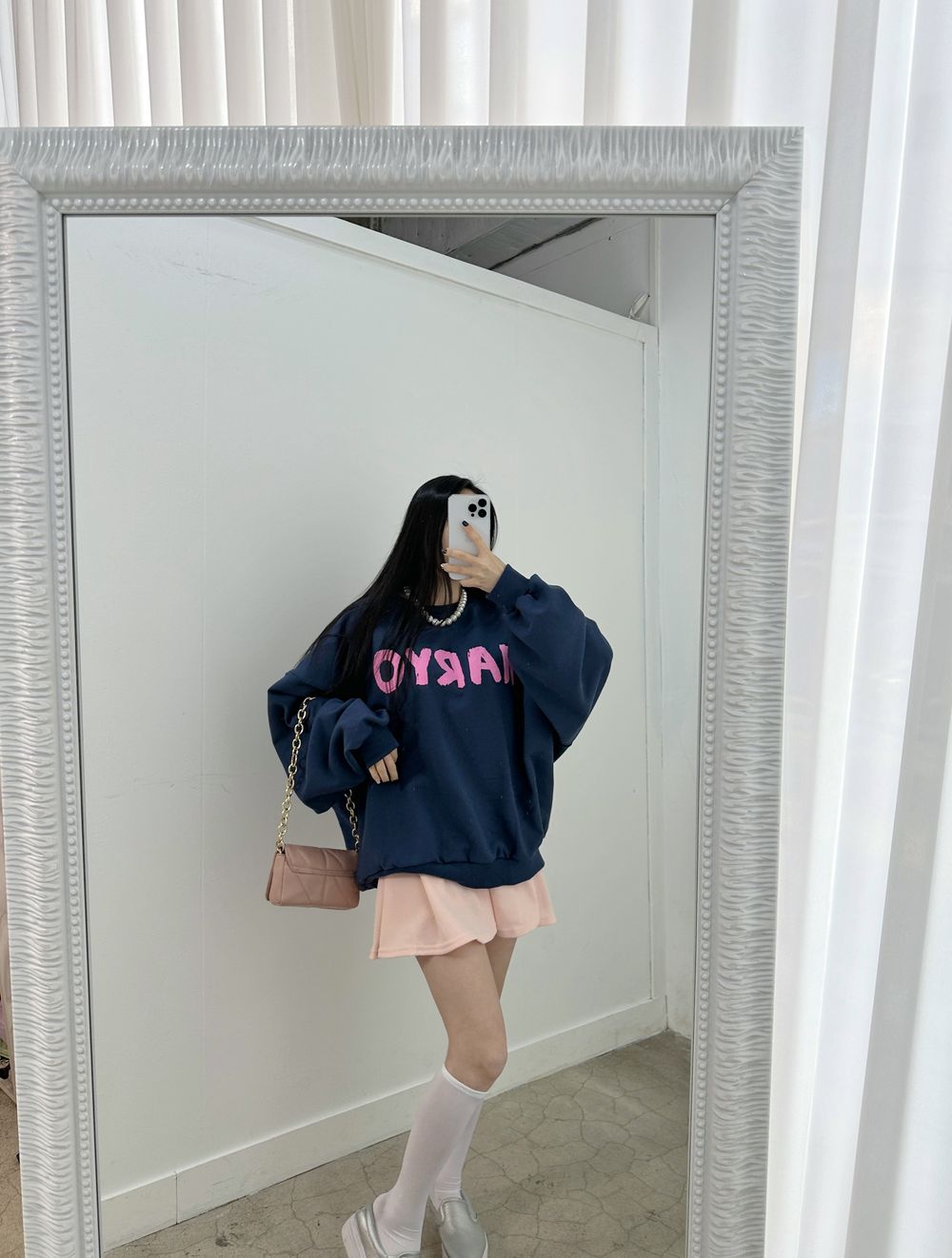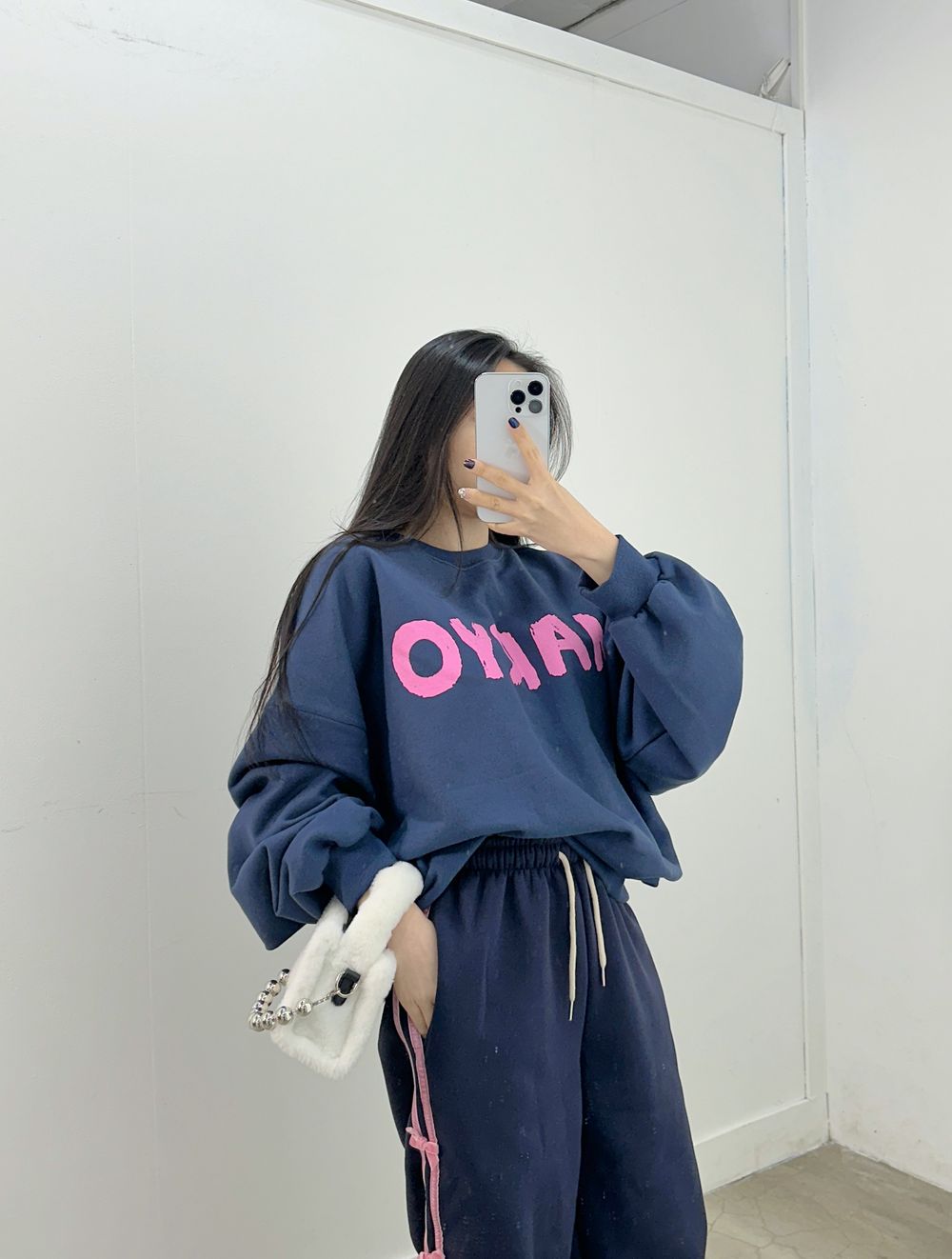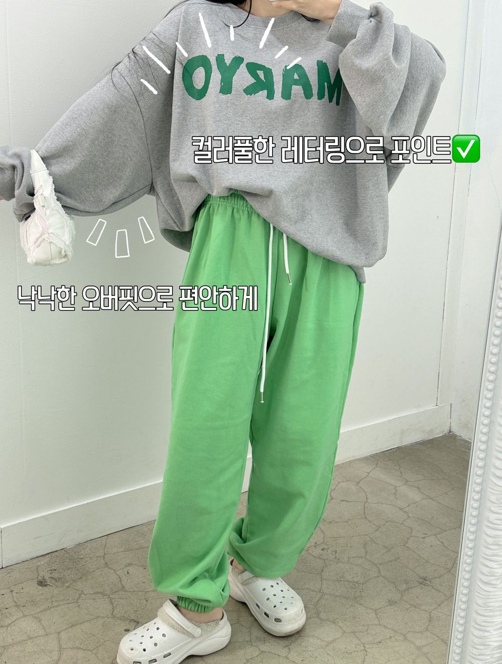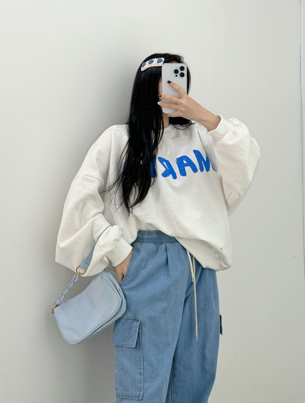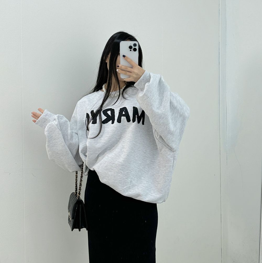 tinymo - 빅사이즈 MA 루즈핏 컬러 레터링 오버핏 쭈리 여성 봄 데일리 맨투맨♡韓國加大碼女裝上衣