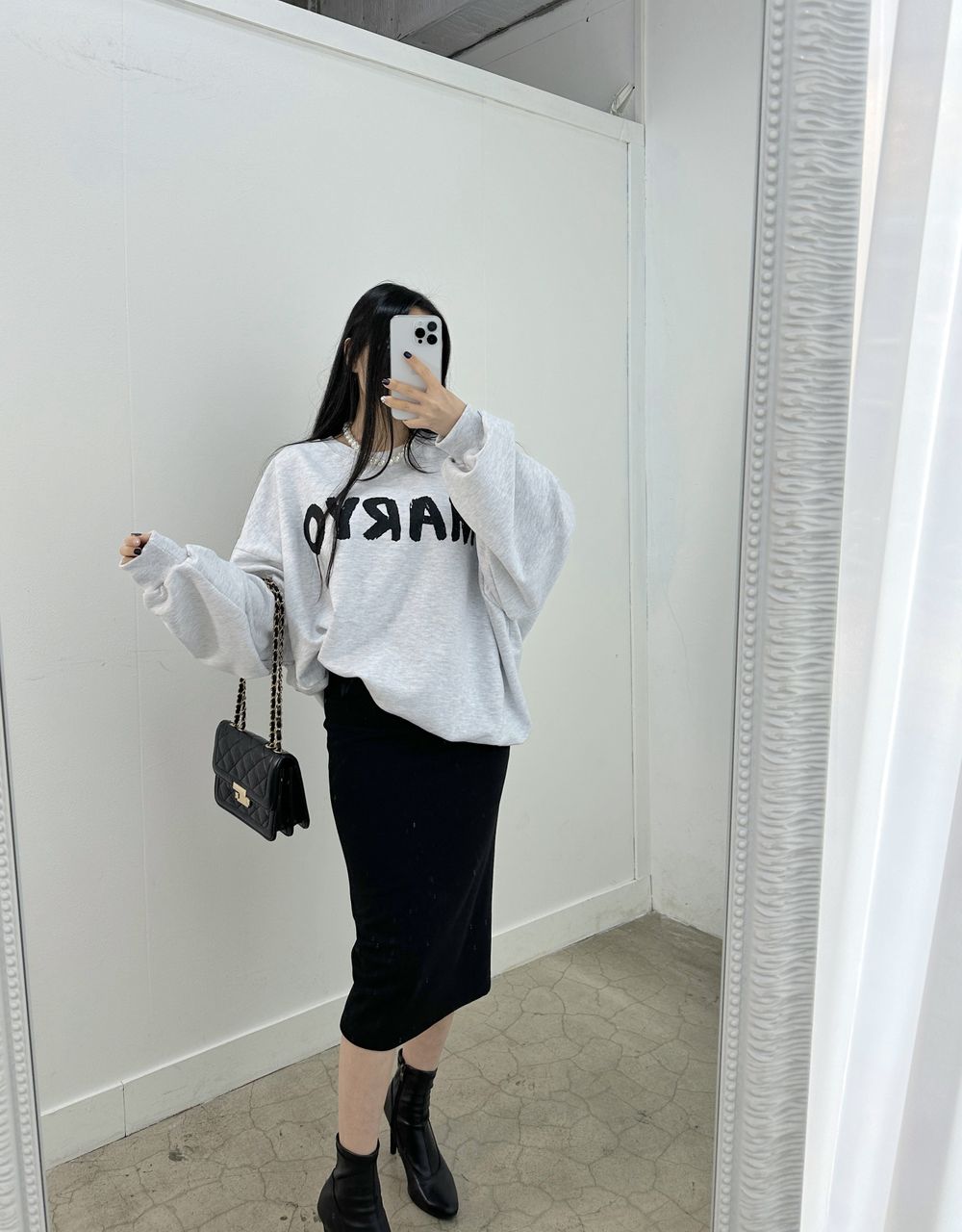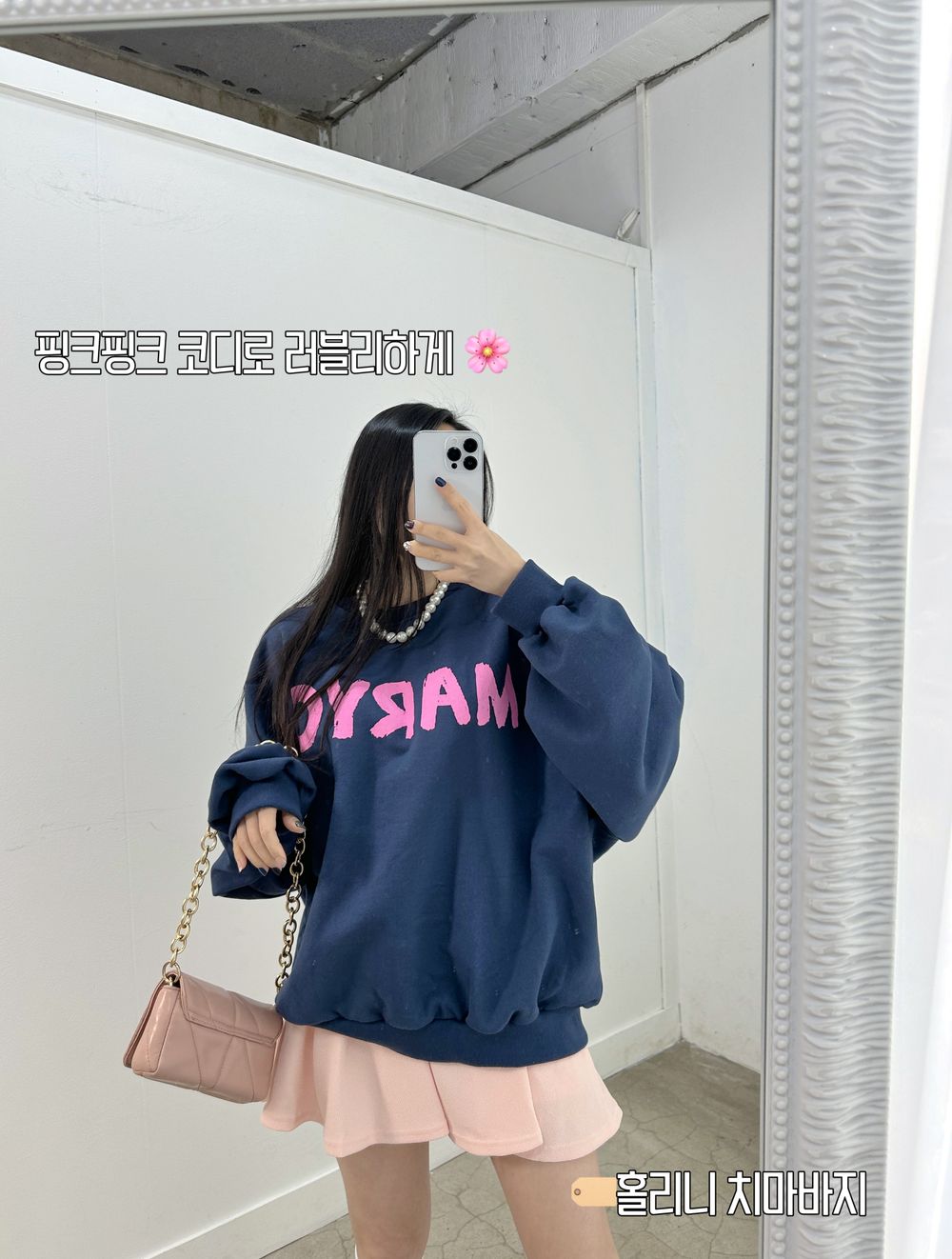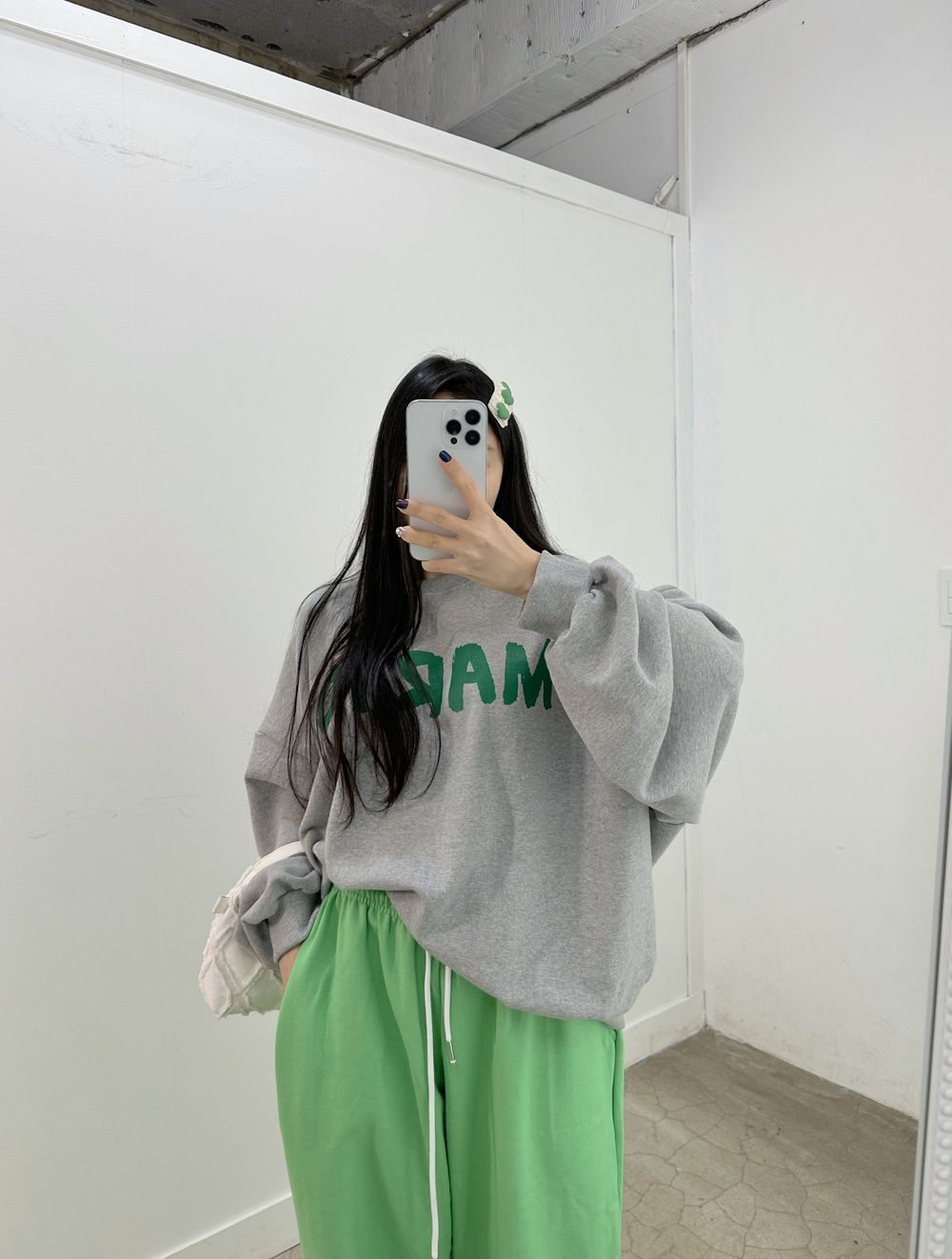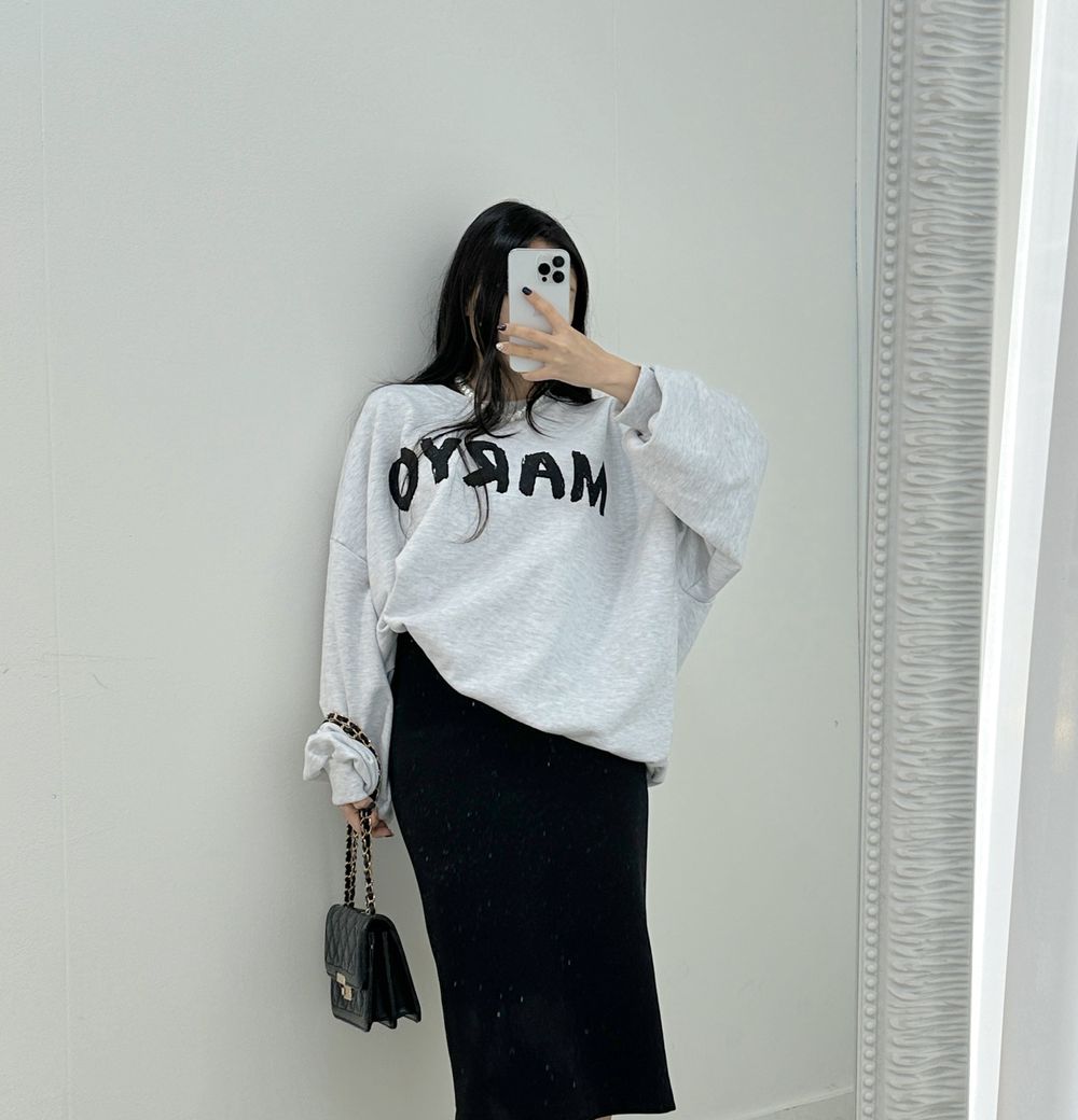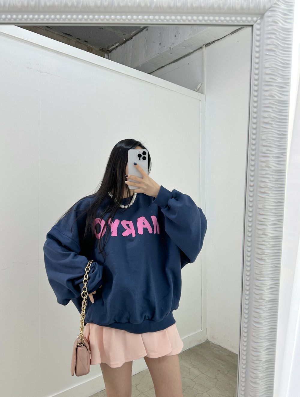 tinymo - 빅사이즈 MA 루즈핏 컬러 레터링 오버핏 쭈리 여성 봄 데일리 맨투맨♡韓國加大碼女裝上衣