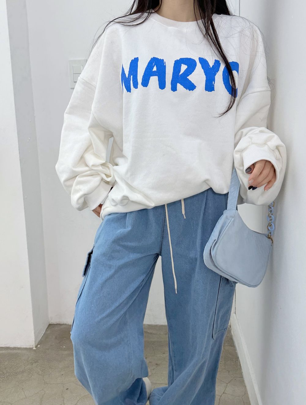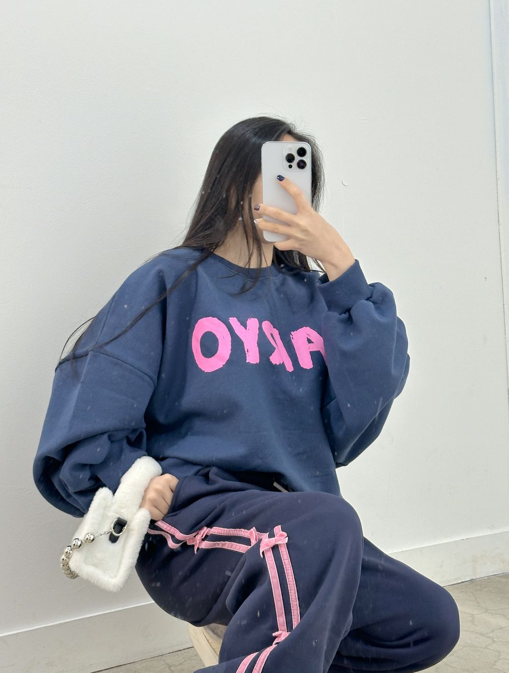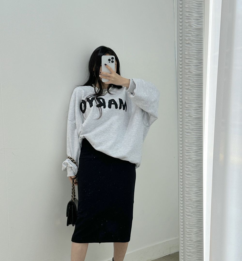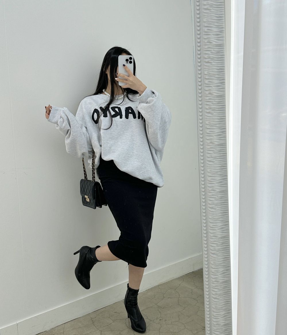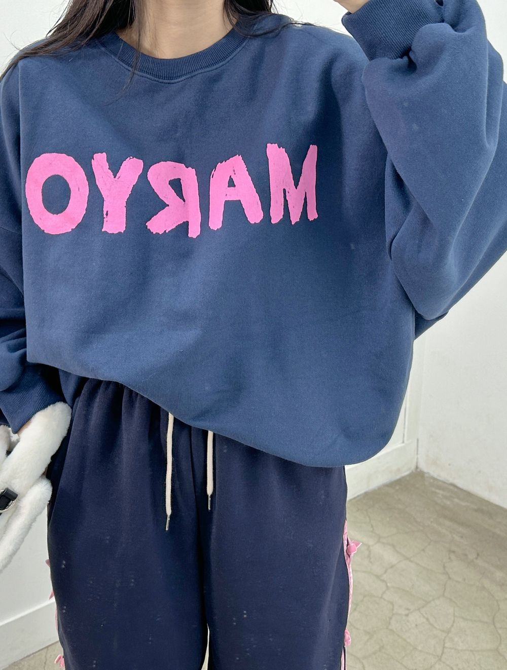 tinymo - 빅사이즈 MA 루즈핏 컬러 레터링 오버핏 쭈리 여성 봄 데일리 맨투맨♡韓國加大碼女裝上衣