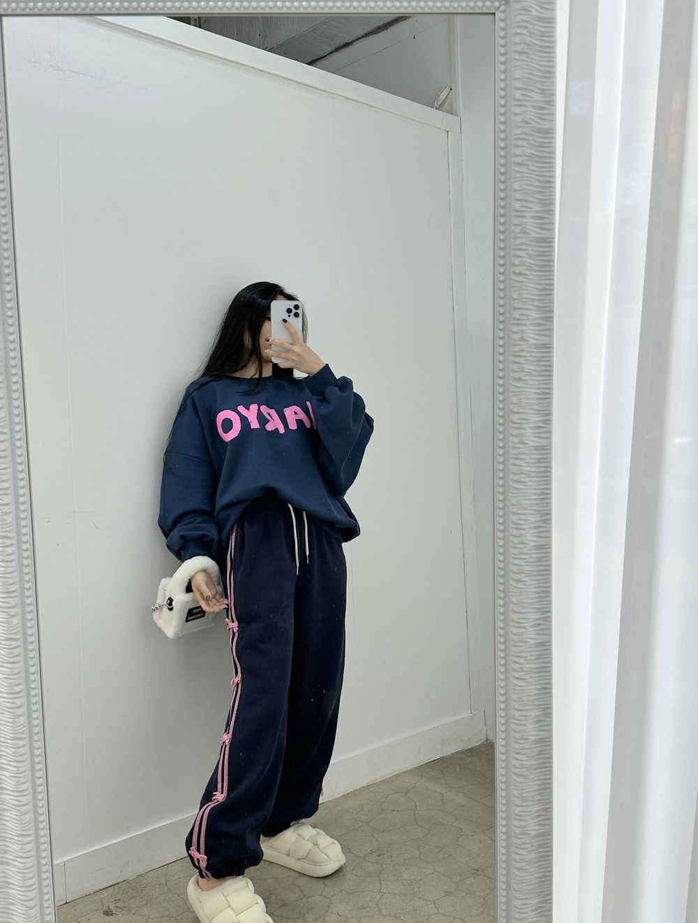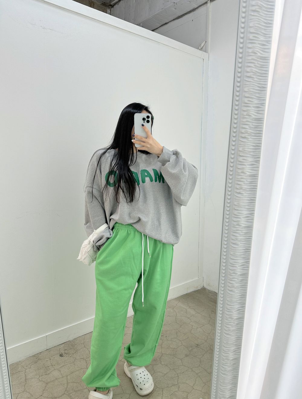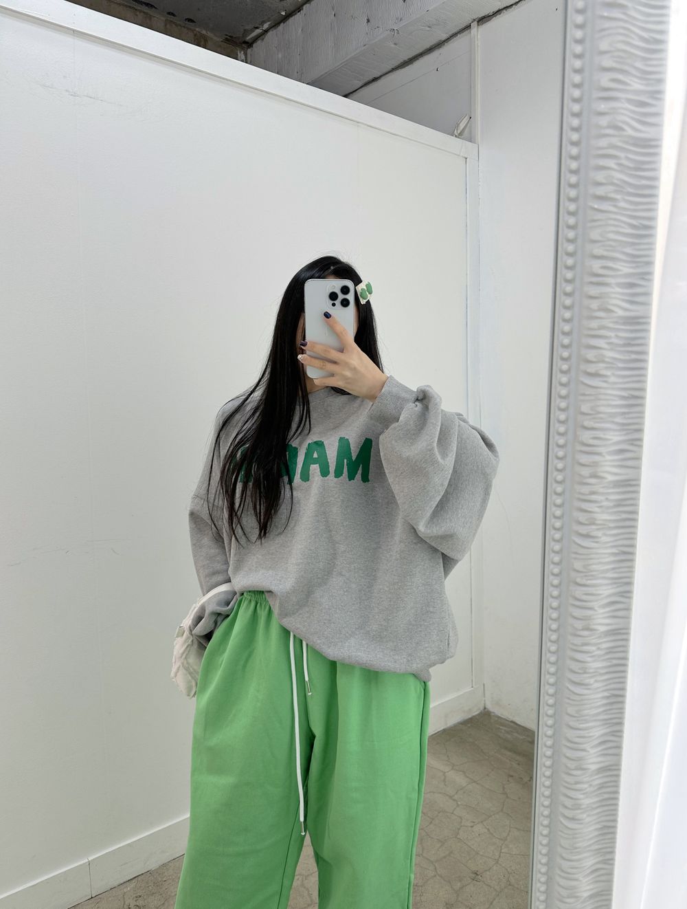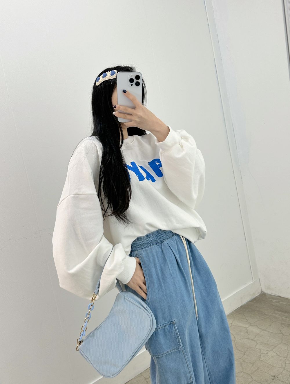 tinymo - 빅사이즈 MA 루즈핏 컬러 레터링 오버핏 쭈리 여성 봄 데일리 맨투맨♡韓國加大碼女裝上衣