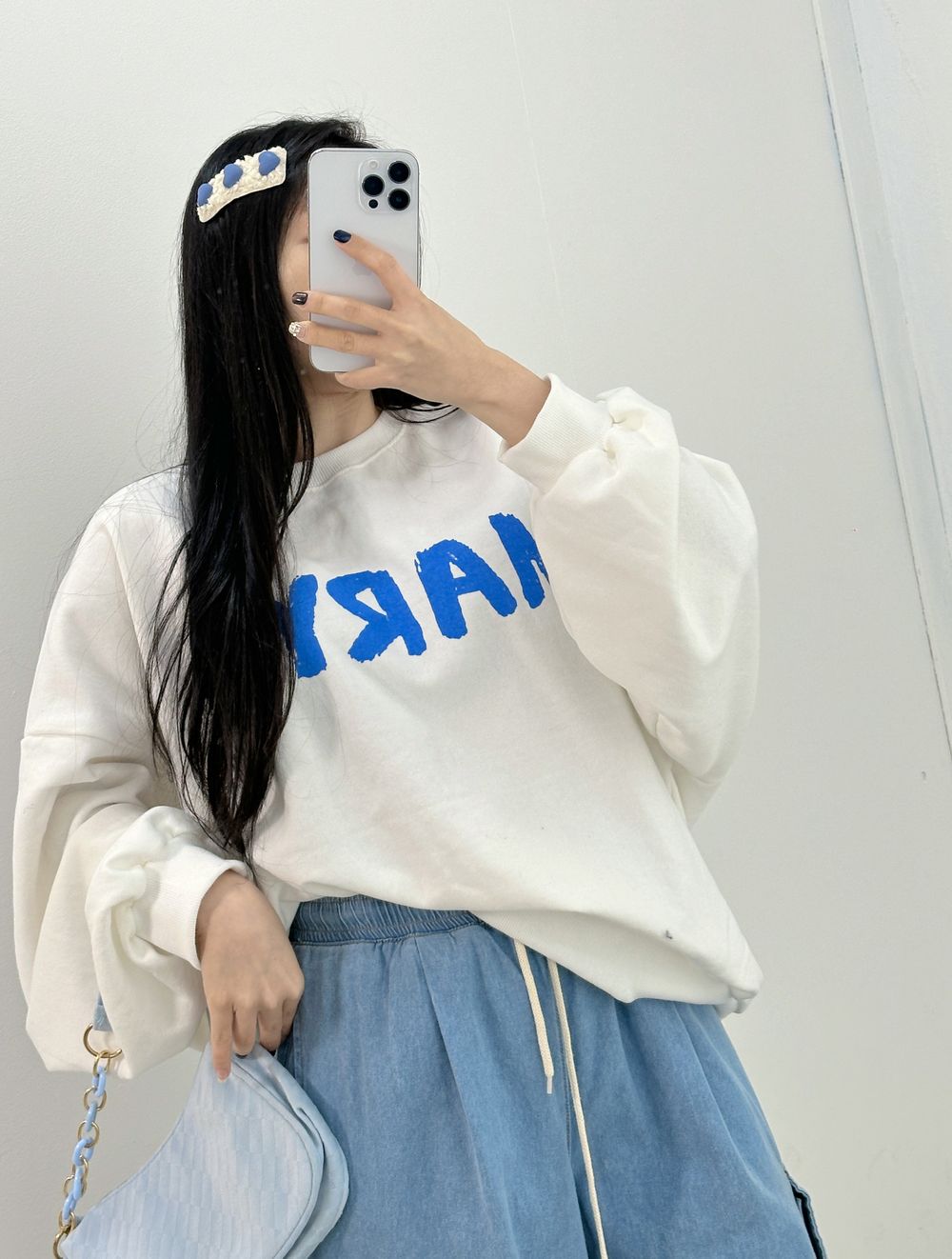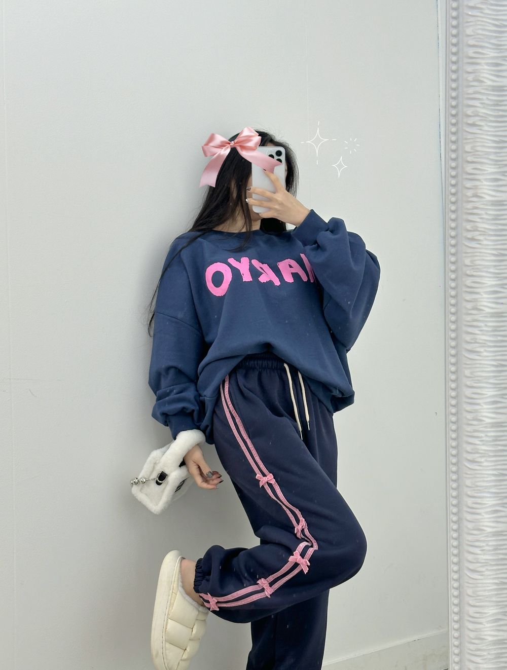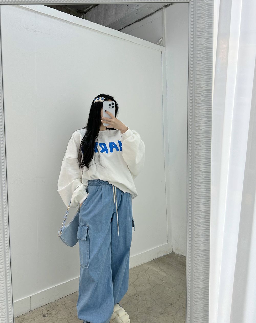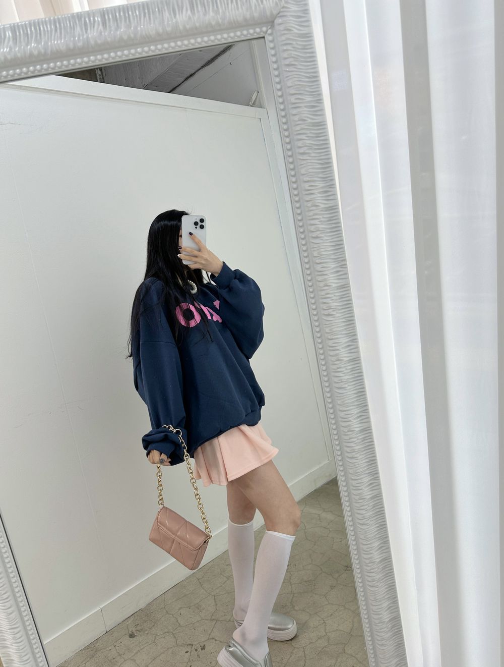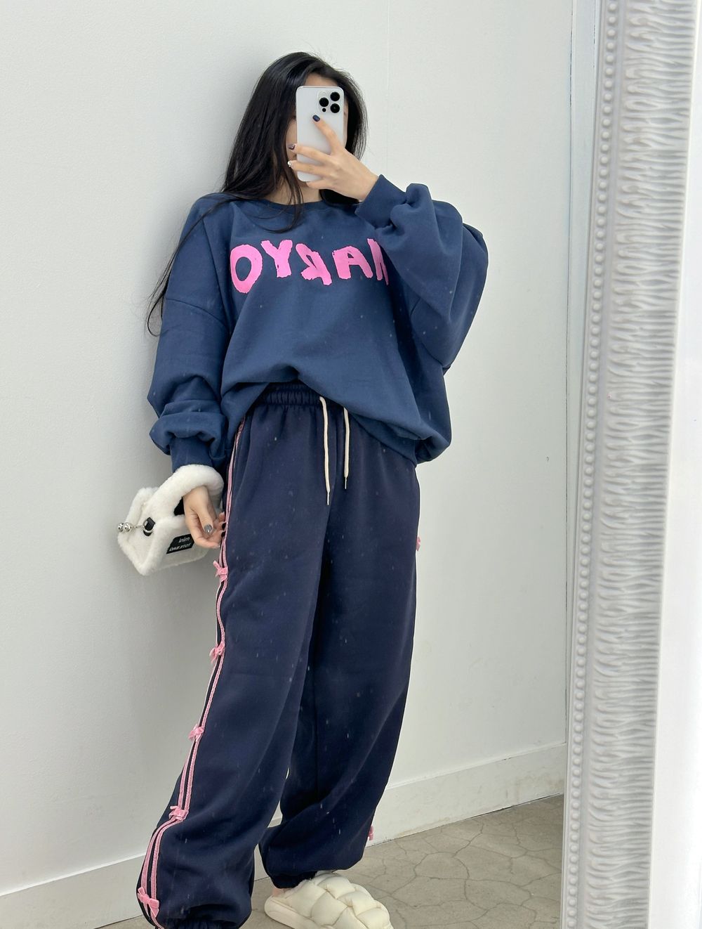 tinymo - 빅사이즈 MA 루즈핏 컬러 레터링 오버핏 쭈리 여성 봄 데일리 맨투맨♡韓國加大碼女裝上衣