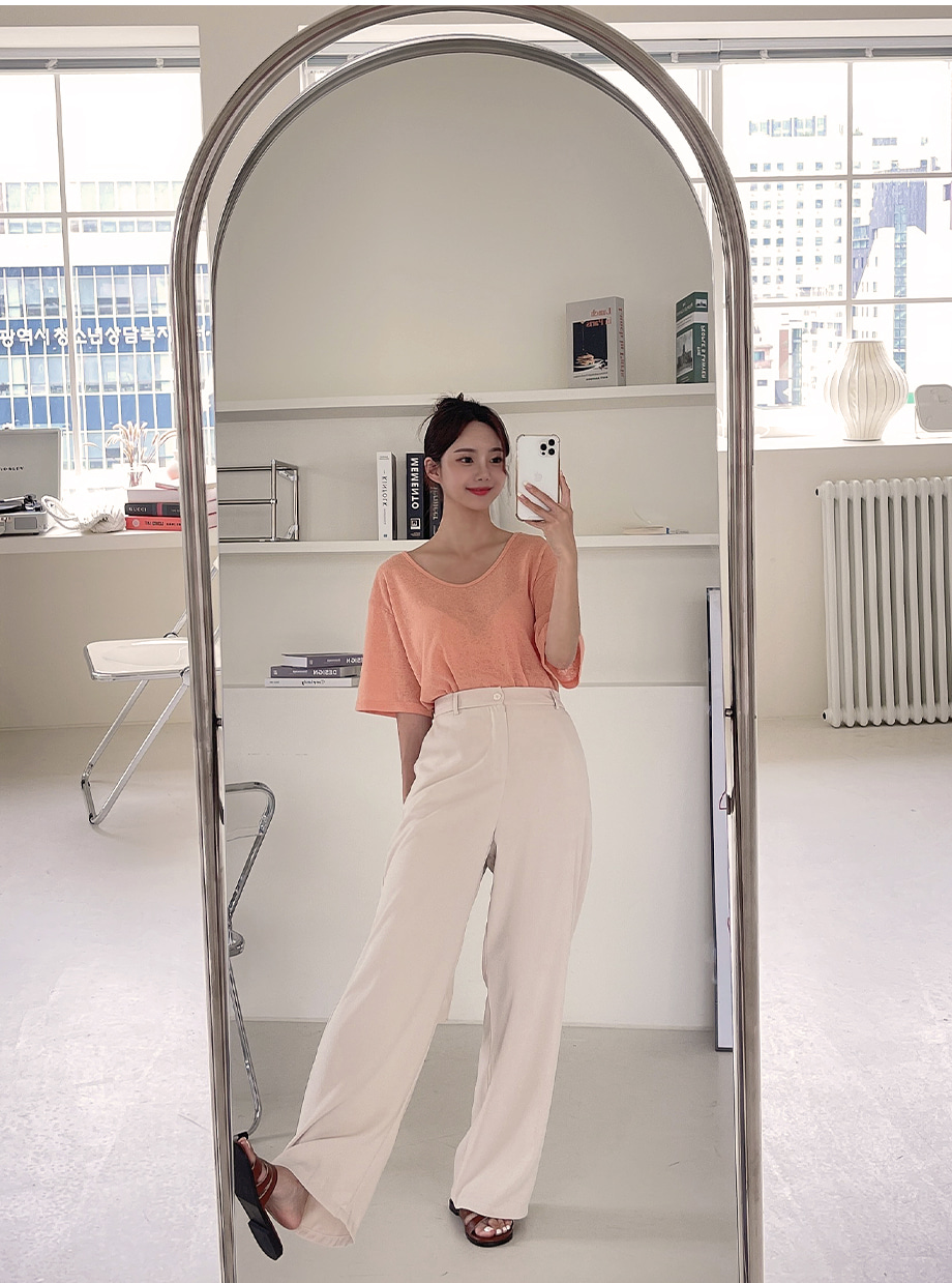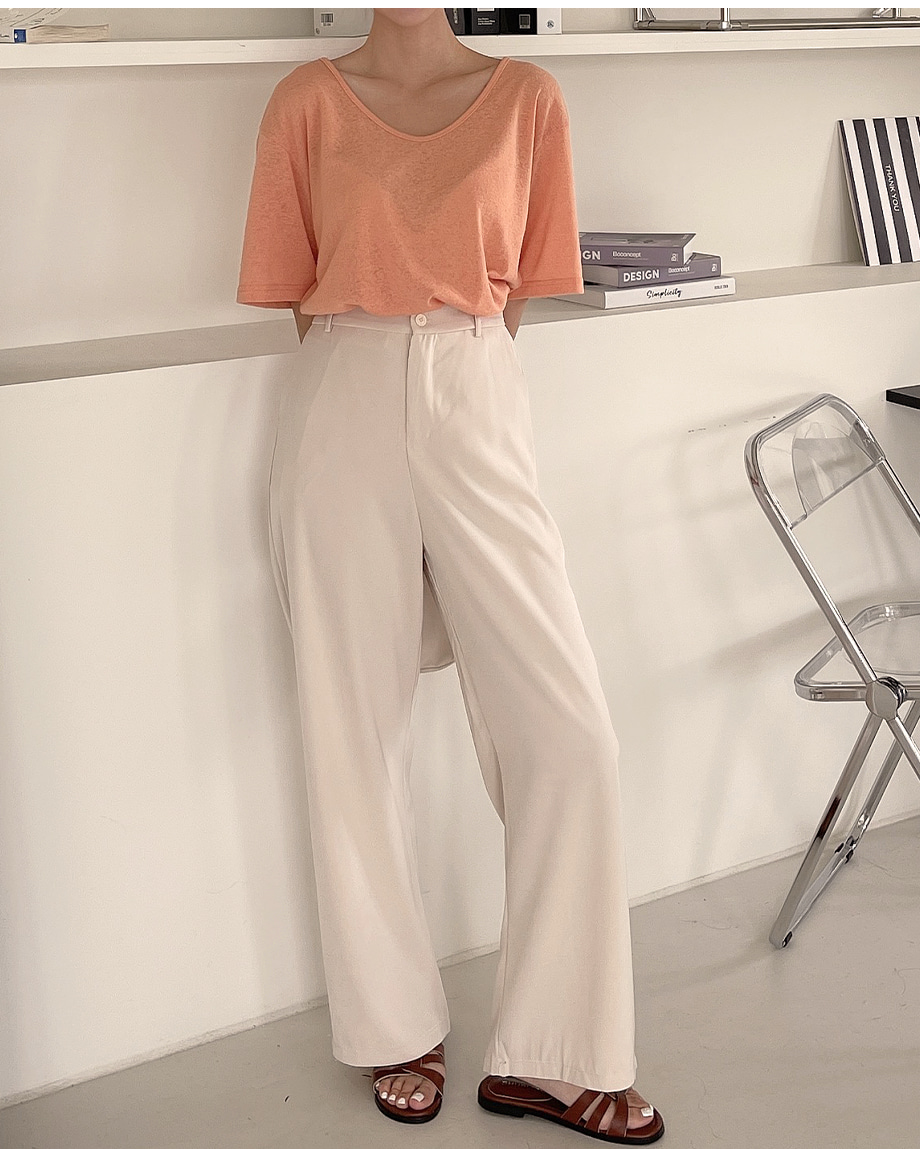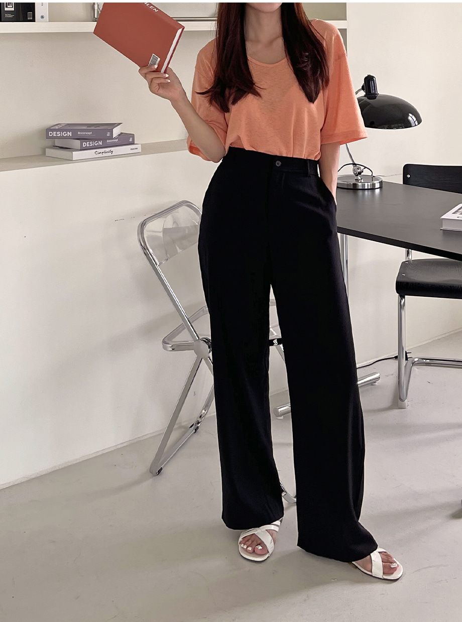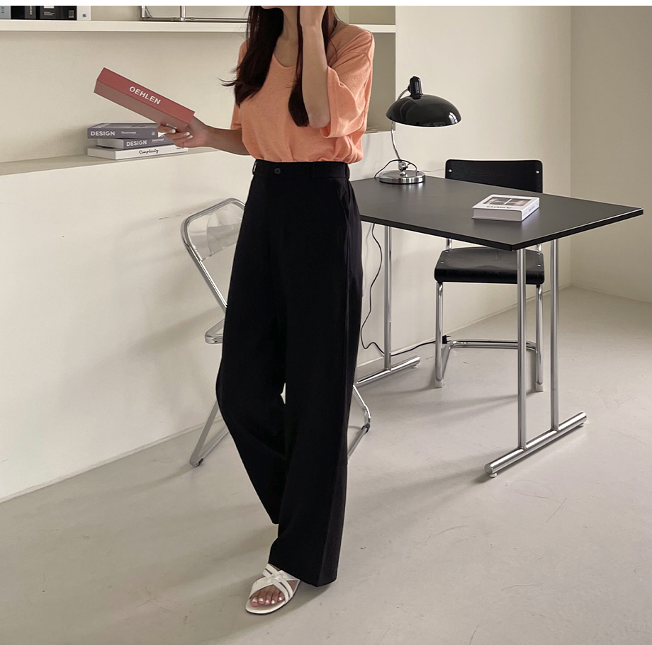 ririnco - [숏/기본/롱] 로스빈 뒷밴딩 와이드 슬랙스 팬츠♡韓國女裝褲