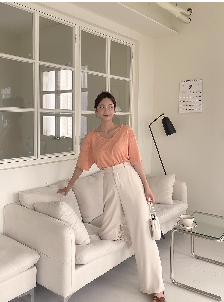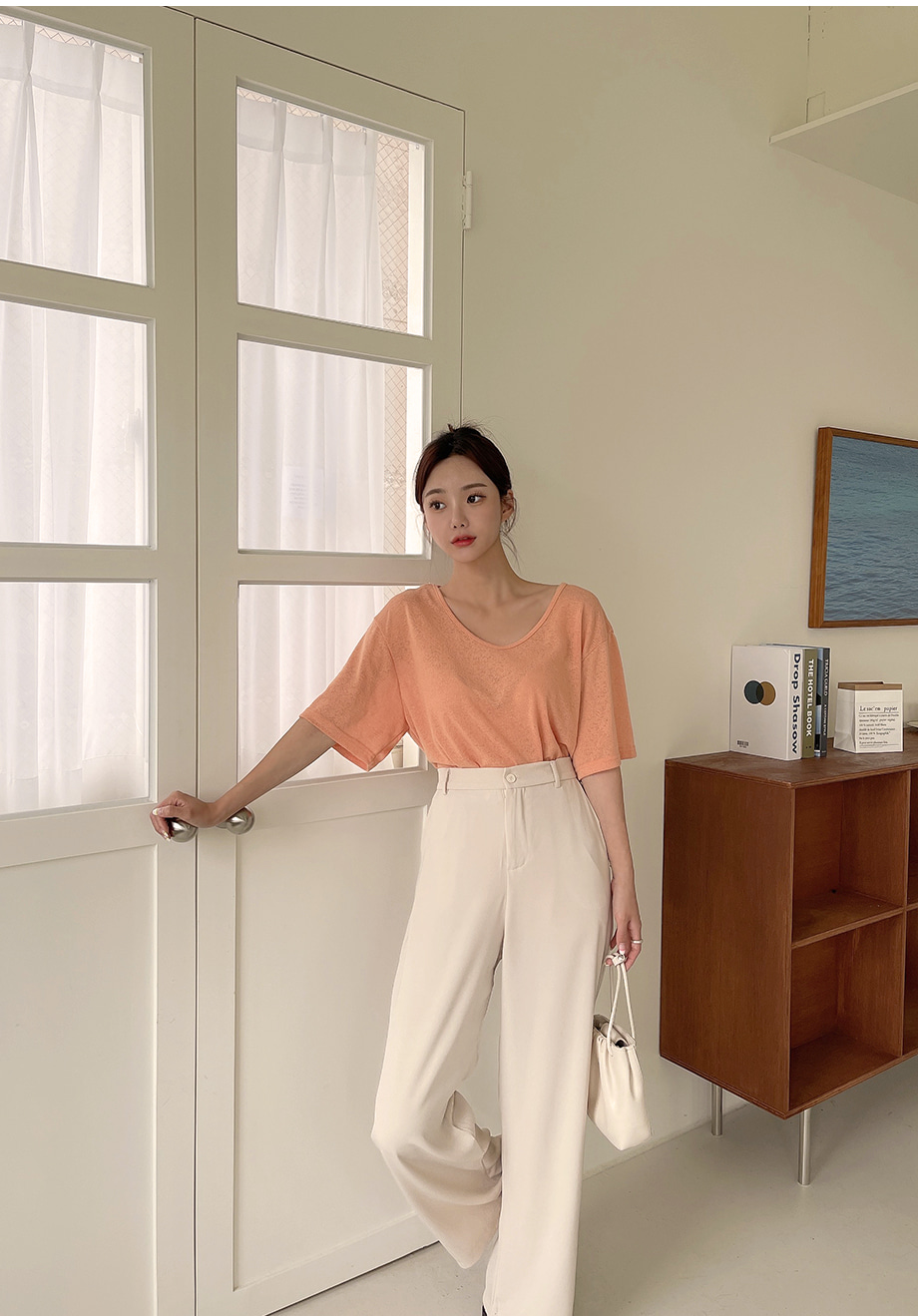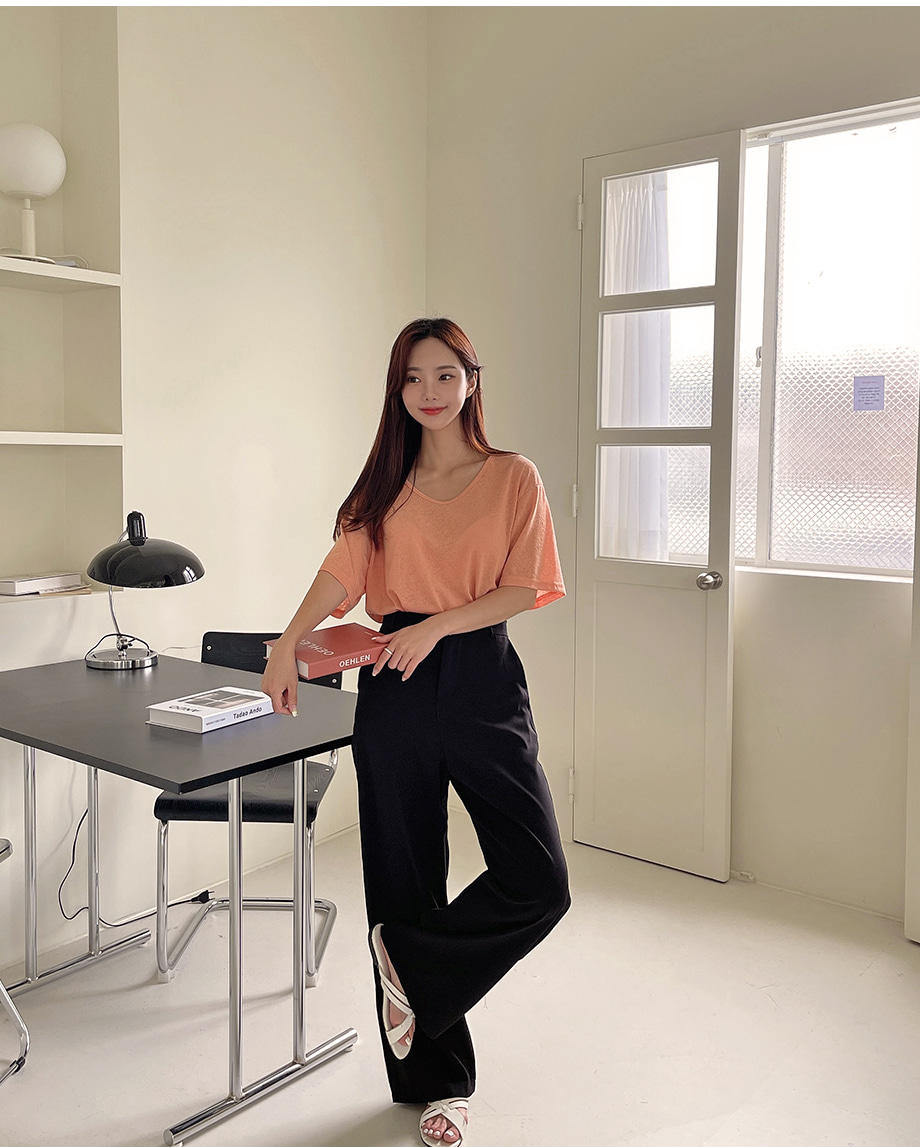 ririnco - [숏/기본/롱] 로스빈 뒷밴딩 와이드 슬랙스 팬츠♡韓國女裝褲