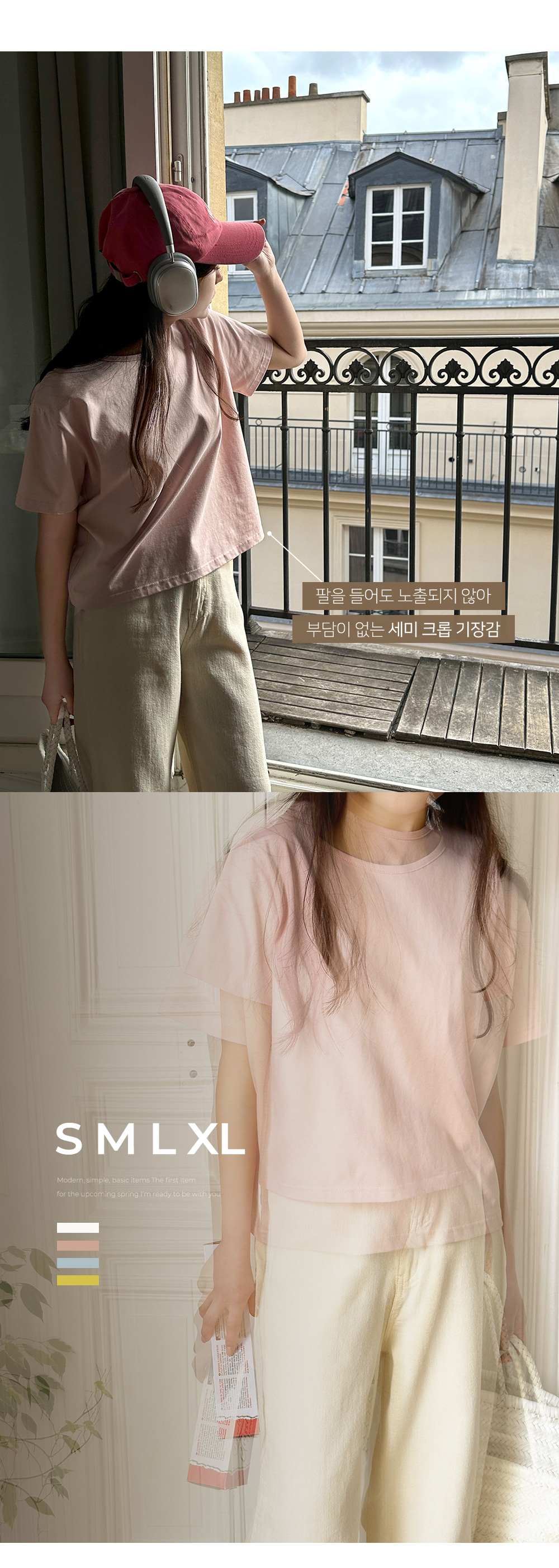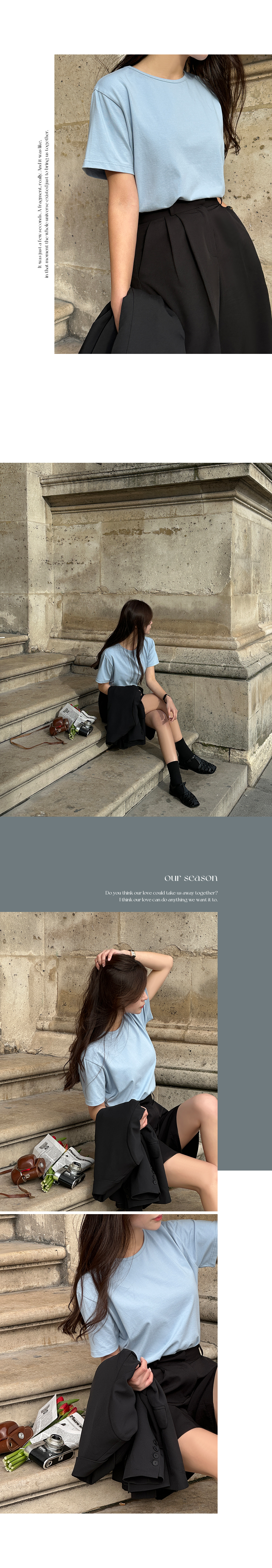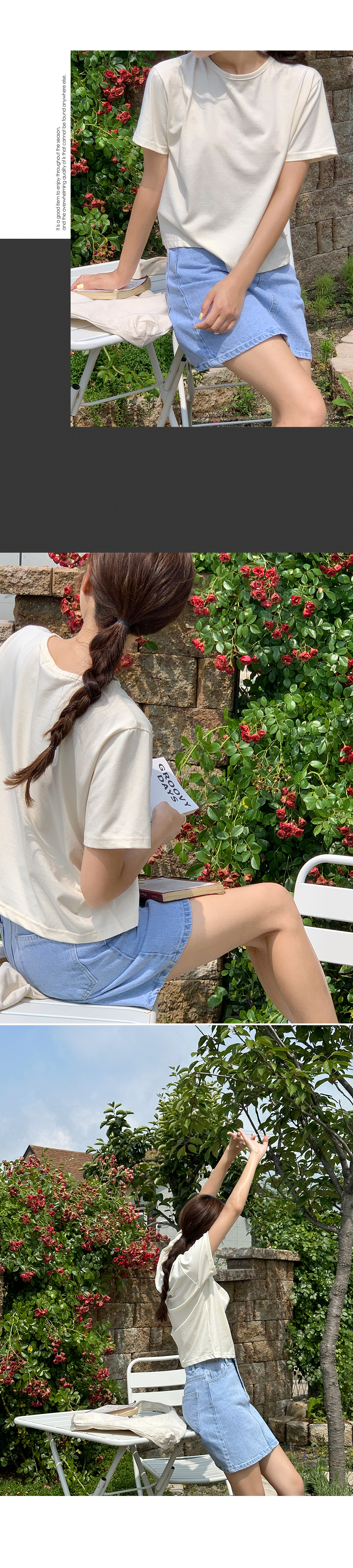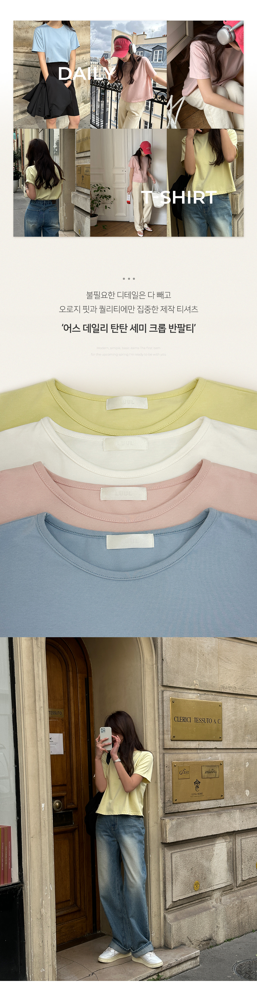 k-club - [자체제작/5,000장돌파!]#봄어스 데일리 탄탄 세미크롭 반팔 티♡韓國女裝上衣