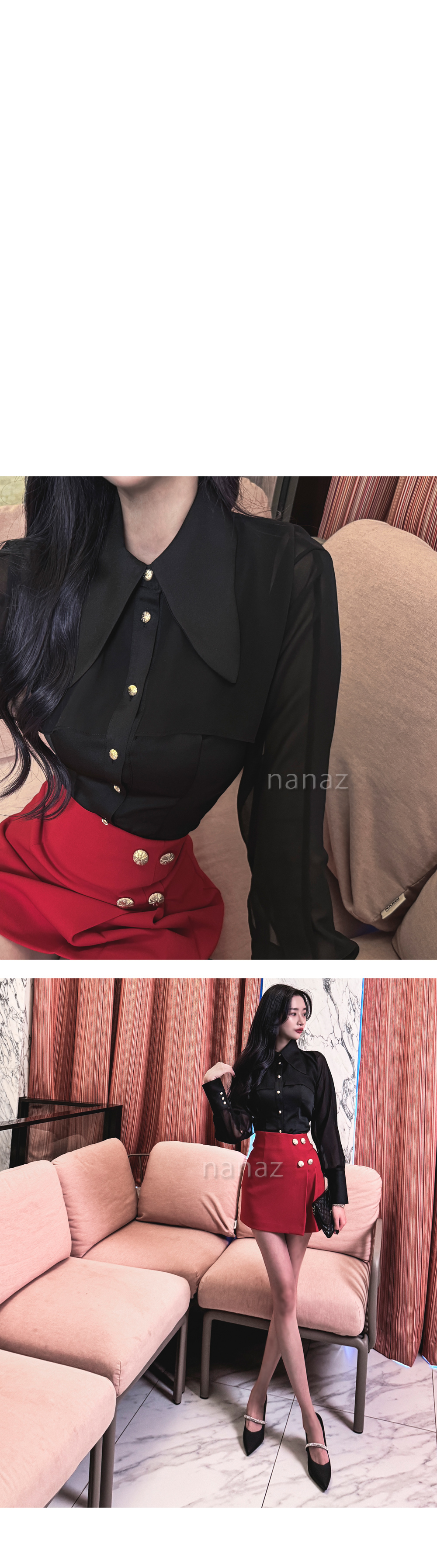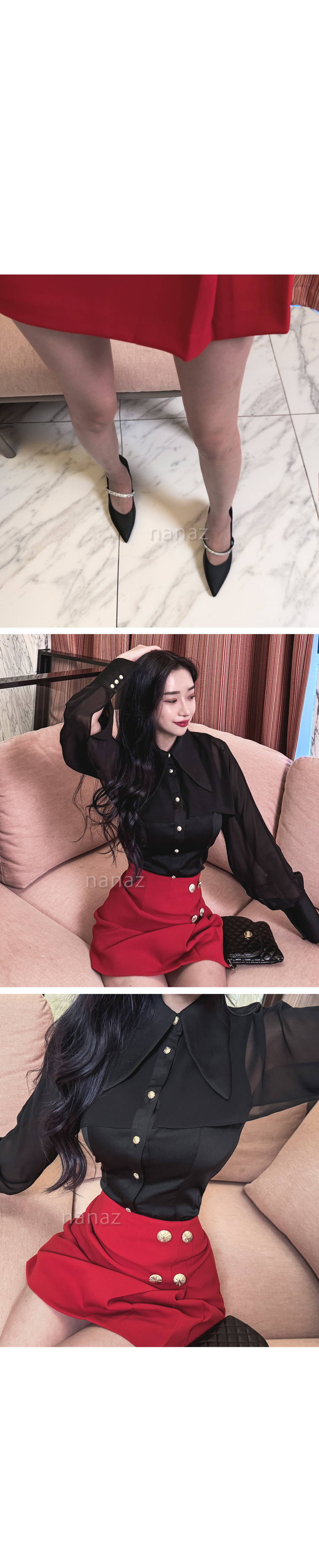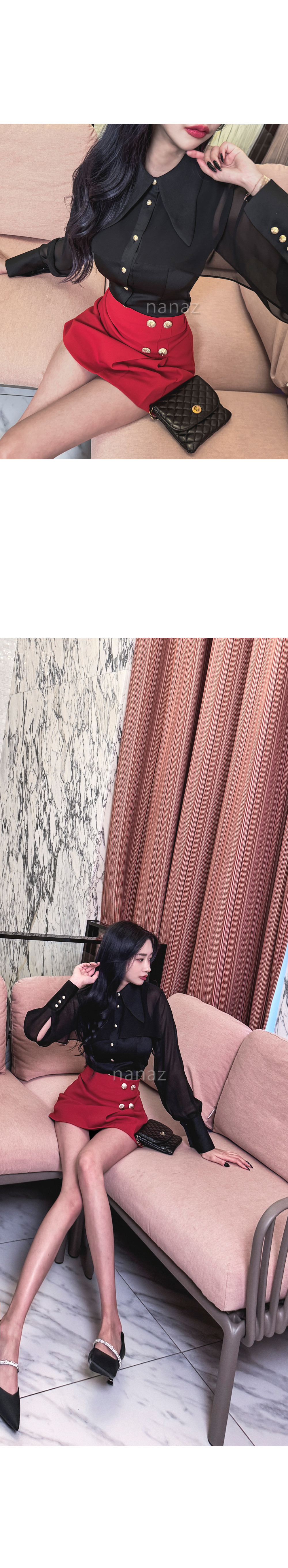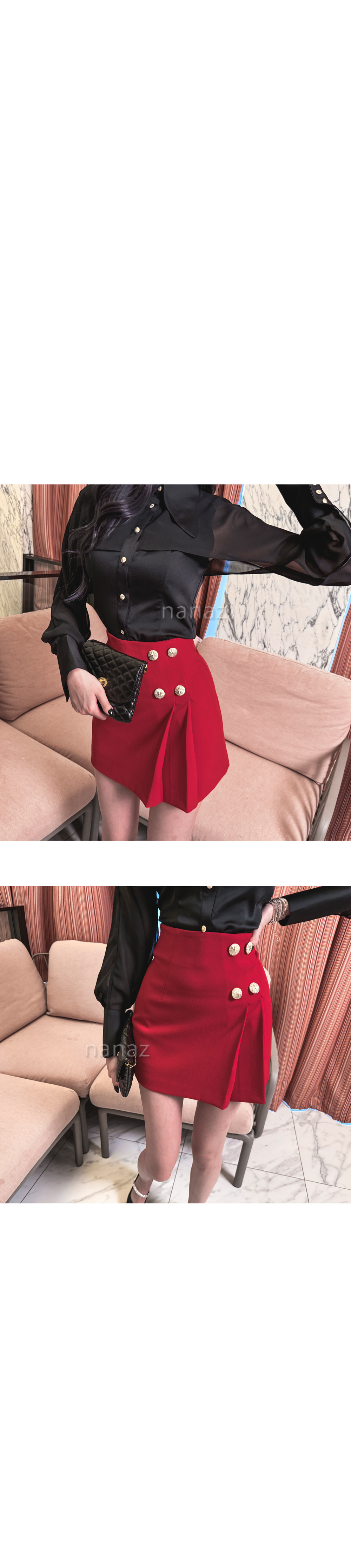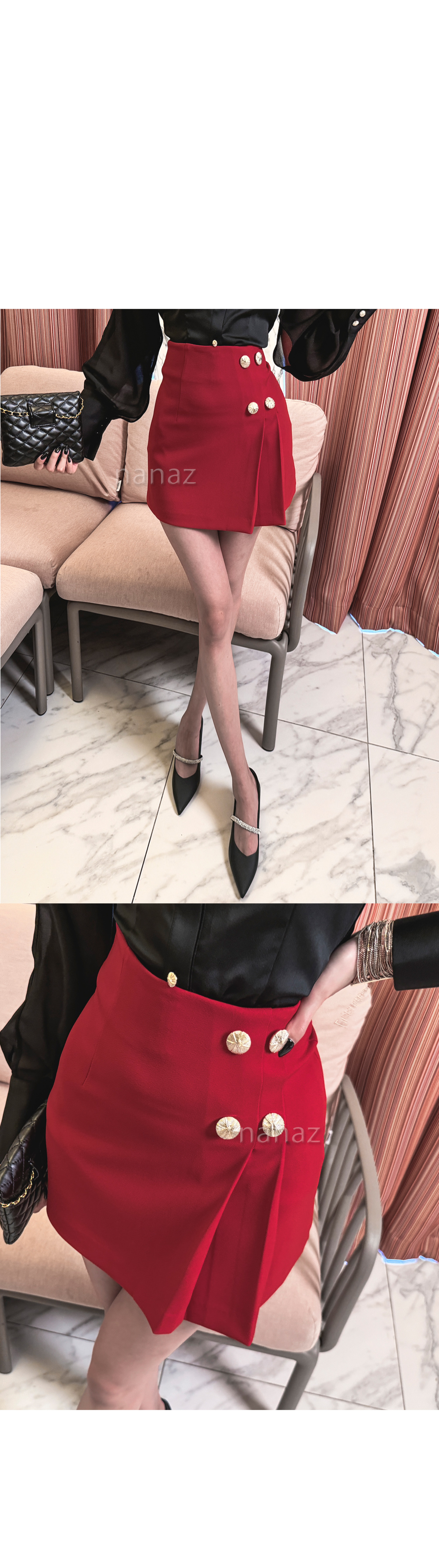 jungmadam - [17616] 더블 버튼 옆주름 스커트♡韓國女裝裙