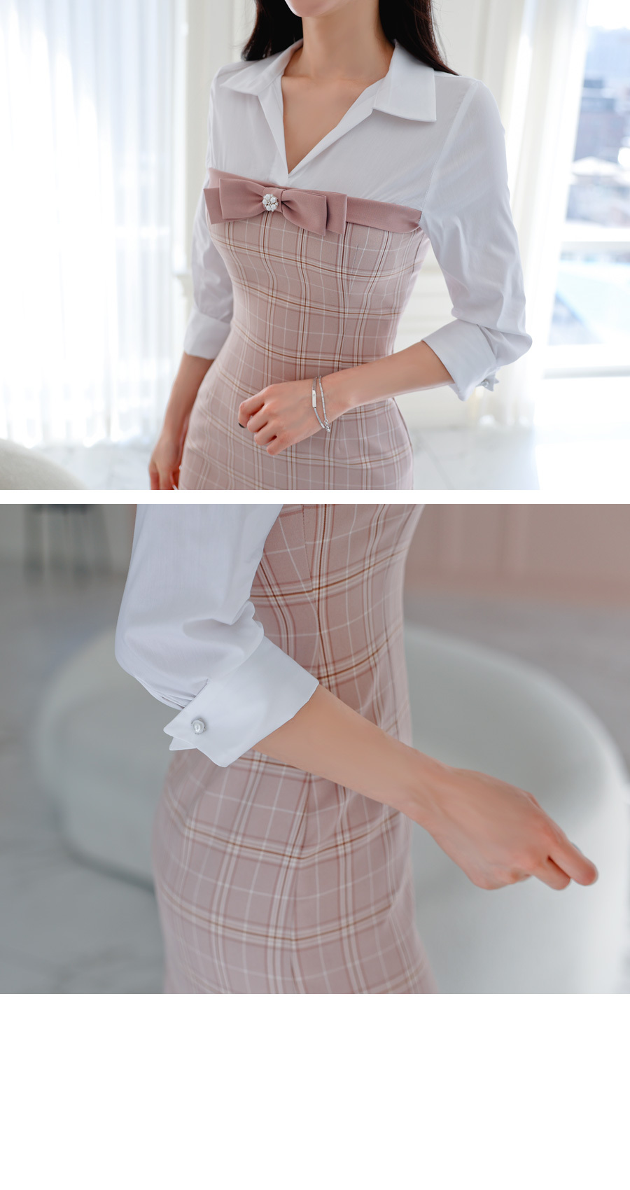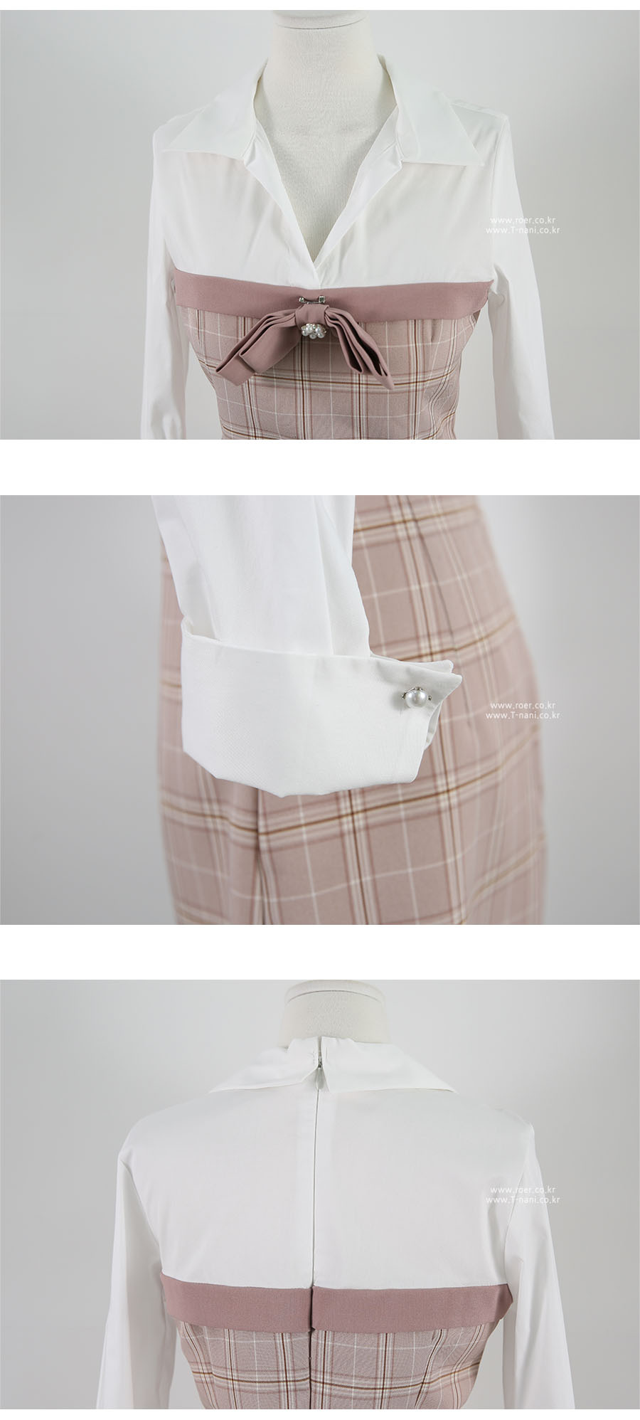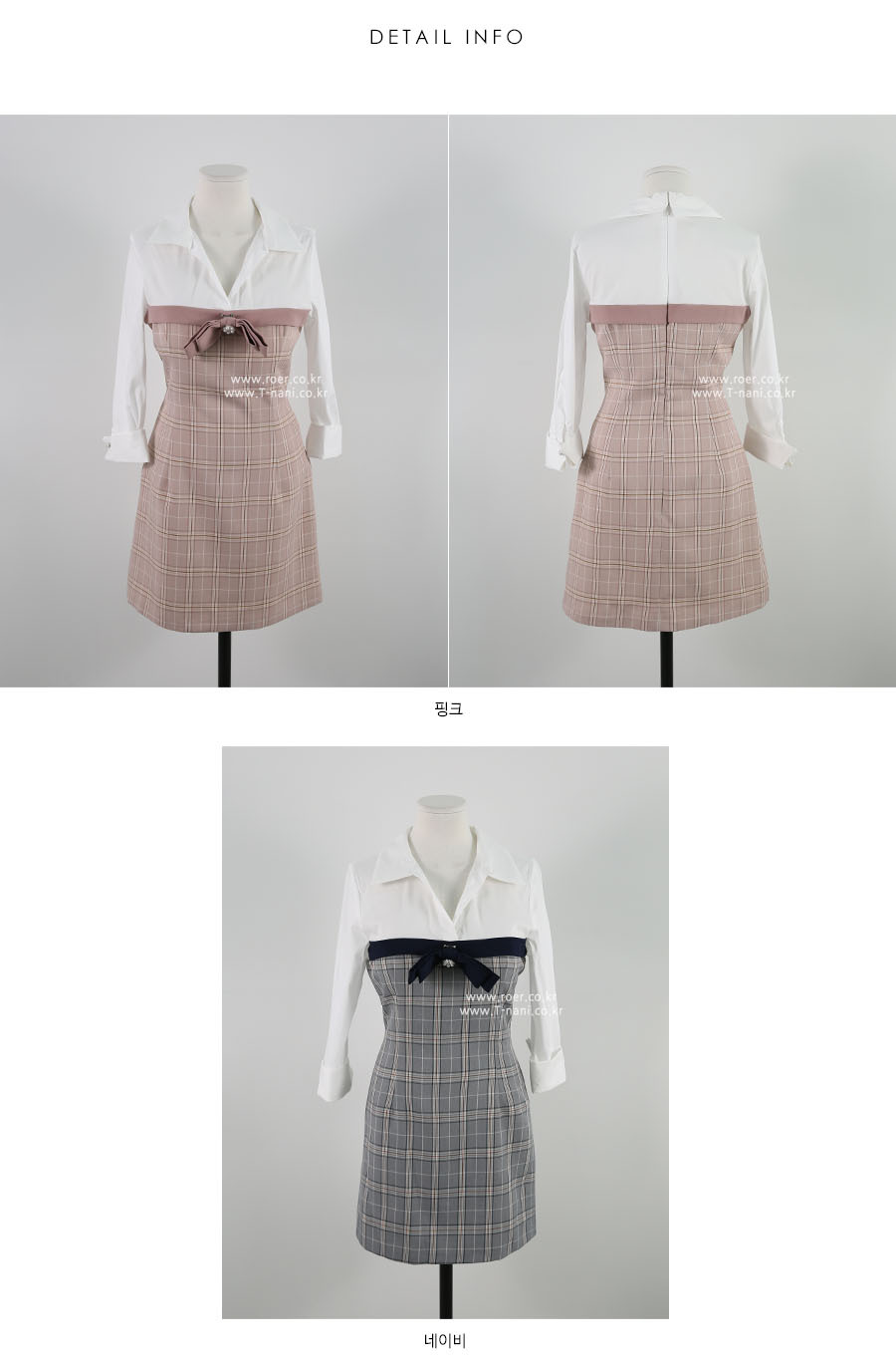 roer - Roer [거베라 체크 원피스 *브로치세트*]♡韓國女裝連身裙
