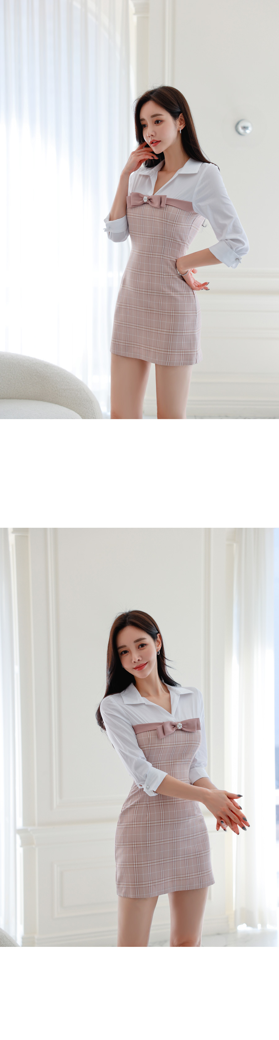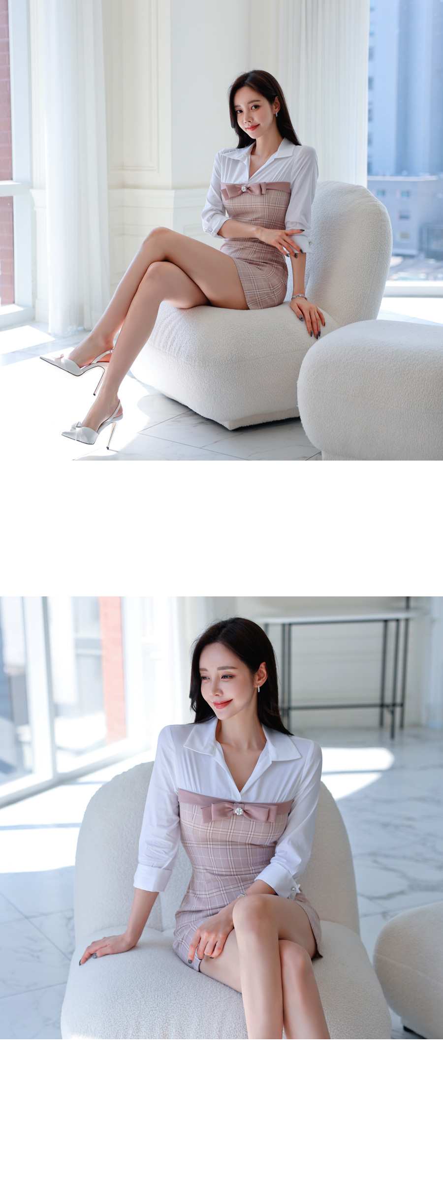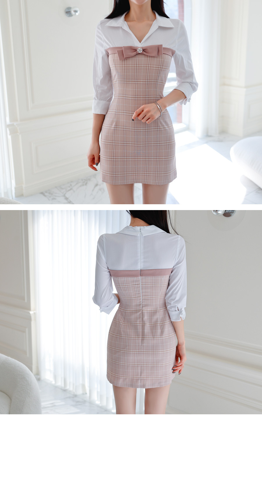 roer - Roer [거베라 체크 원피스 *브로치세트*]♡韓國女裝連身裙