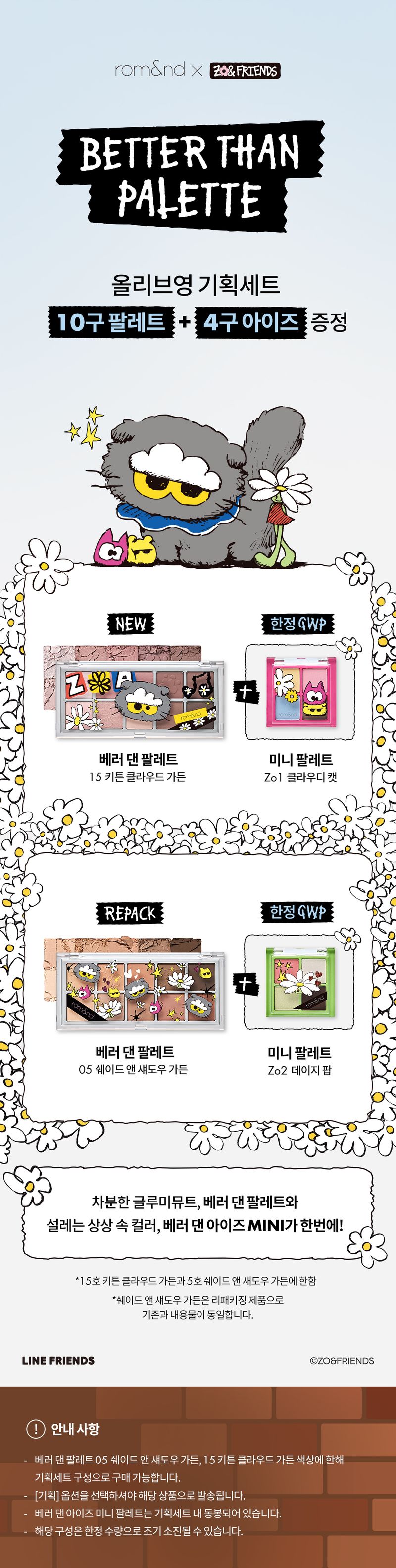 韓國 Olive Young 特別優惠套裝 - Rom&nd X ZO&FRIENDS「十色眼影盤 & 迷你四色眼影盤企劃組」|GD愛貓聯名彩妝