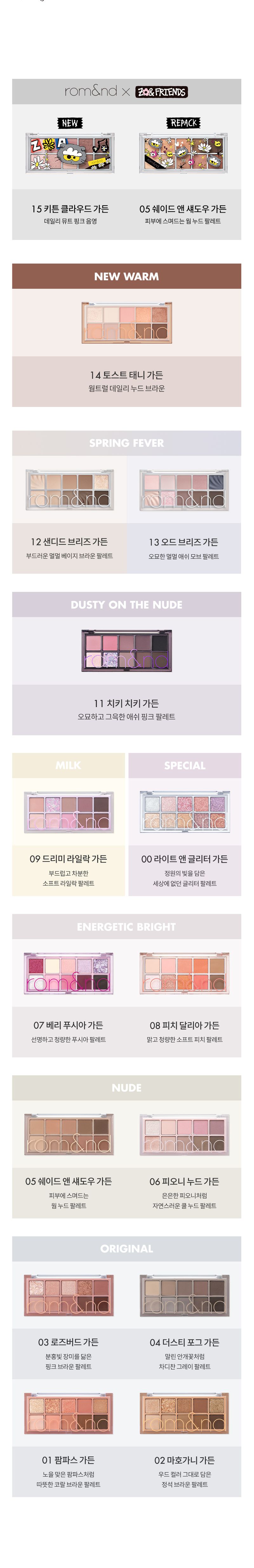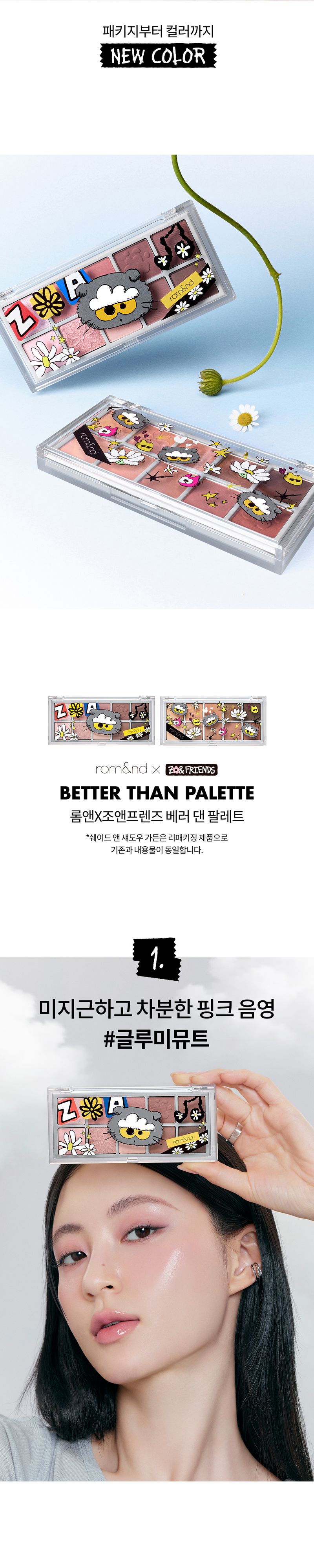 - *十色眼影盤(Better Than Palette)*:Rom&nd 經典熱賣款,包含霧面、珠光、亮片等多種質地,色系實用百搭,適合日常與派對妝容。