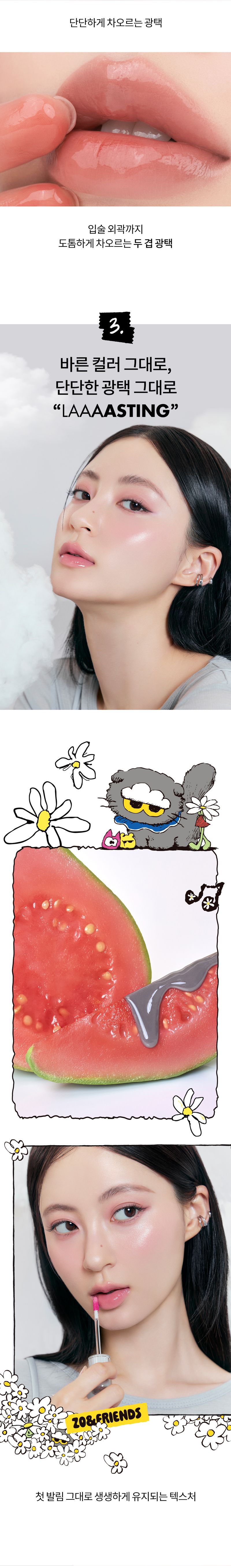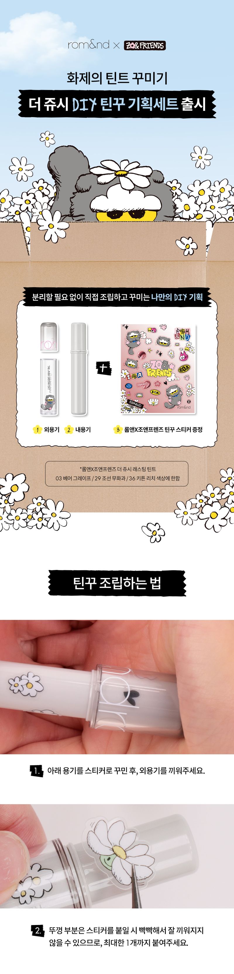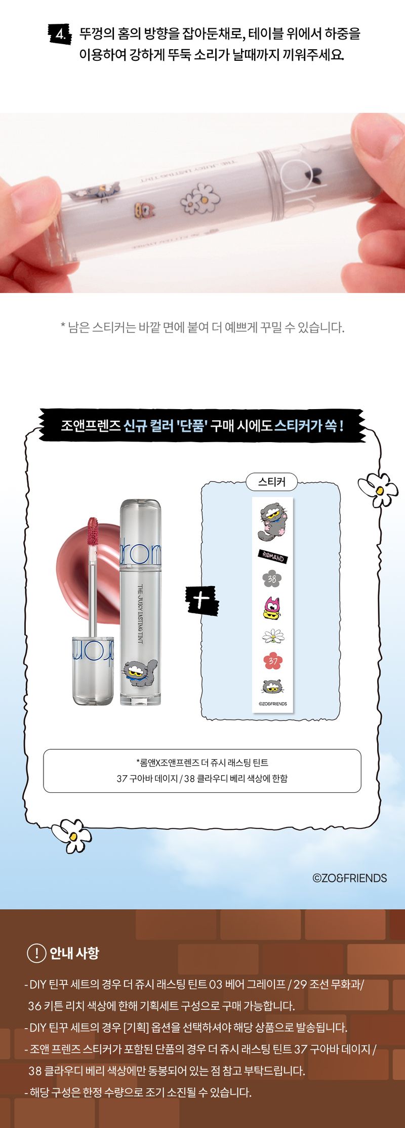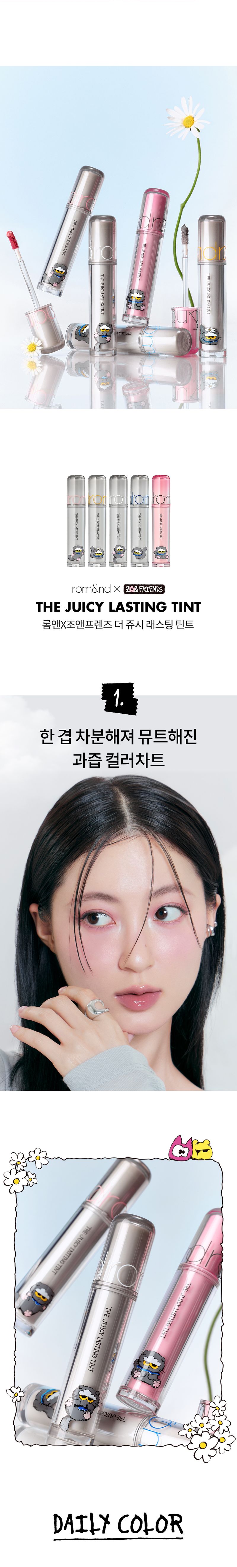 - 結合 Rom&nd 的人氣唇釉「Juicy Lasting Tint」與 ZO&FRIENDS 的可愛角色設計。