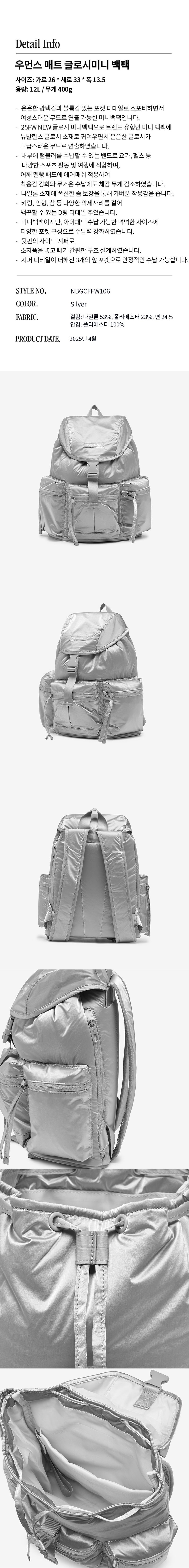 韓國 NEW BALANCE - NBGCFFW106 / Women's Matte Glossy Mini Backpack (SILVER)
