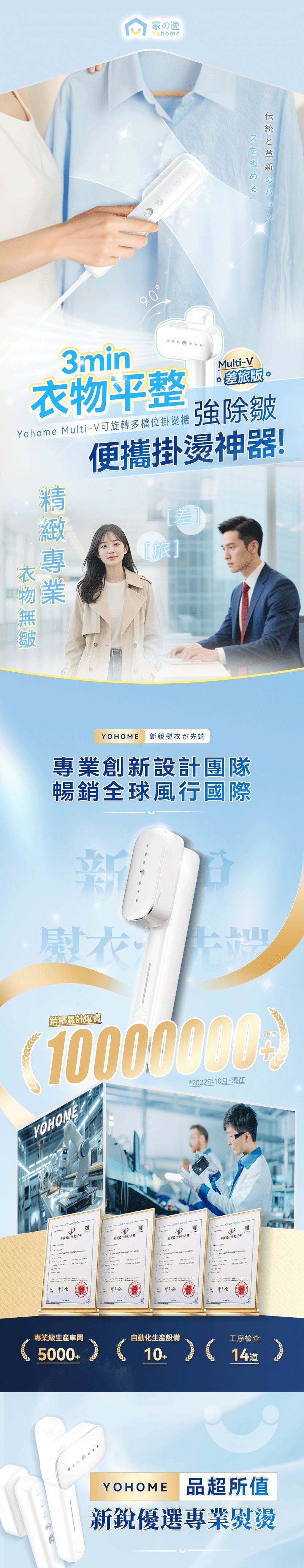 日本Yohome Multi-V輕感旋轉多衣適溫即熱大面積除皺蟎菌雙淨掛燙機