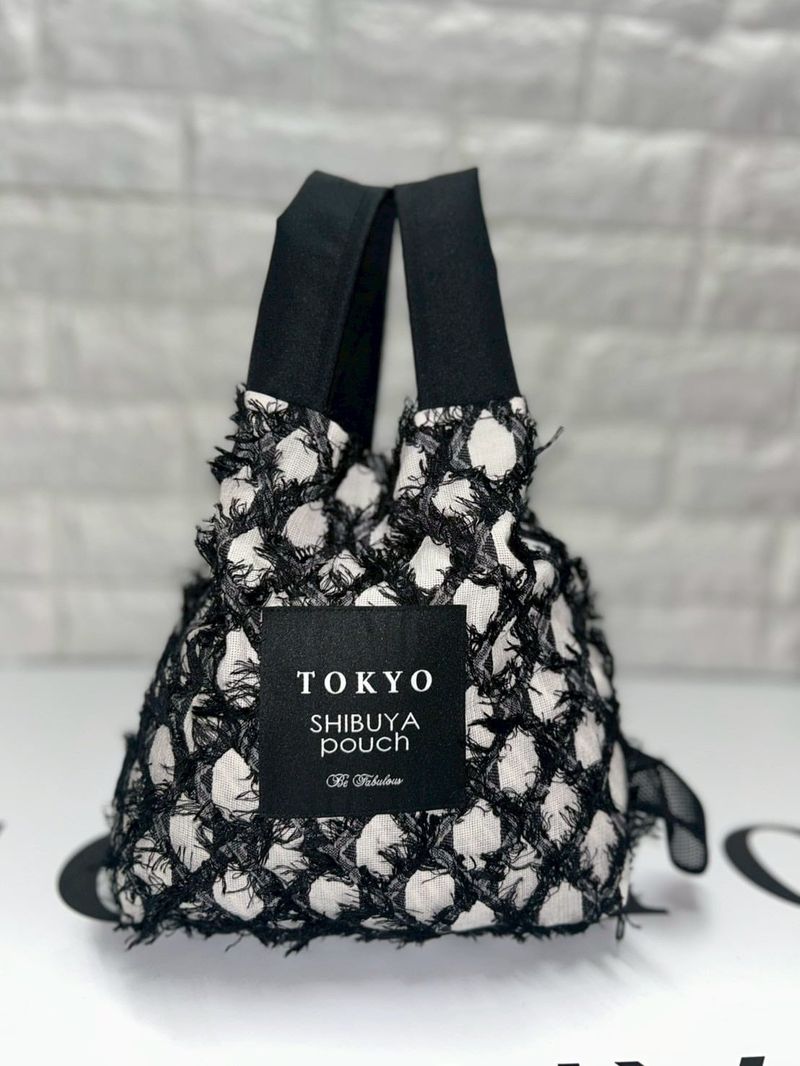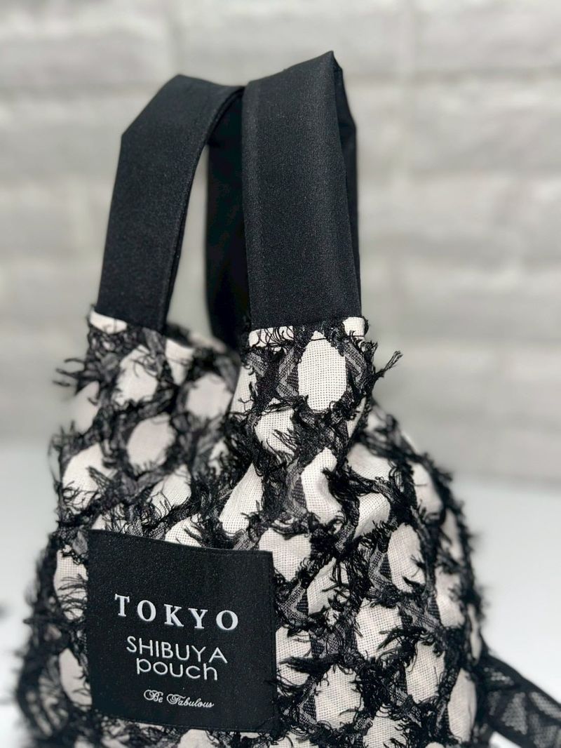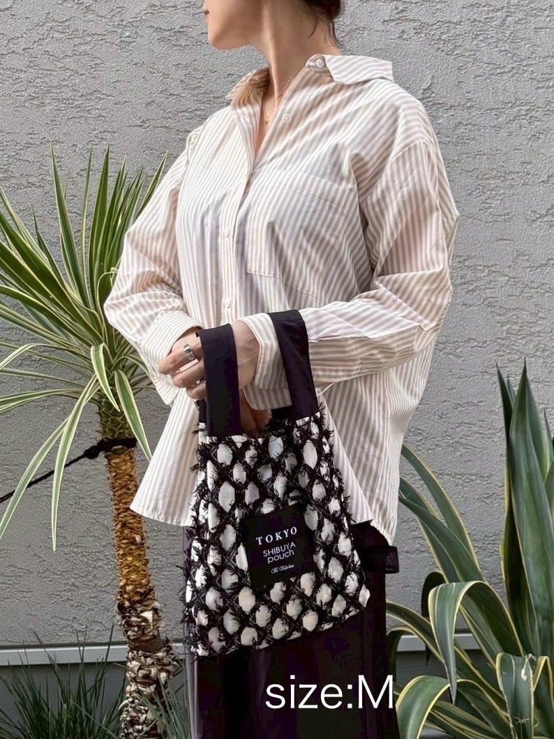 【日本直送】 TOKYO SHIBUYA pouch - Fringe Check JQ 流蘇格紋【M SIZE】(Ivory / 象牙色)