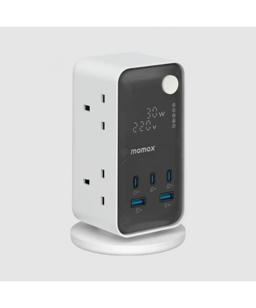 Momax - 1-Charge Work-Flow 6 插座數位顯示電源盒 (附 USB)