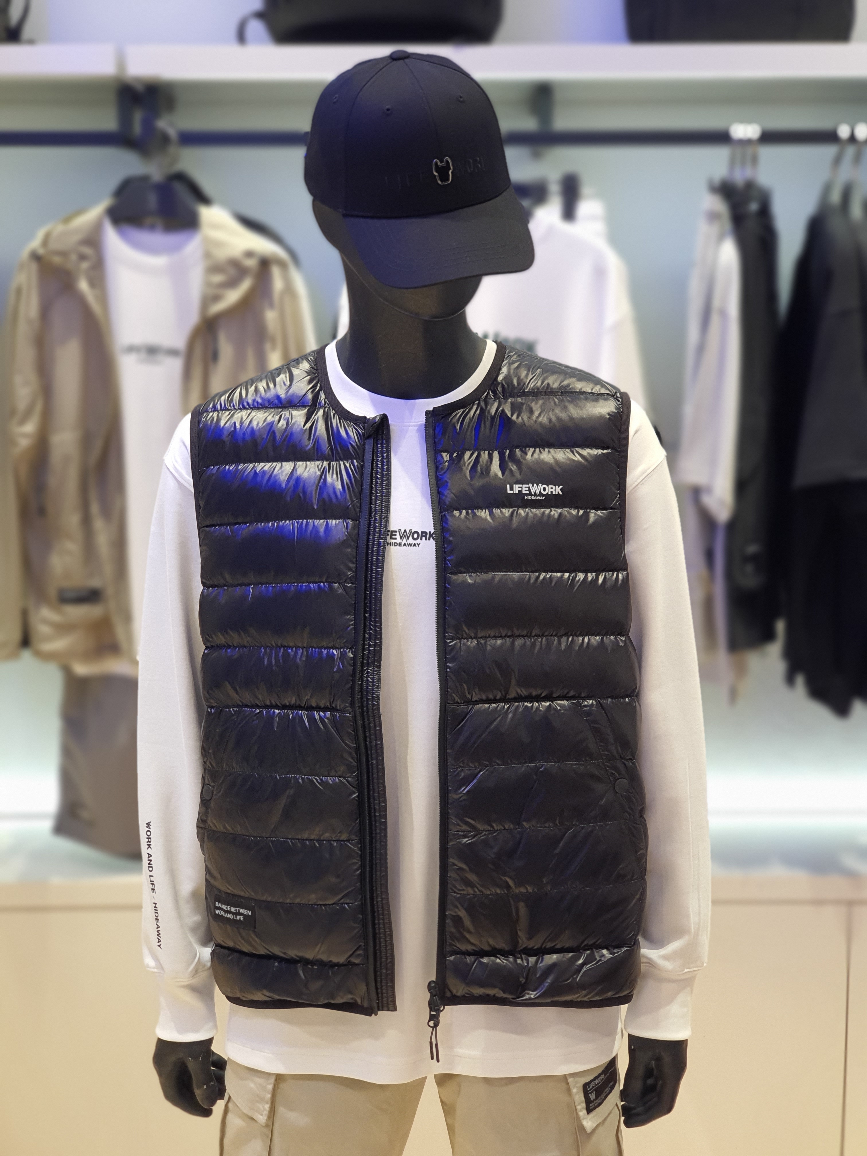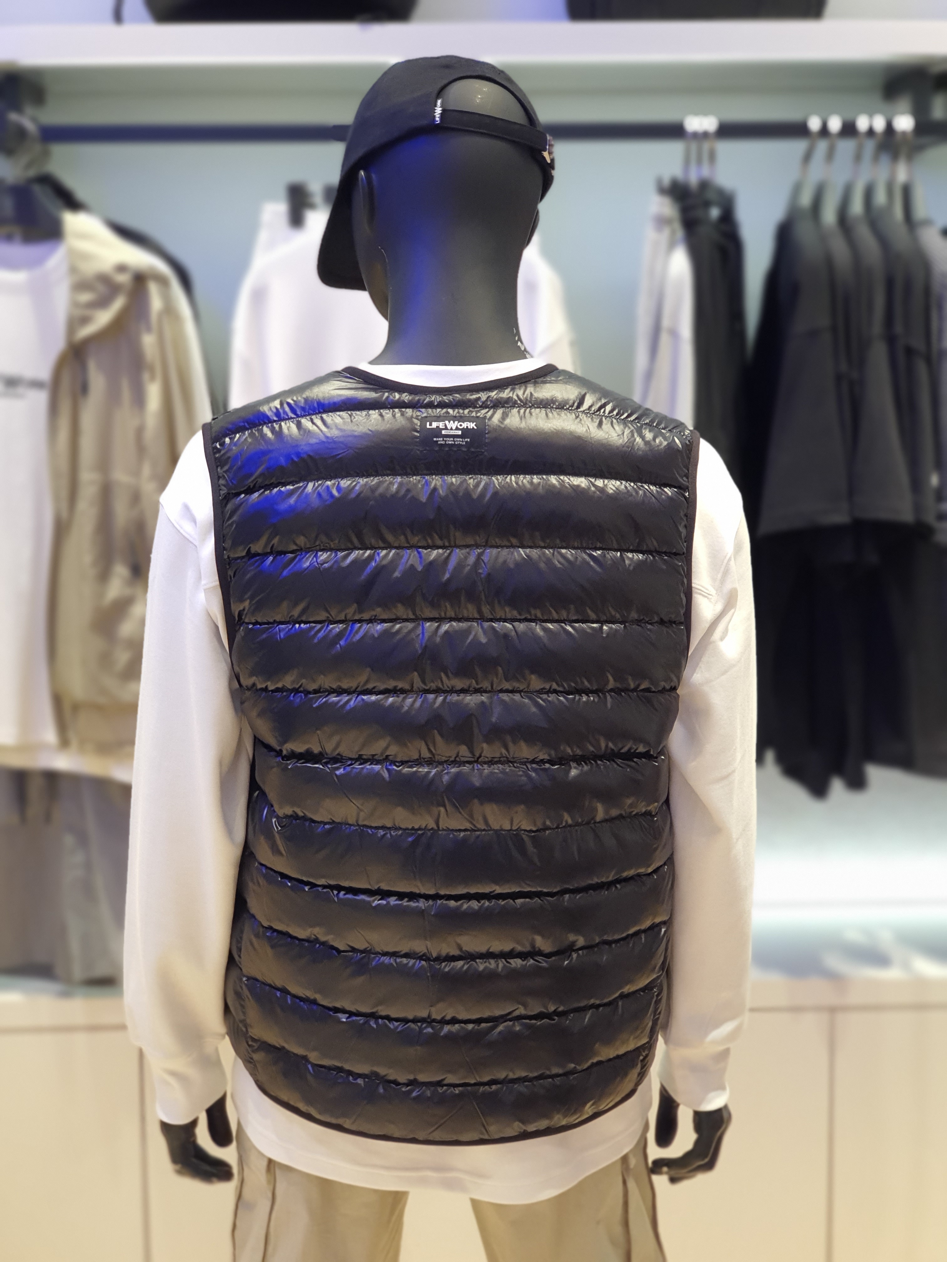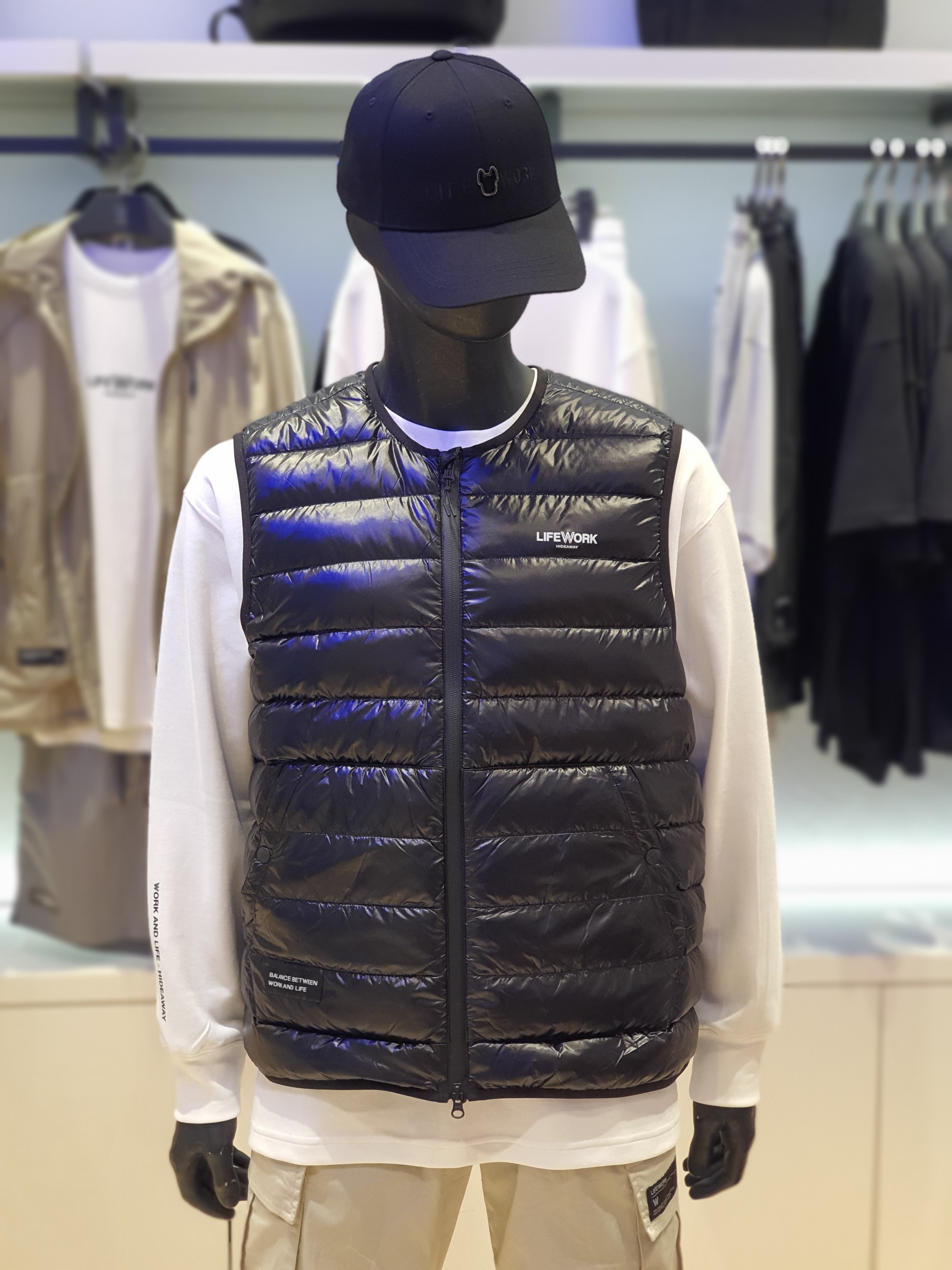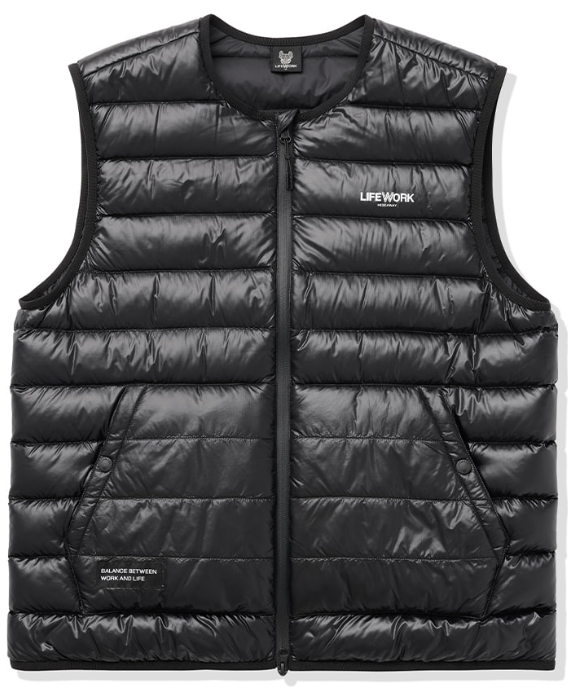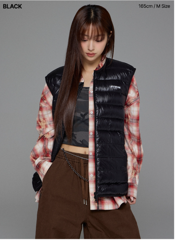 韓國直送 Life Work - 絎縫十字條紋輕便羽絨背心(通用)(BLACK)
