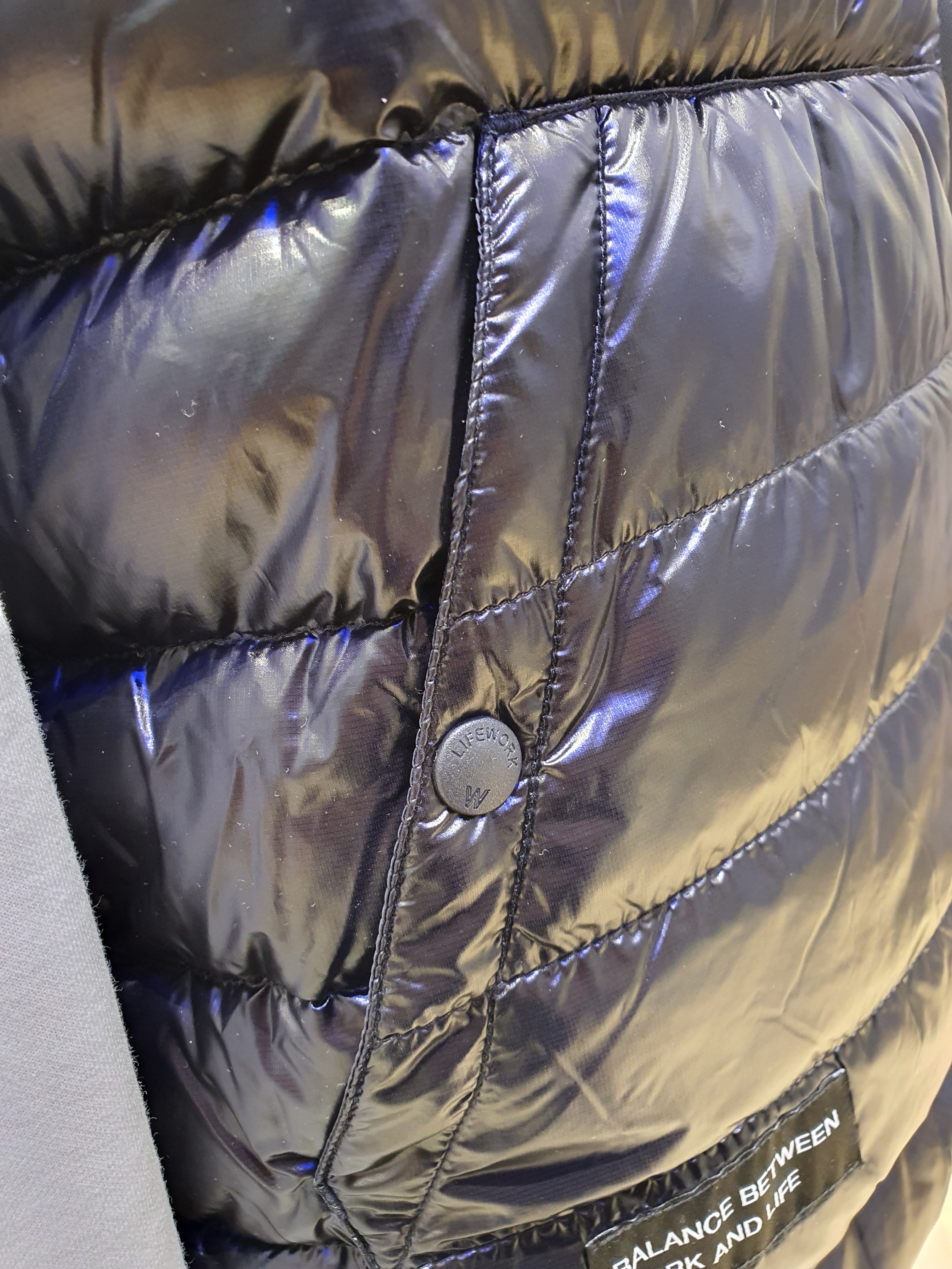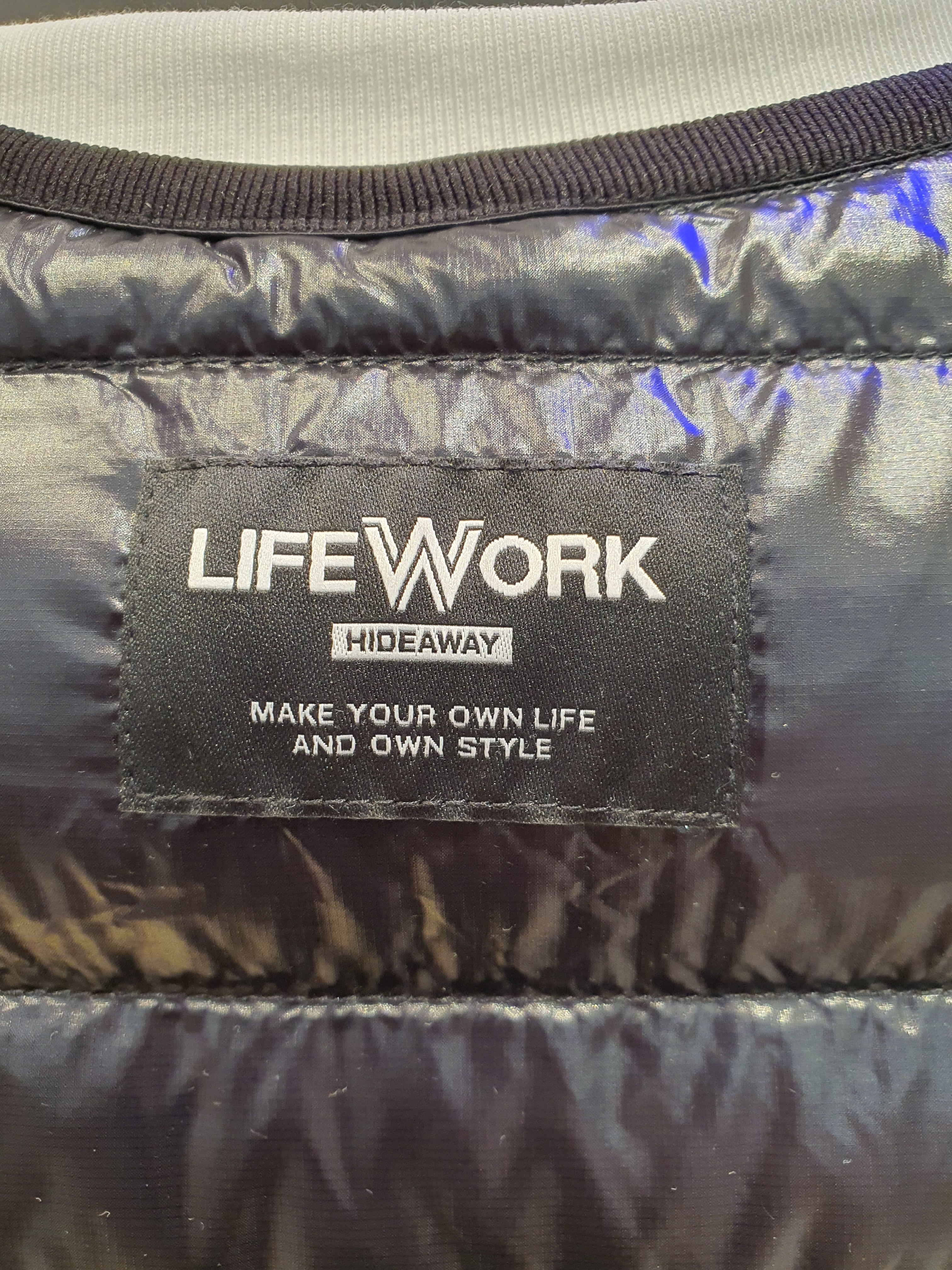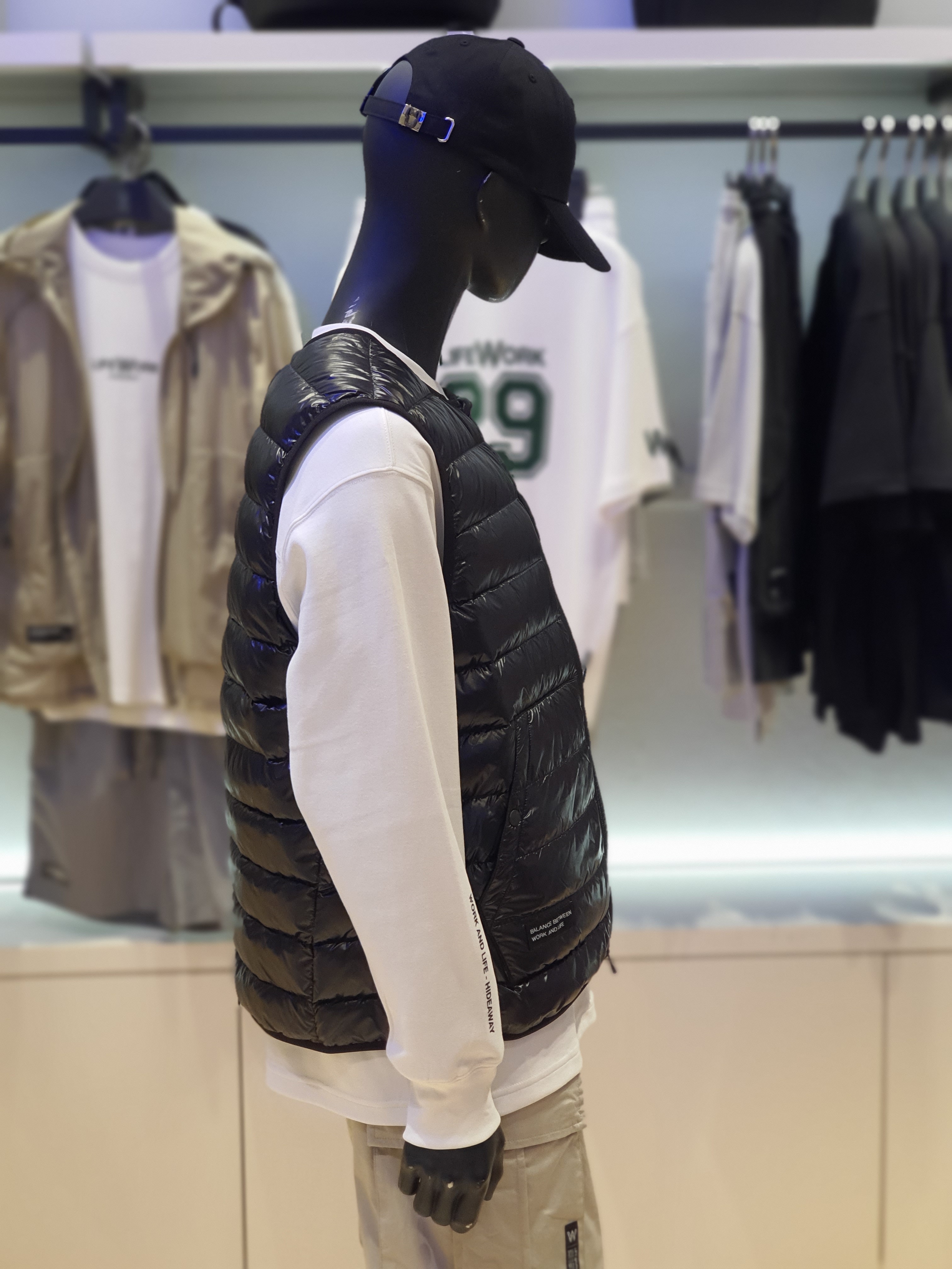 韓國直送 Life Work - 絎縫十字條紋輕便羽絨背心(通用)(BLACK)