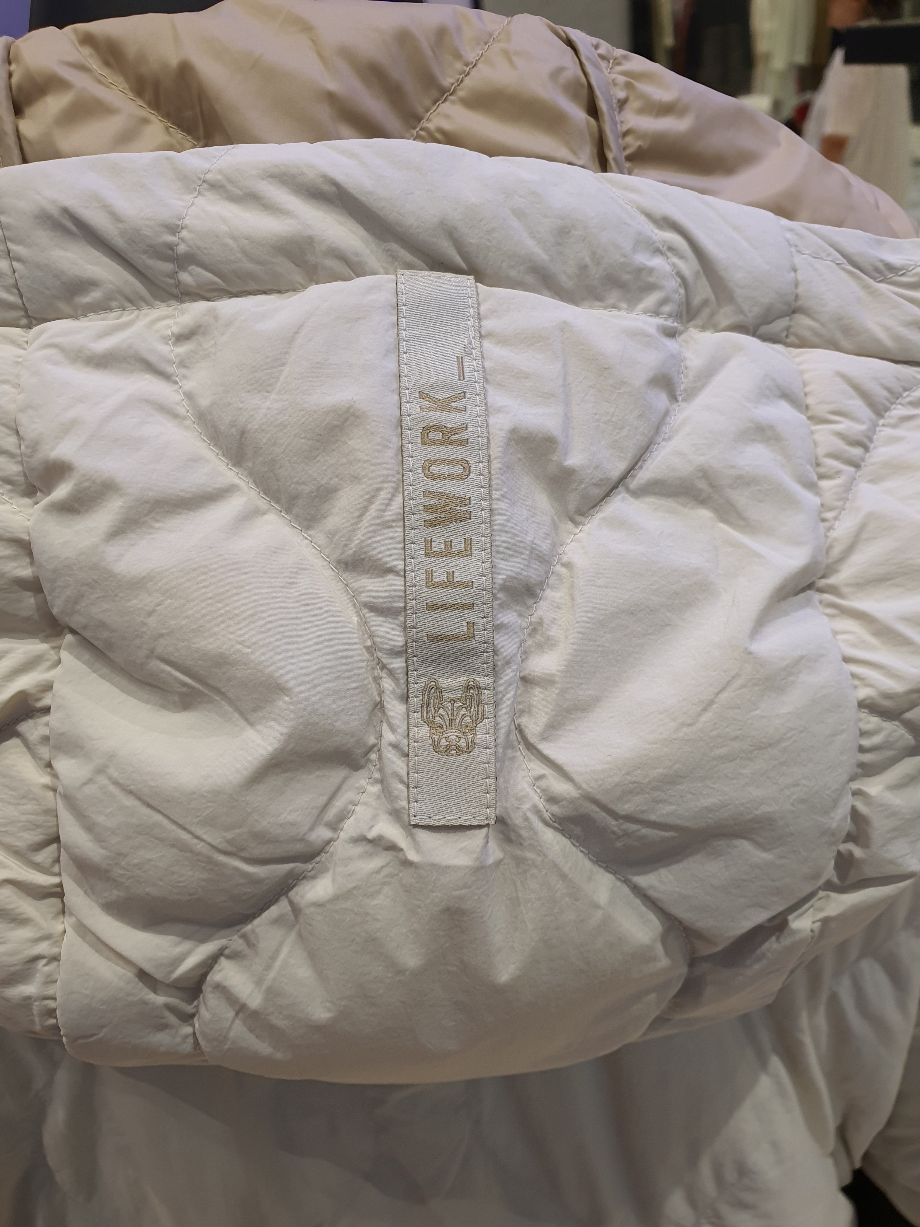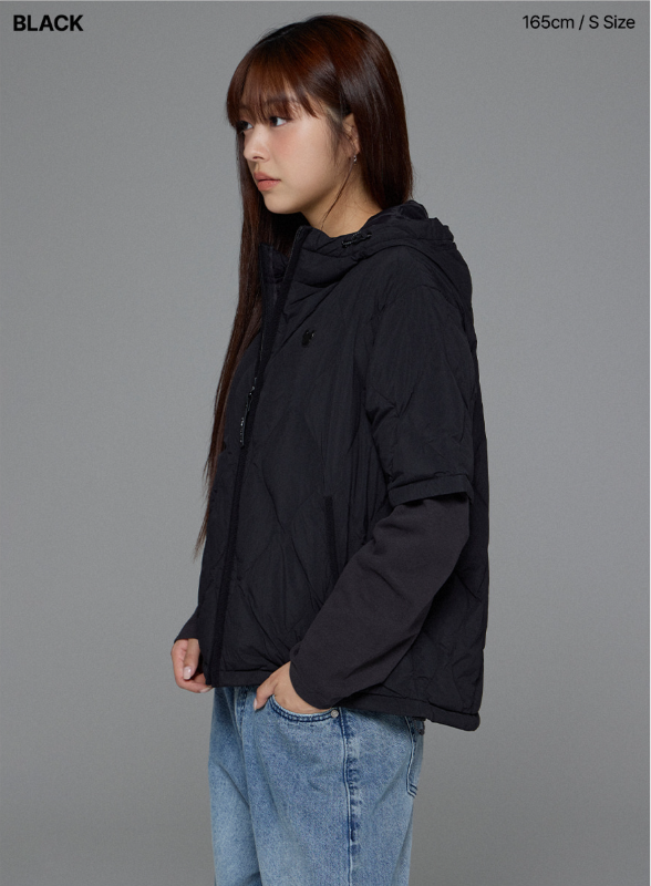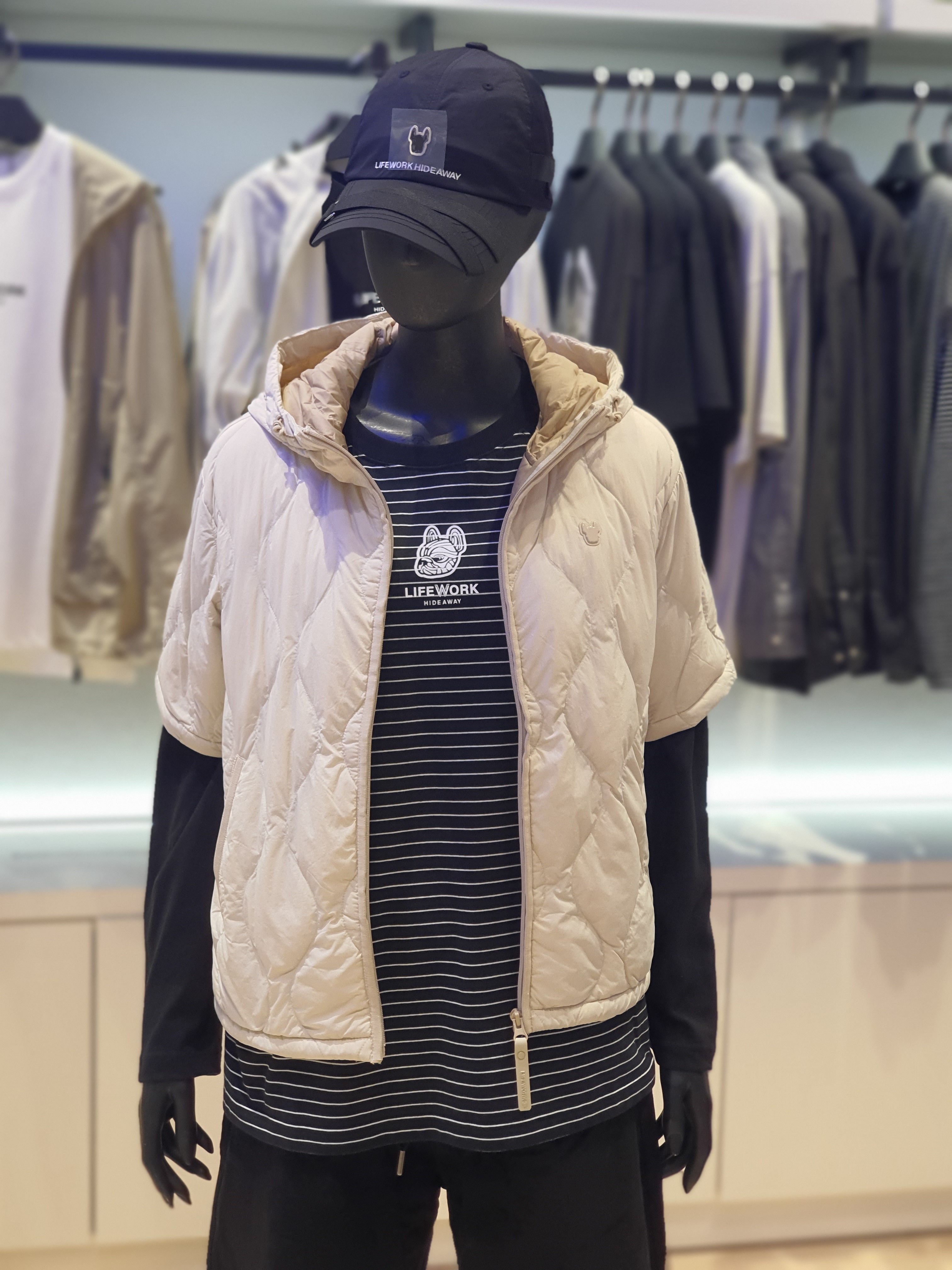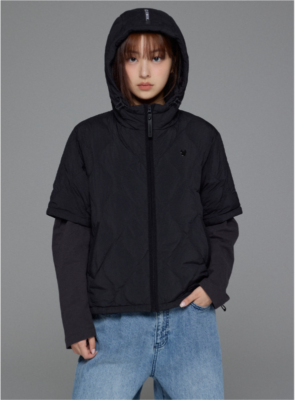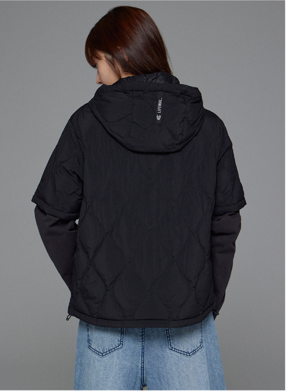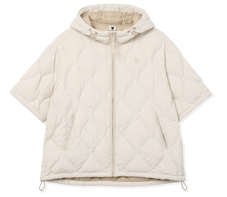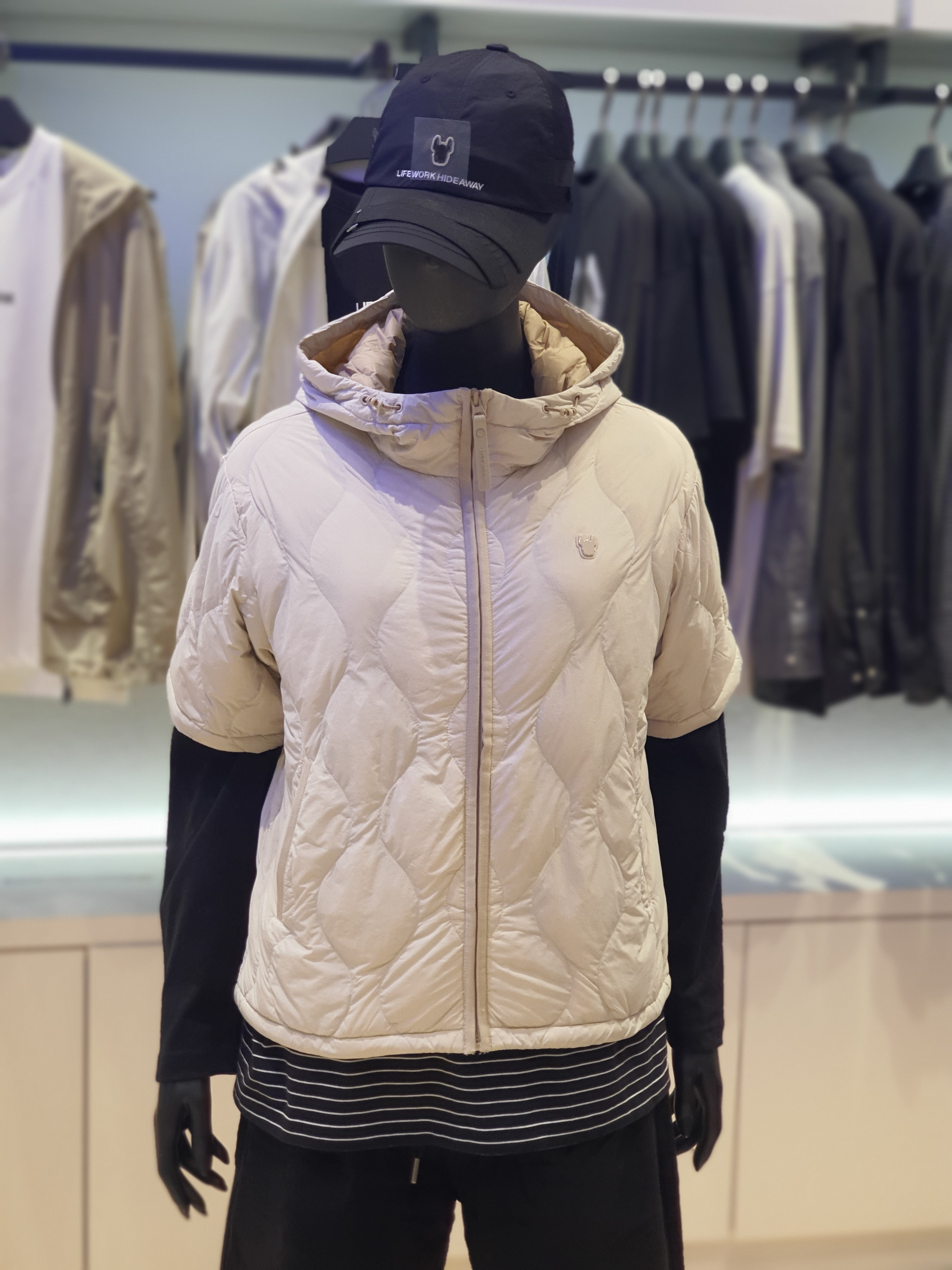 韓國直送 Life Work - 女士弧形隧道式絎縫輕便短袖連帽羽絨外套 (STONE)