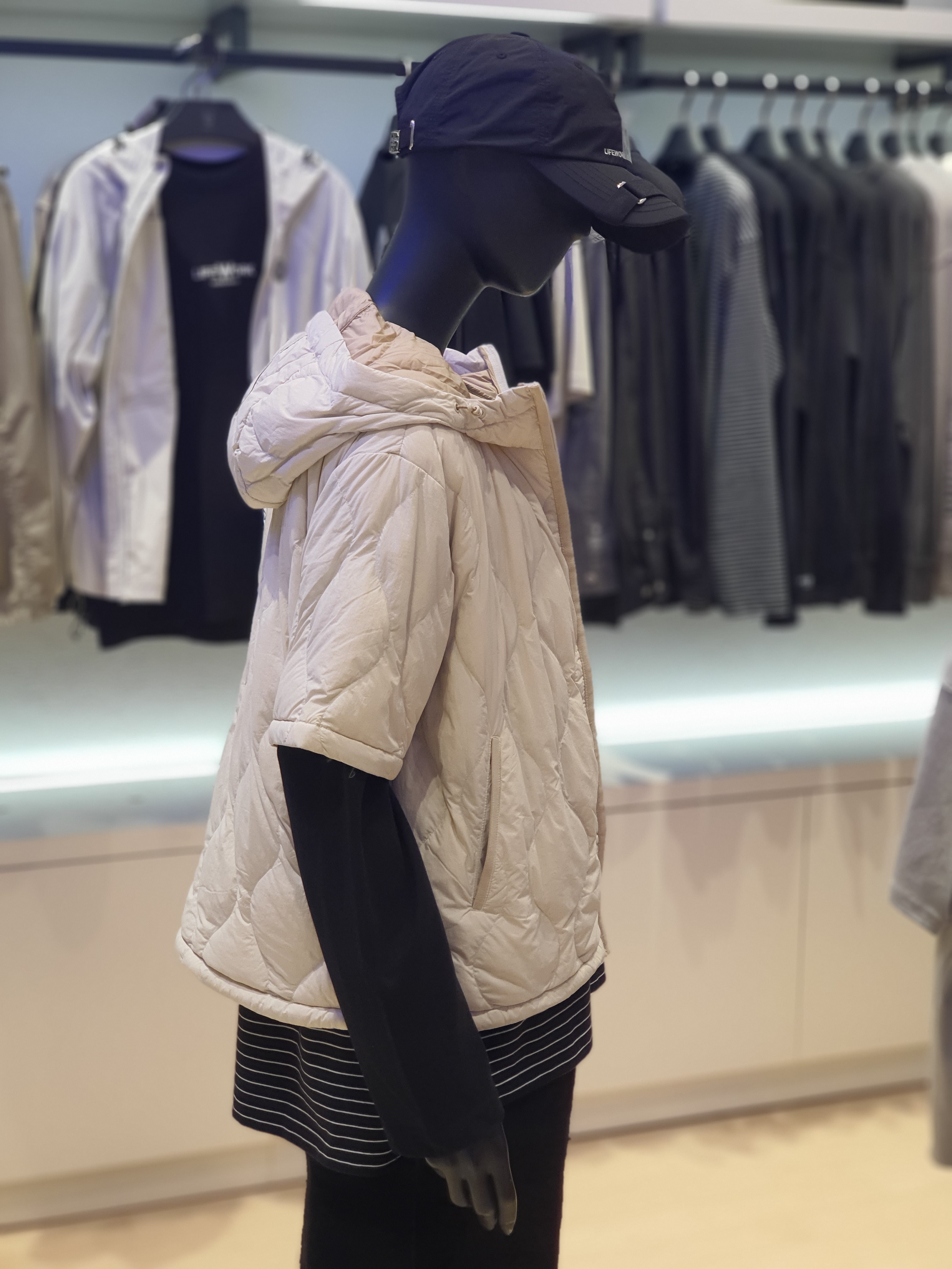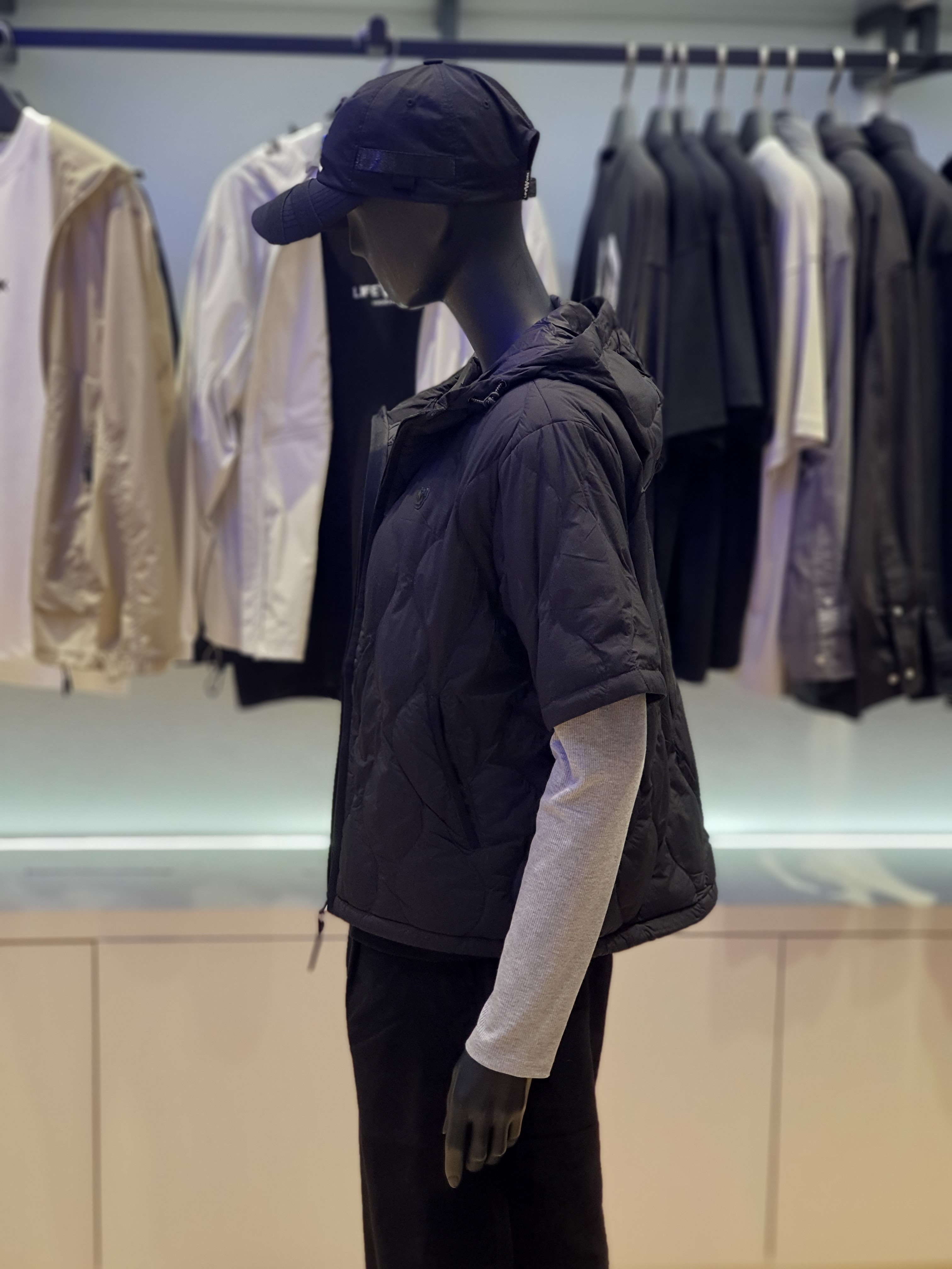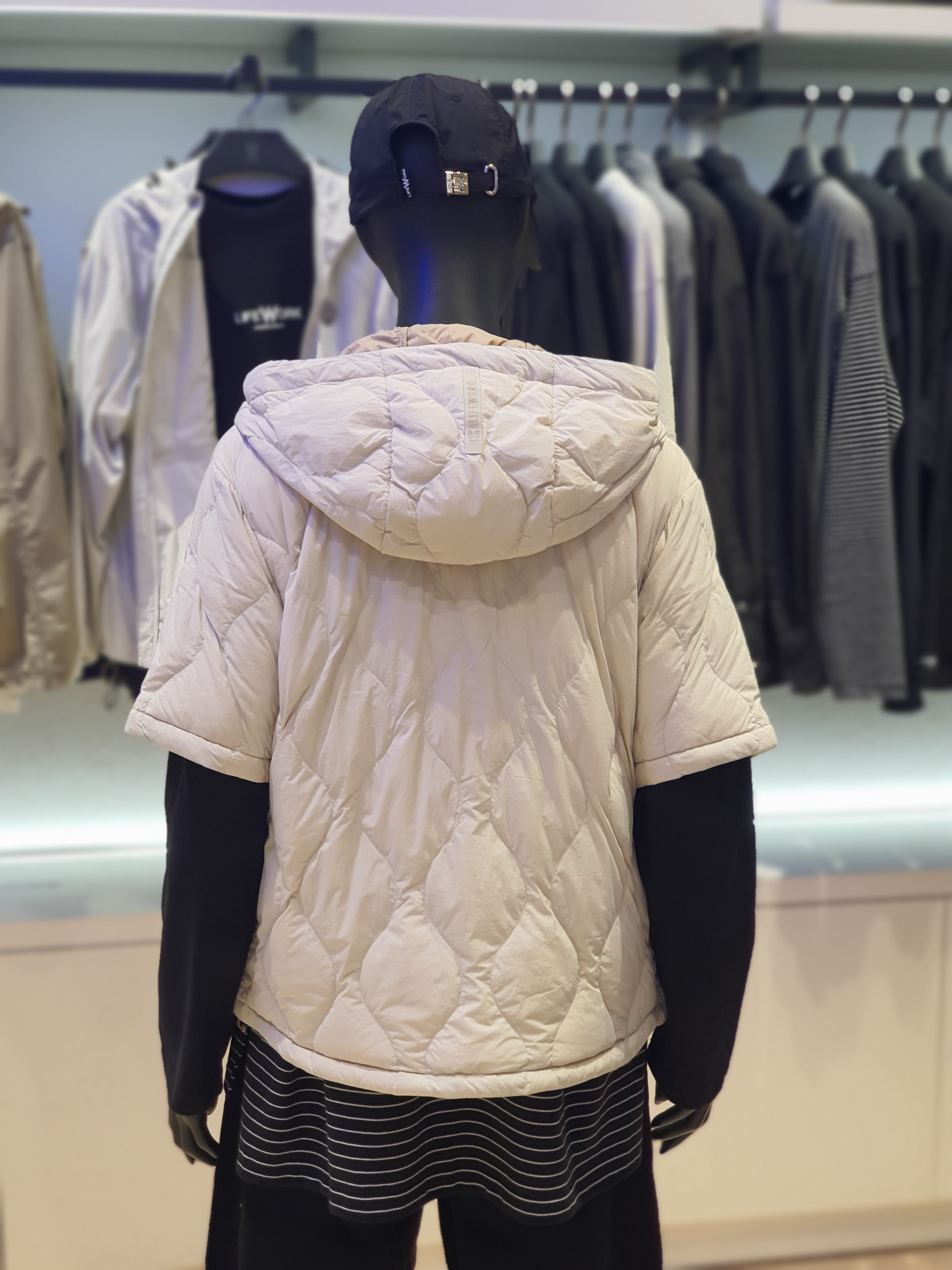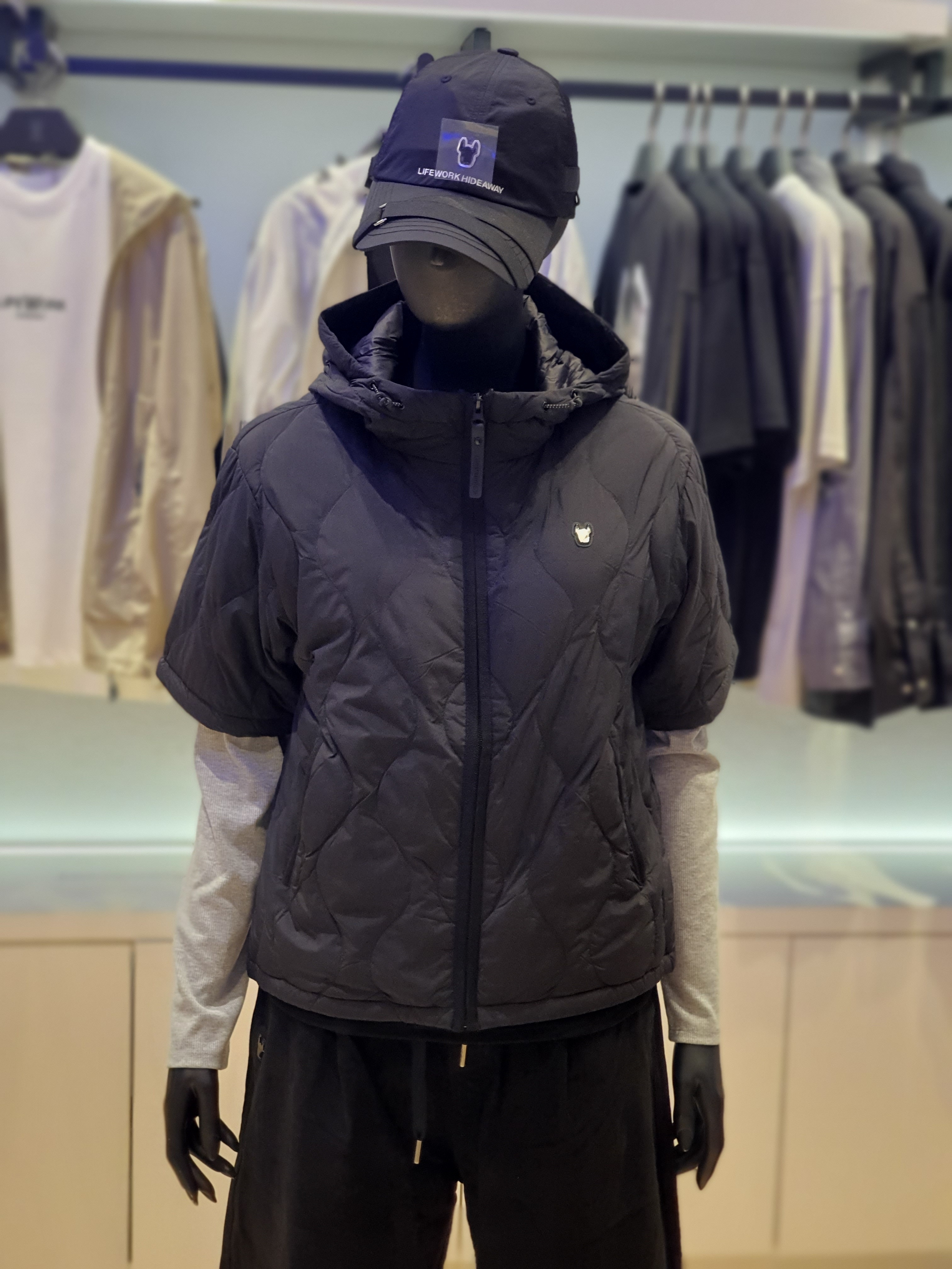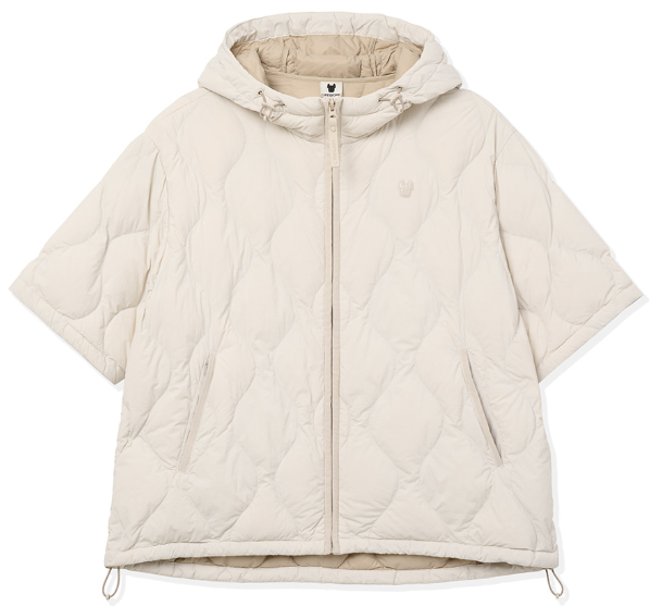 韓國直送 Life Work - 女士弧形隧道式絎縫輕便短袖連帽羽絨外套 (BLACK)