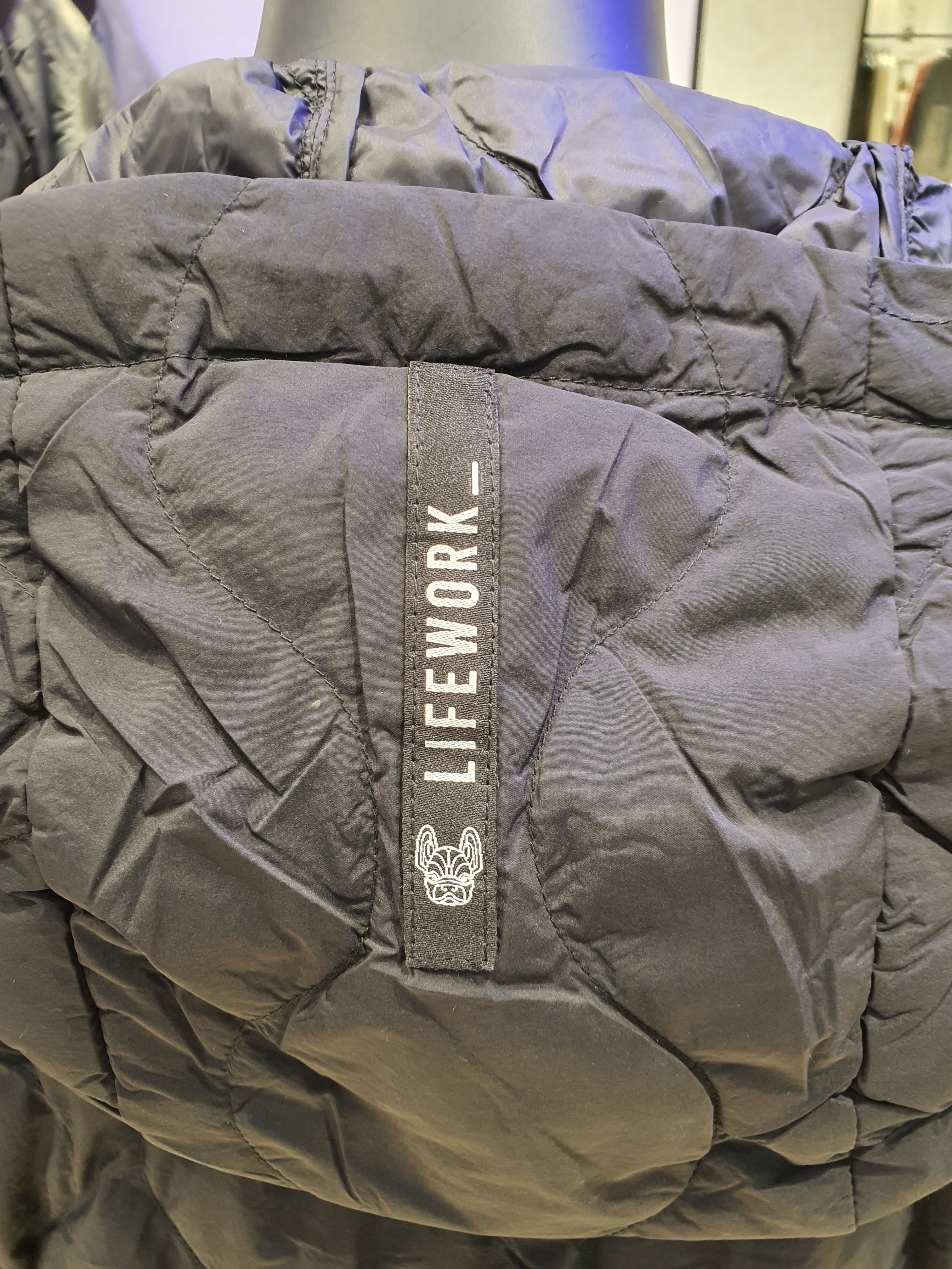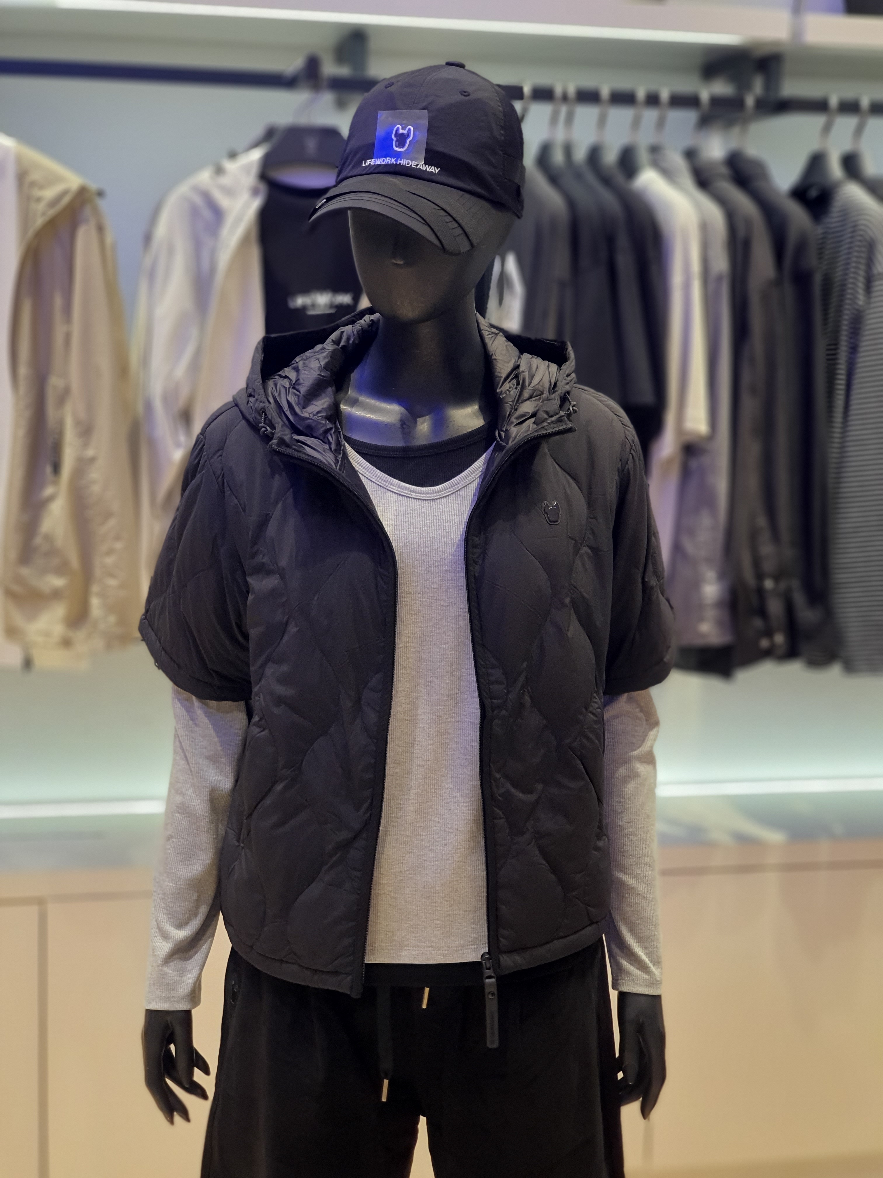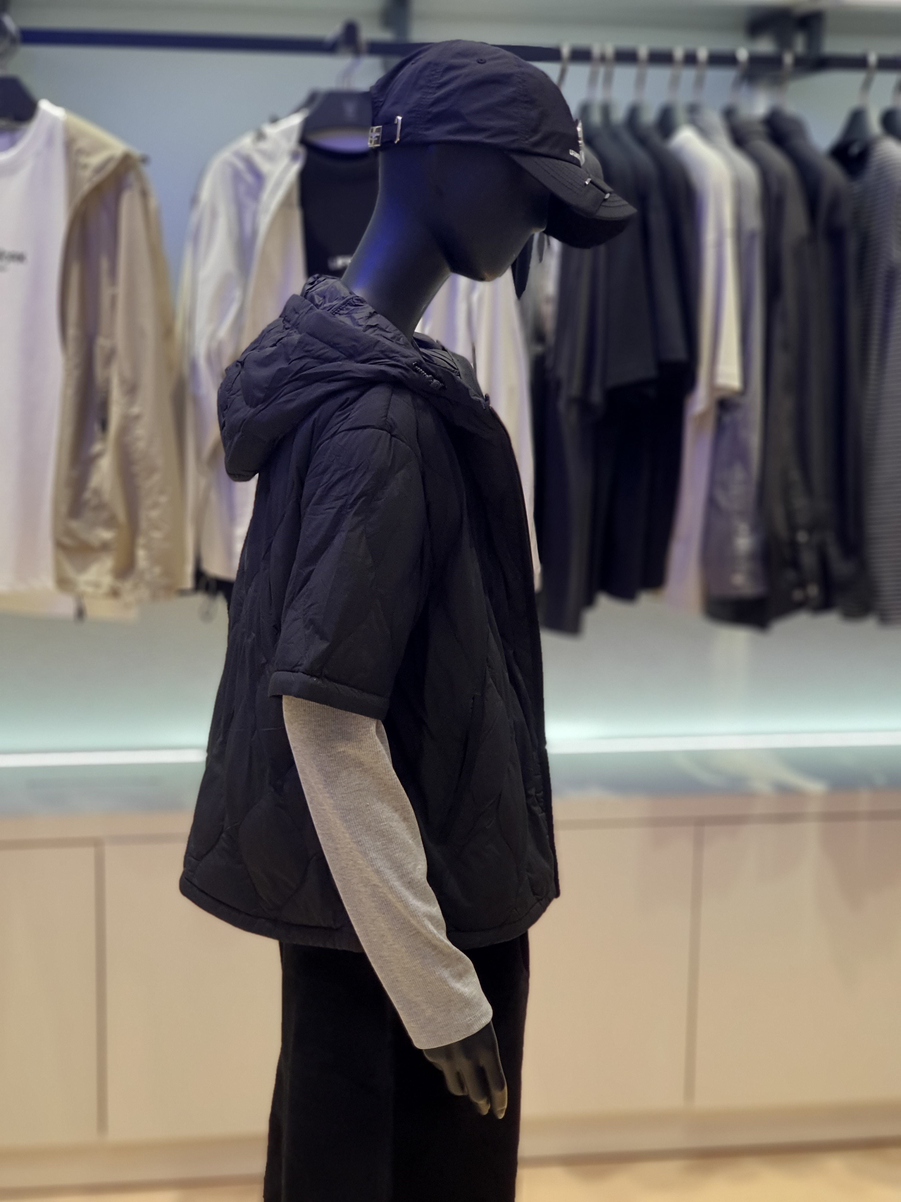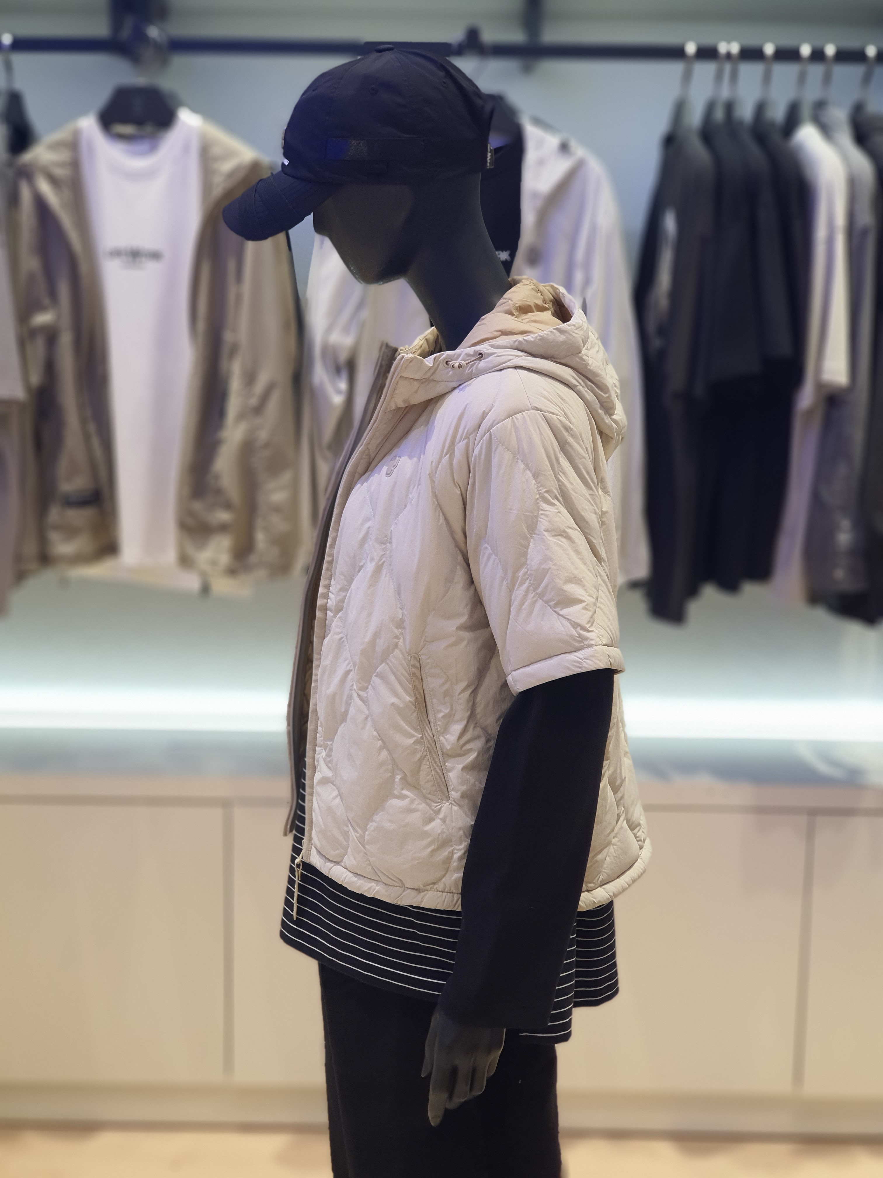 韓國直送 Life Work - 女士弧形隧道式絎縫輕便短袖連帽羽絨外套 (BLACK)